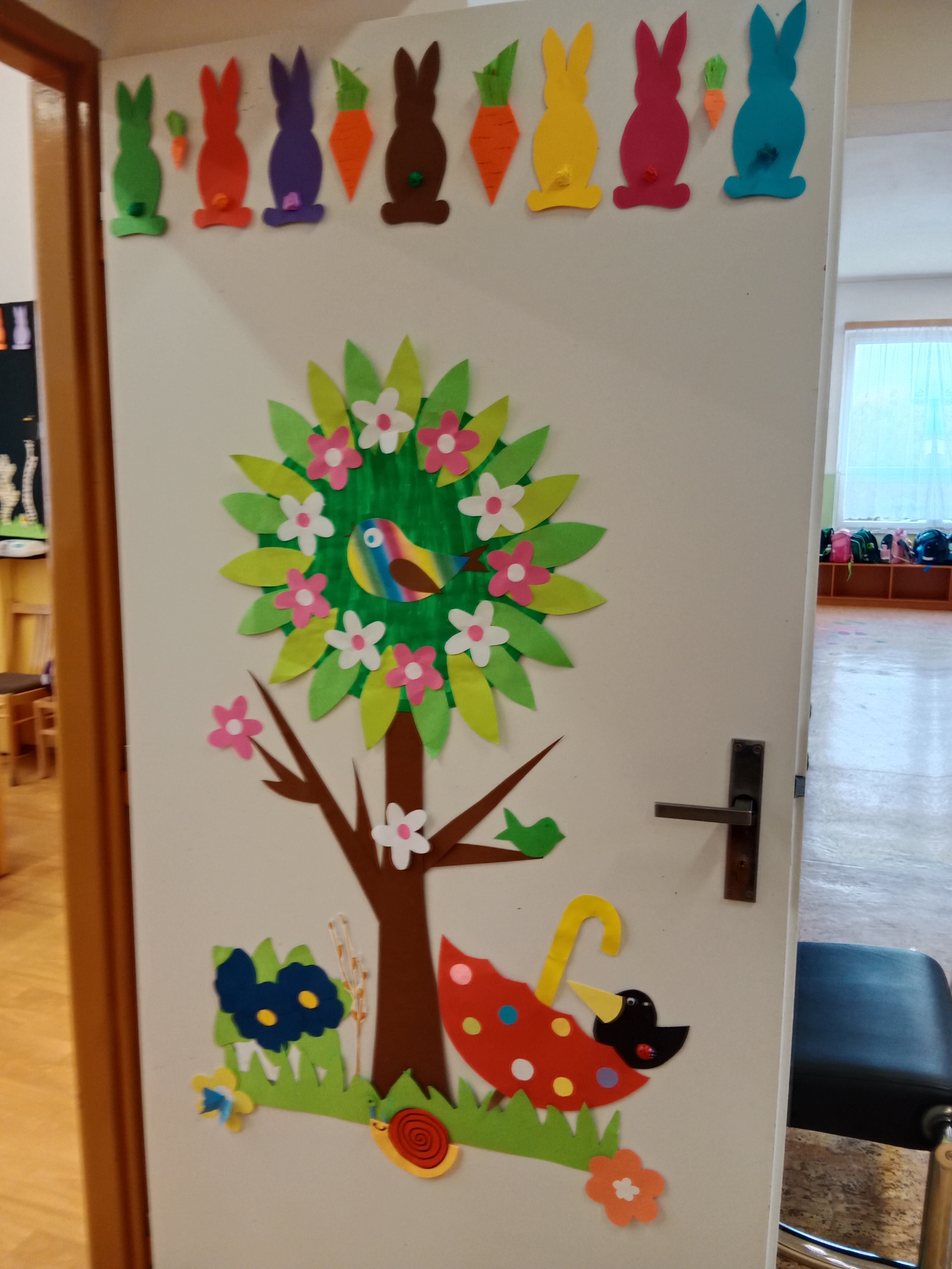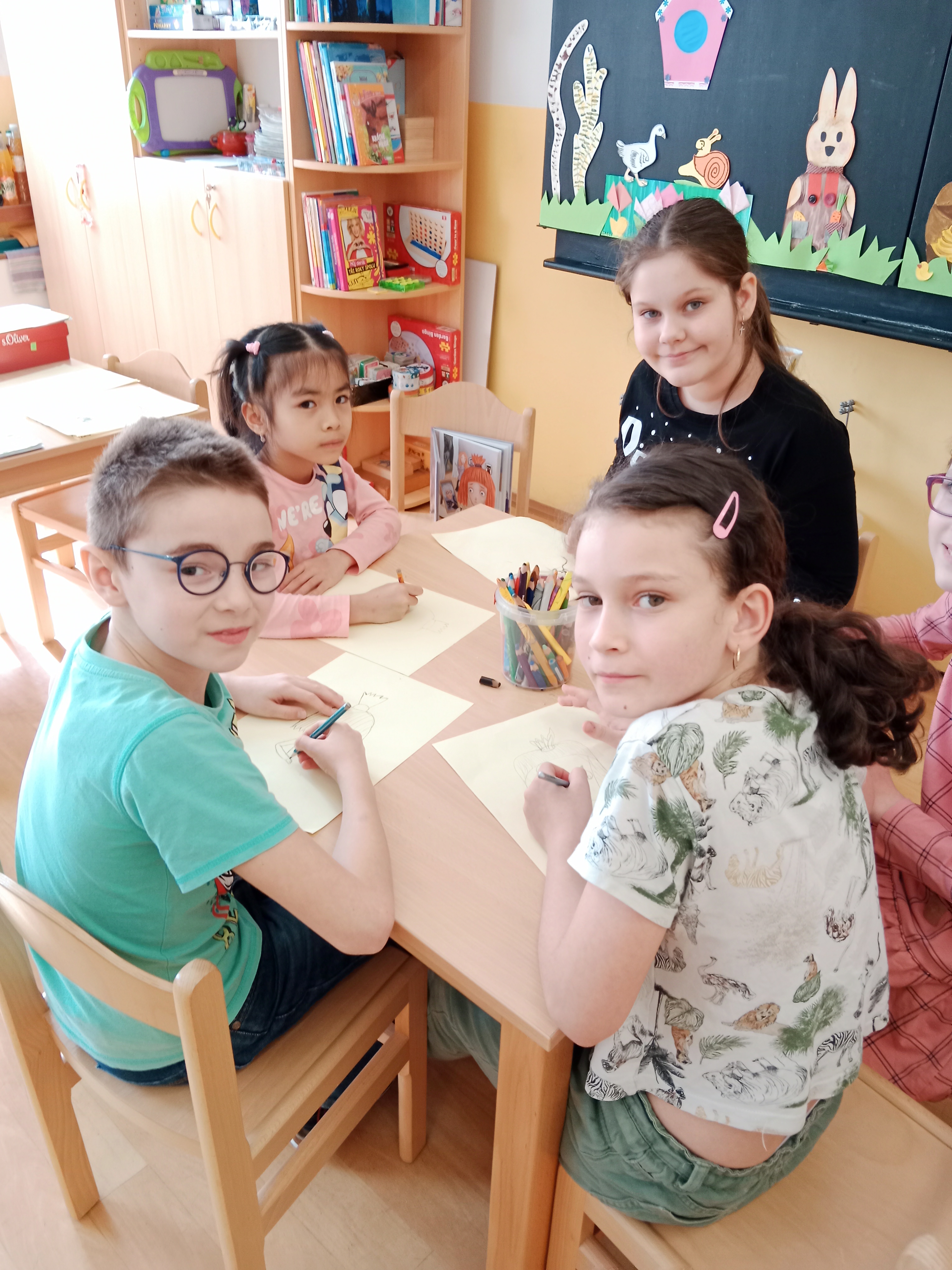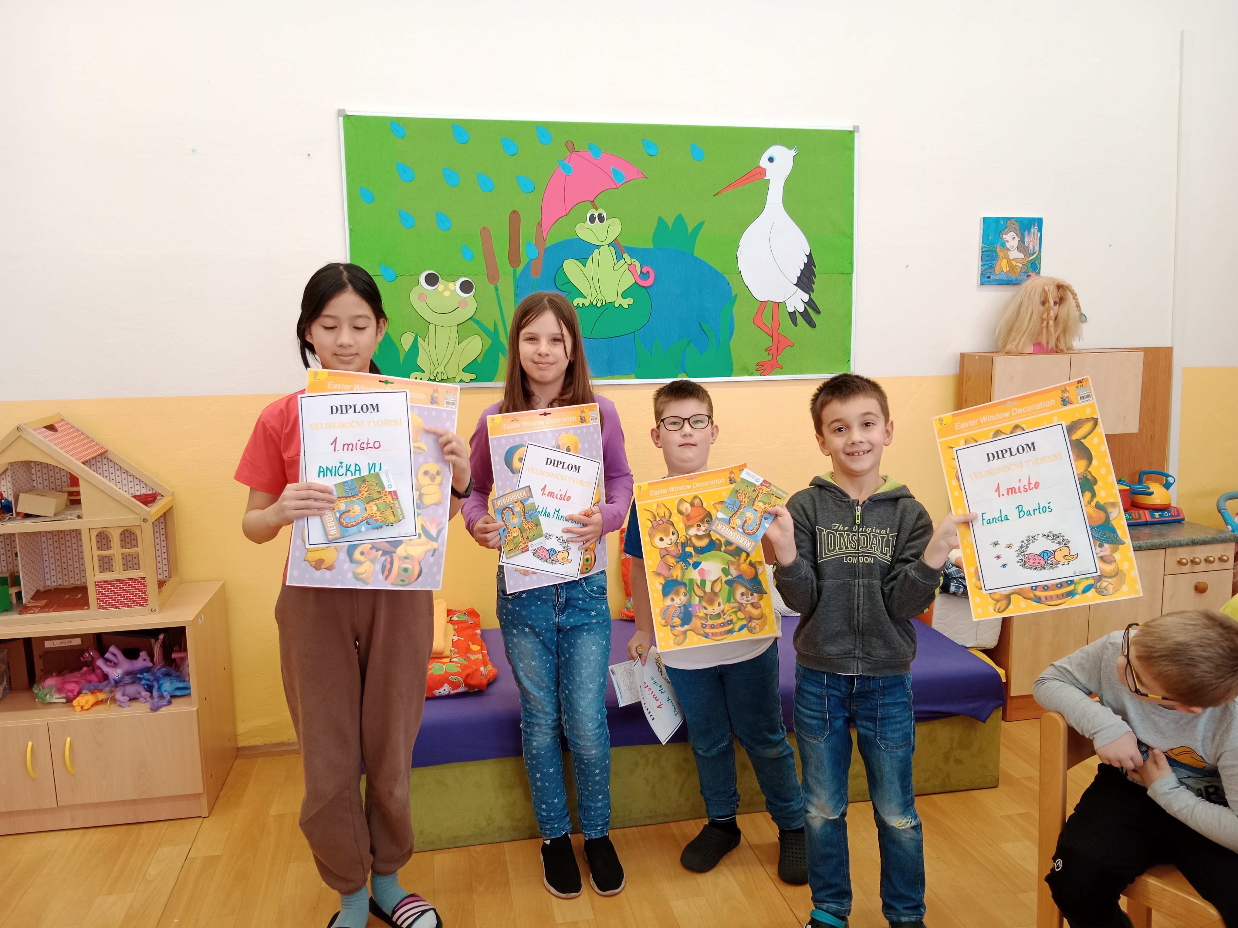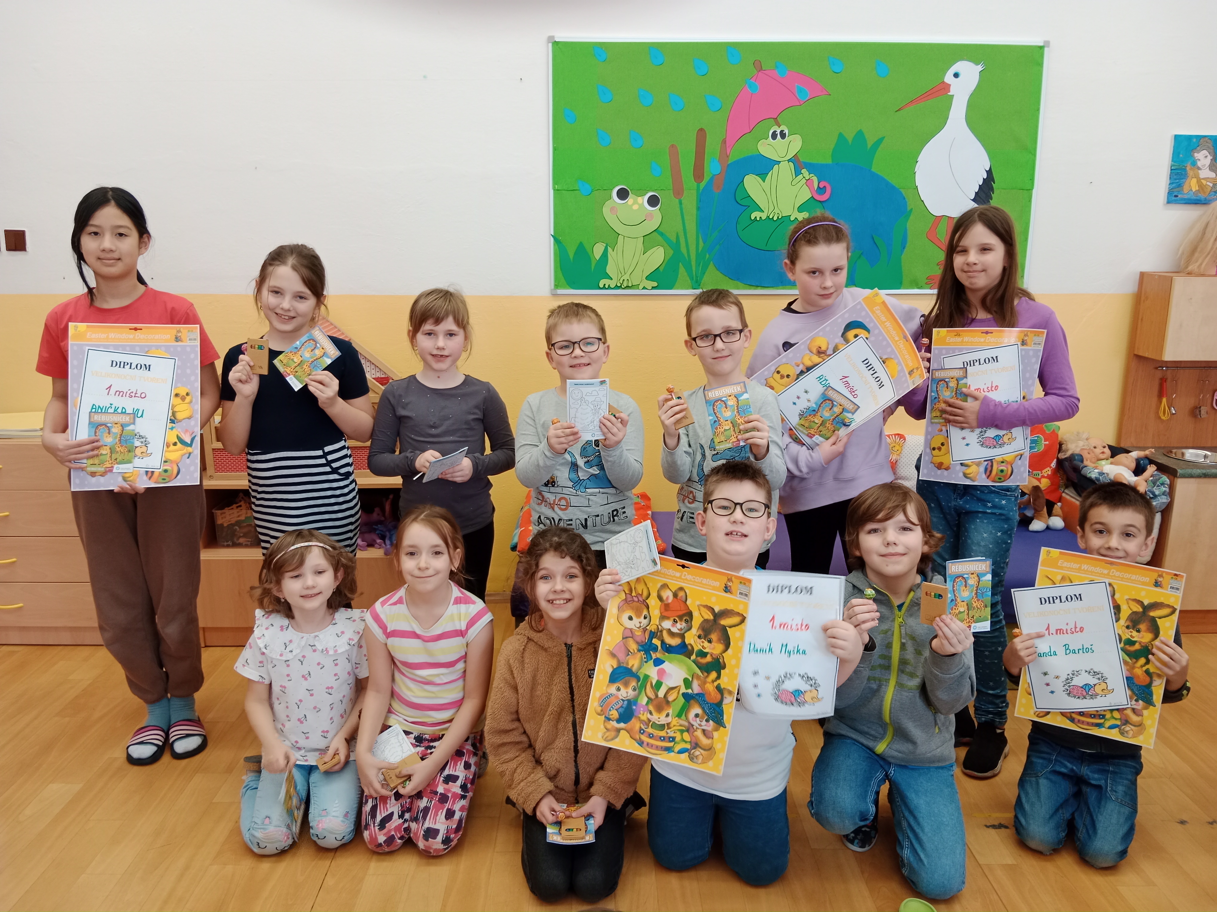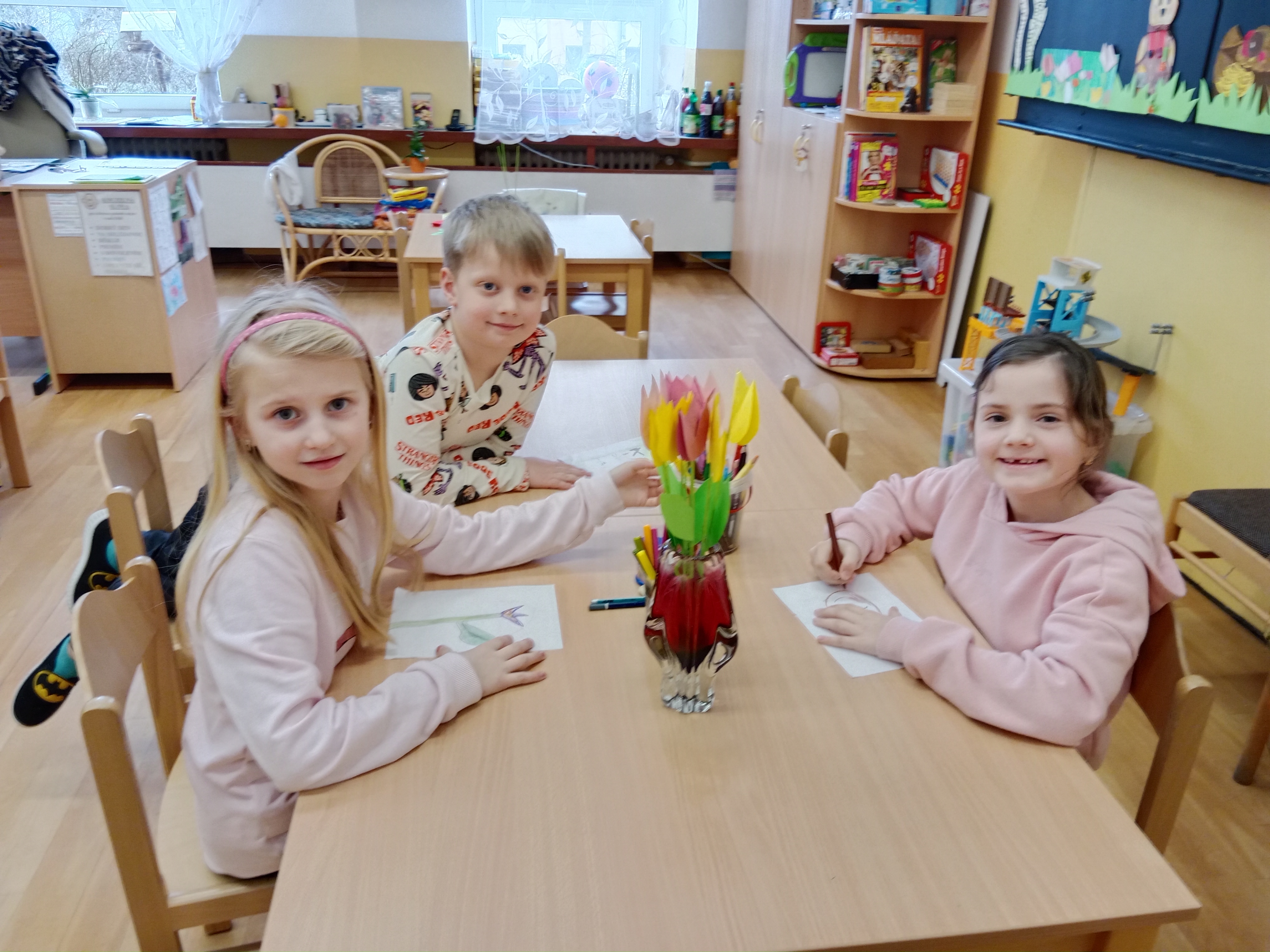 Předjaří a jaro jsme vítali spoustou aktivit v odděleních i venku.- opět při tvoření, řešení rébusů, při společných hrách například Živé pexeso, malovaná tichá pošta, Zrcadlo, Kimovka nebo Jméno, město,....a jiné.