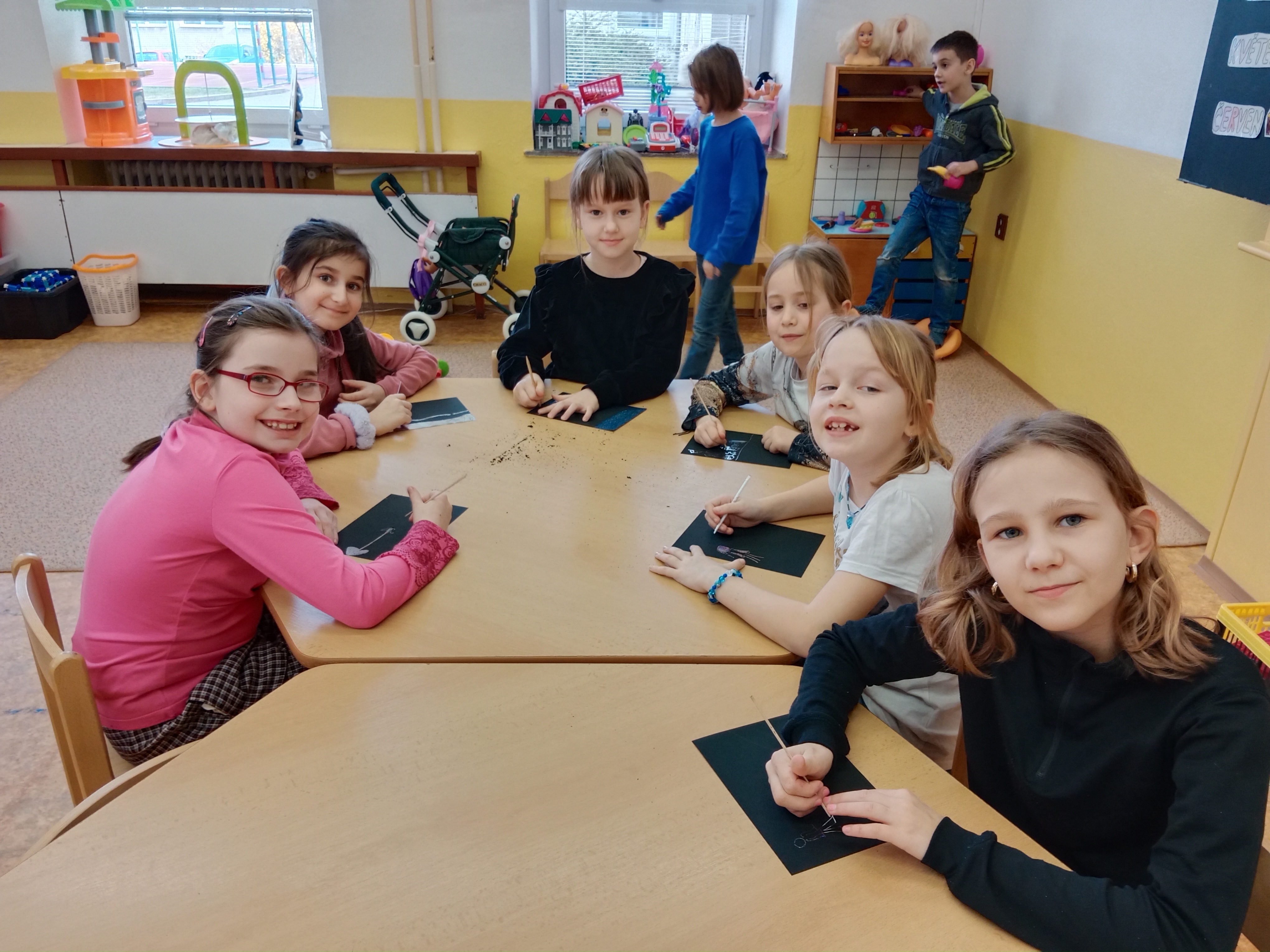 Volný výběr her a hraček u stolků i na kobercích si děti užívaly i tento měsíc.