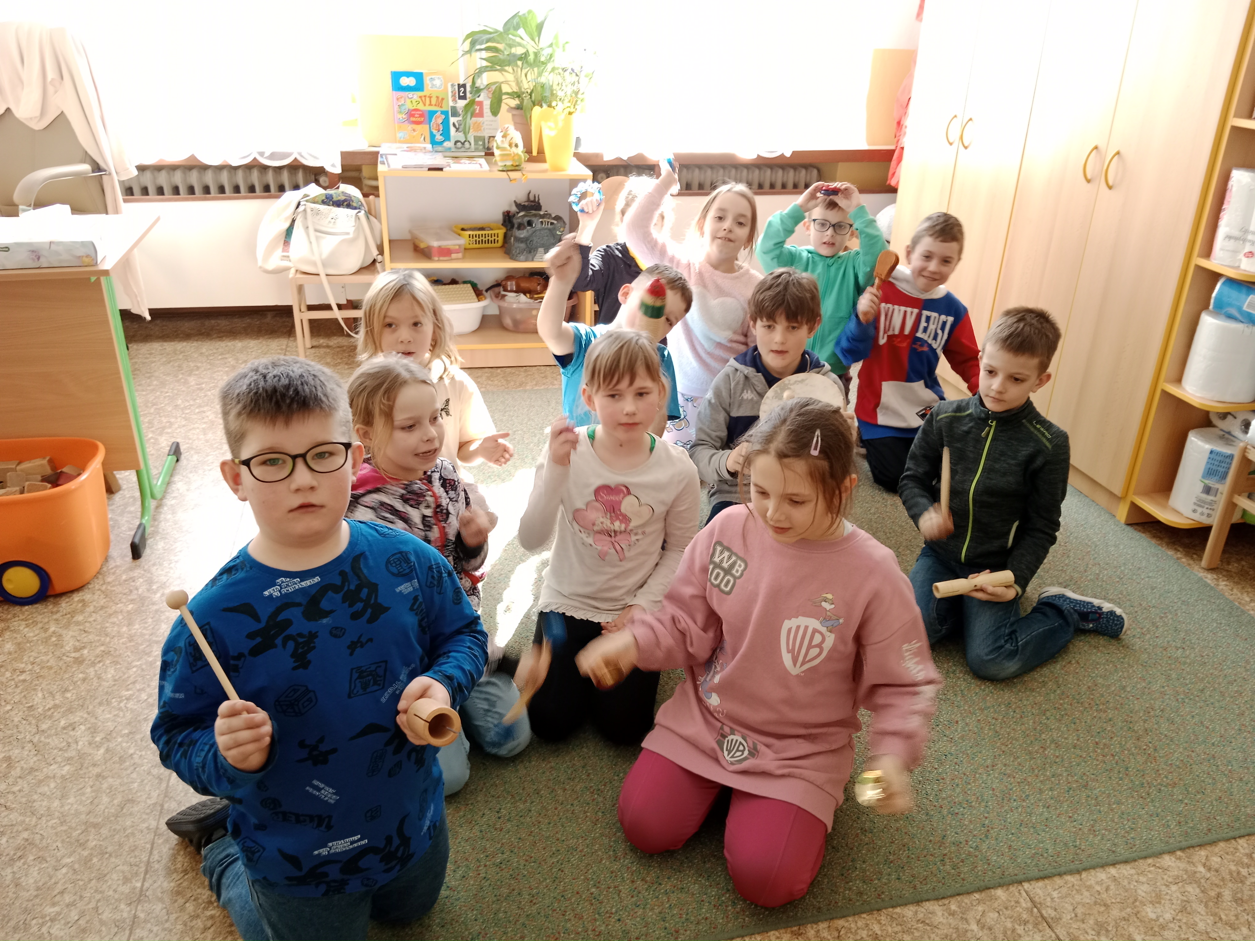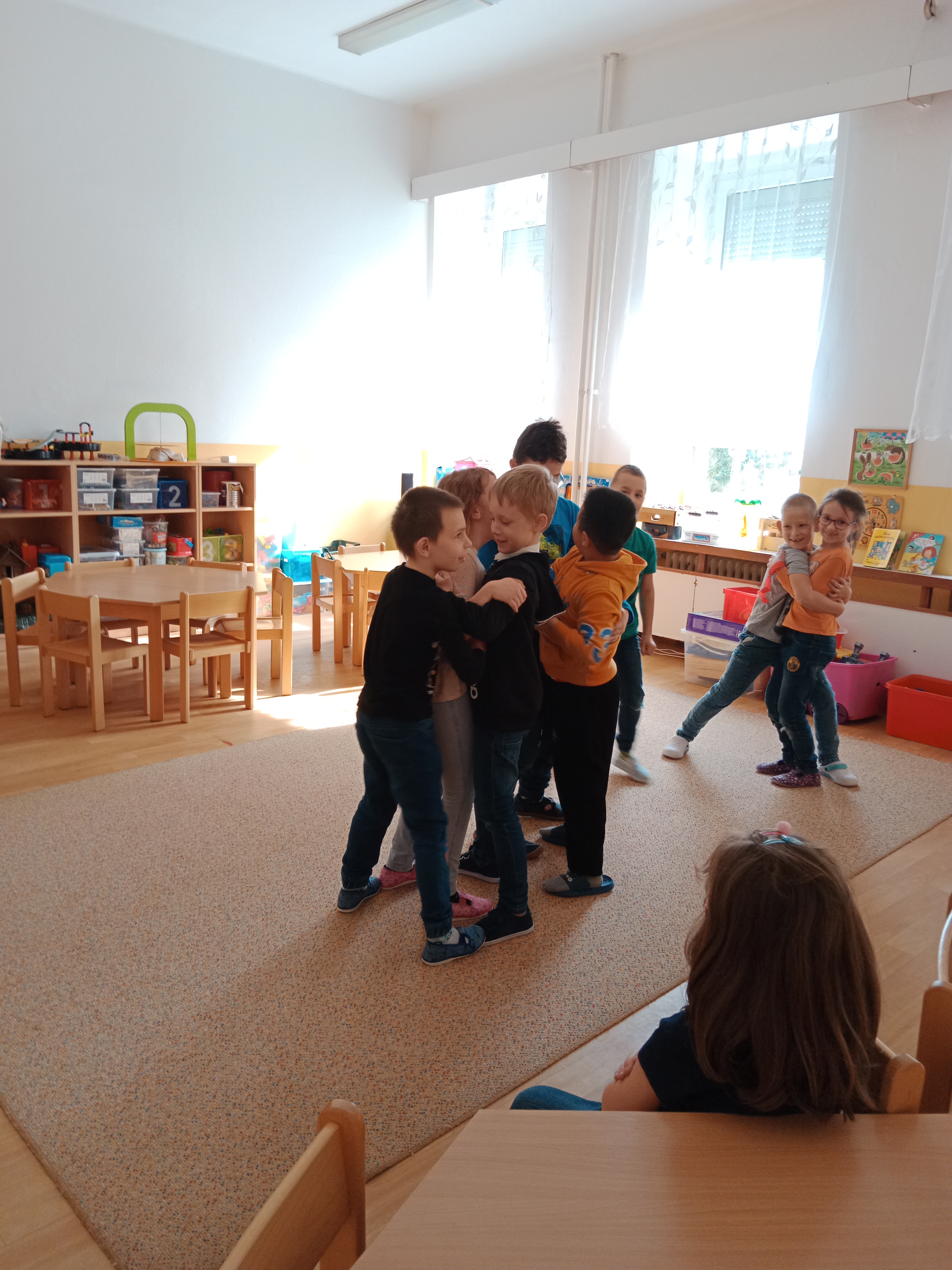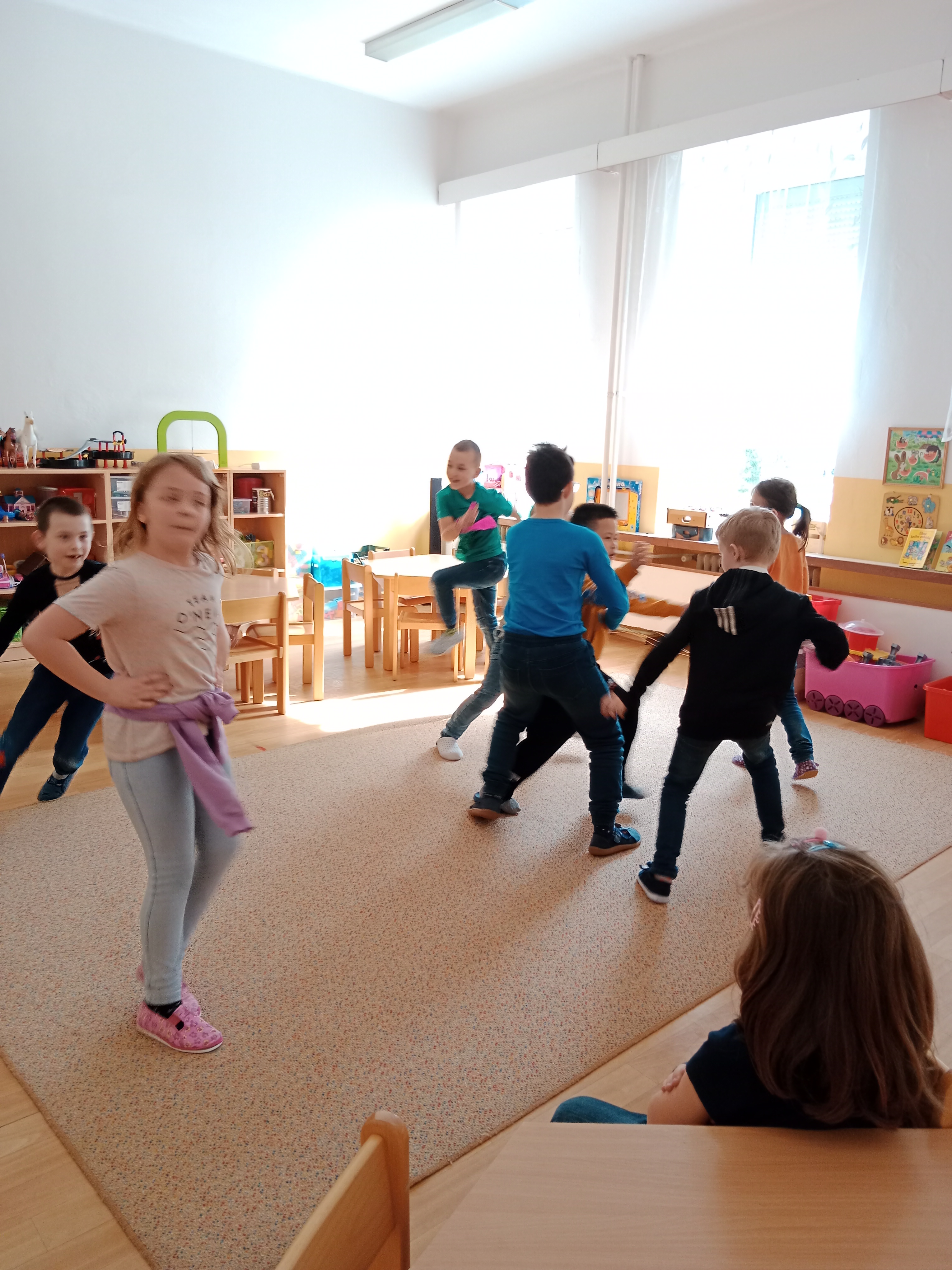 Nezapomínáme ani na zpěv a tanec, pohybové hry, zkoušeli jsme koordinační cviky.