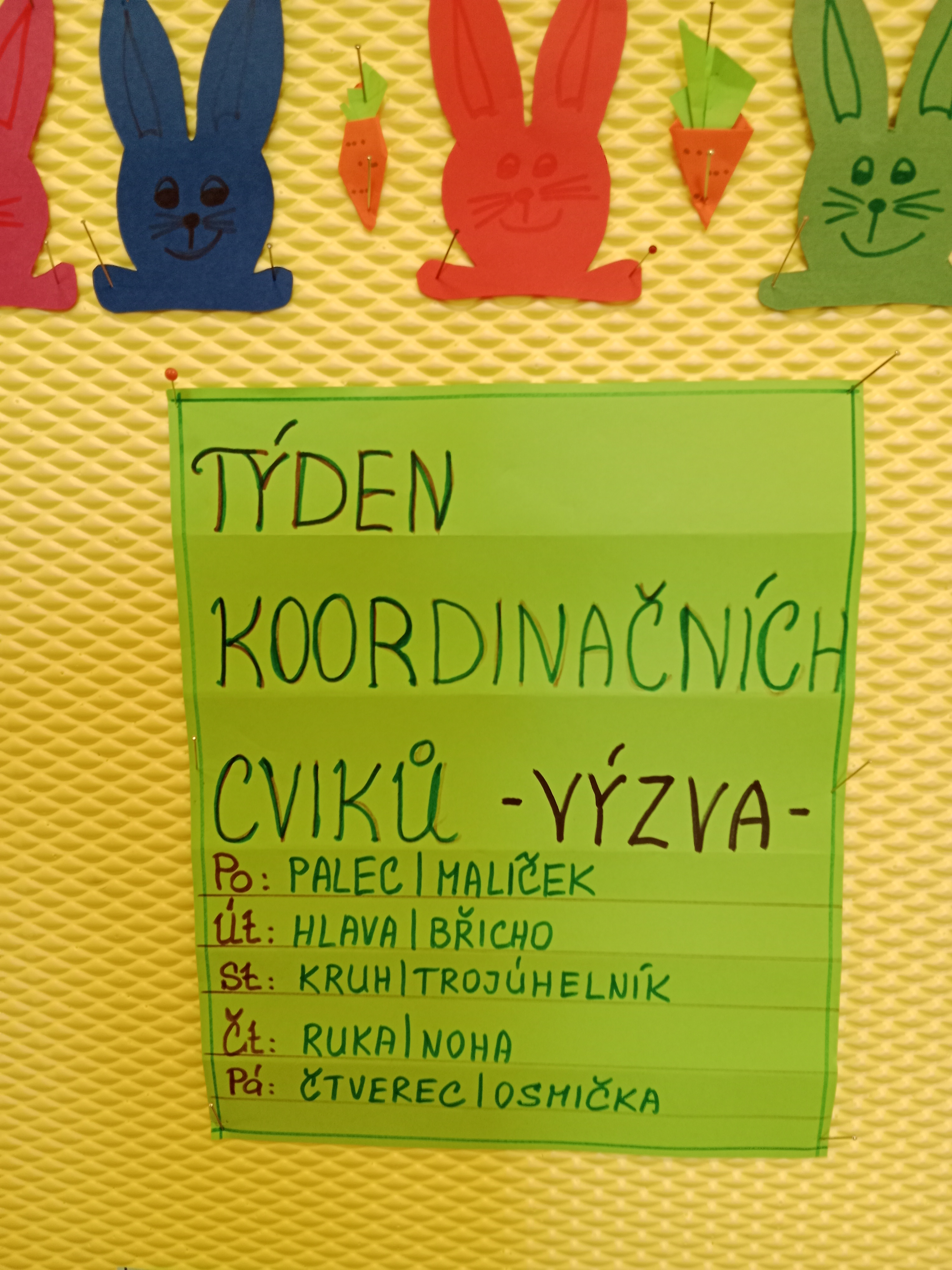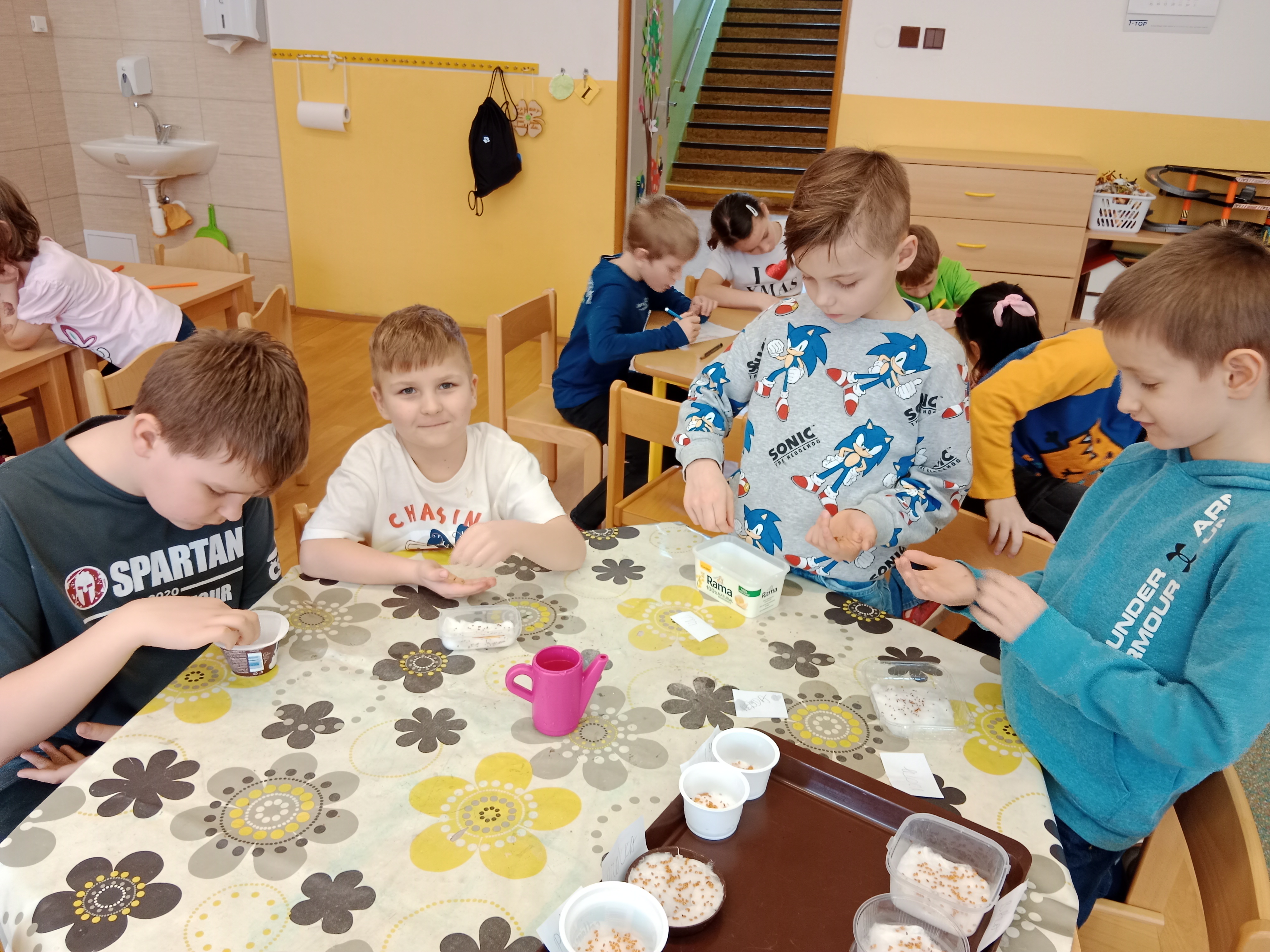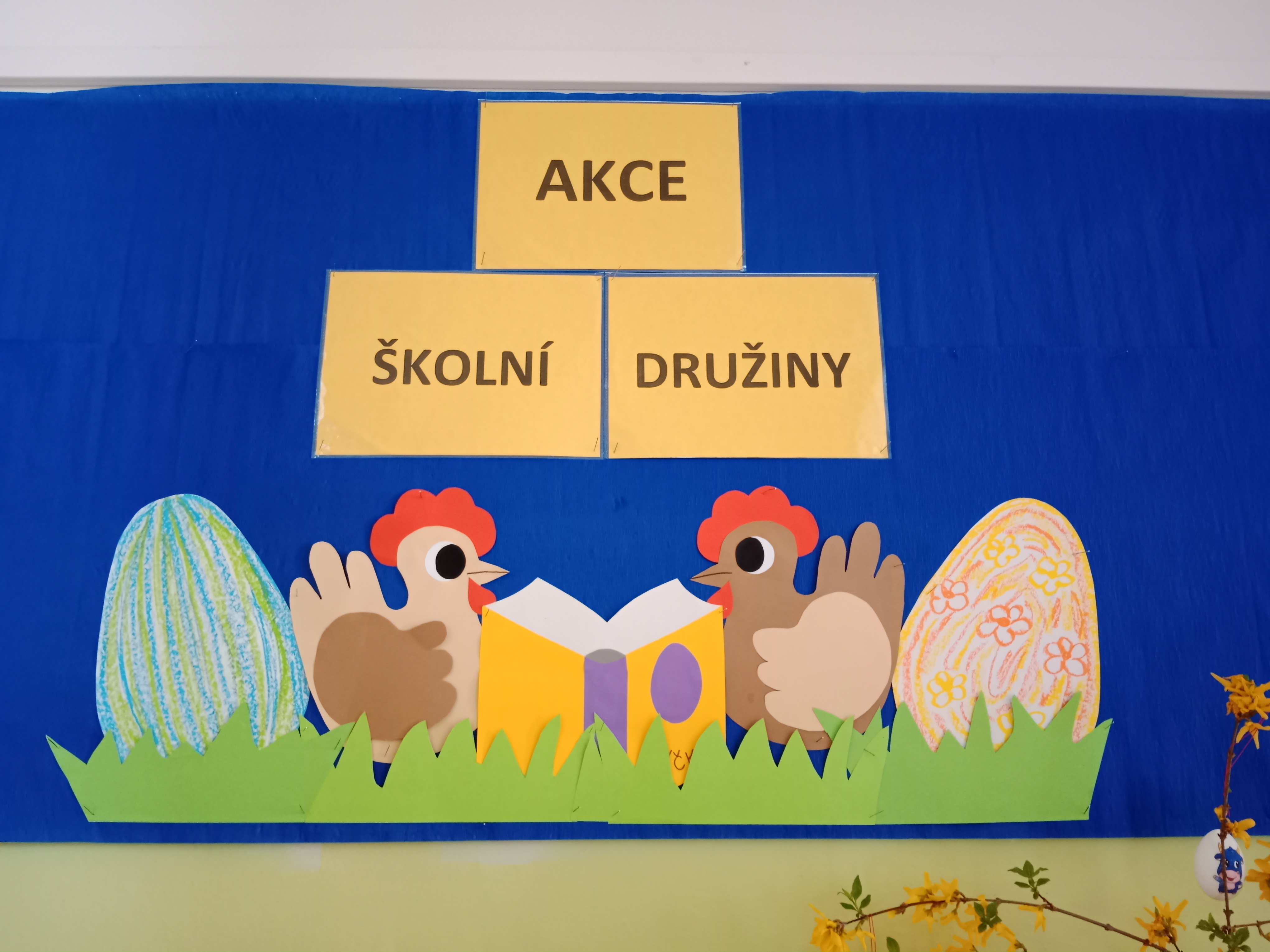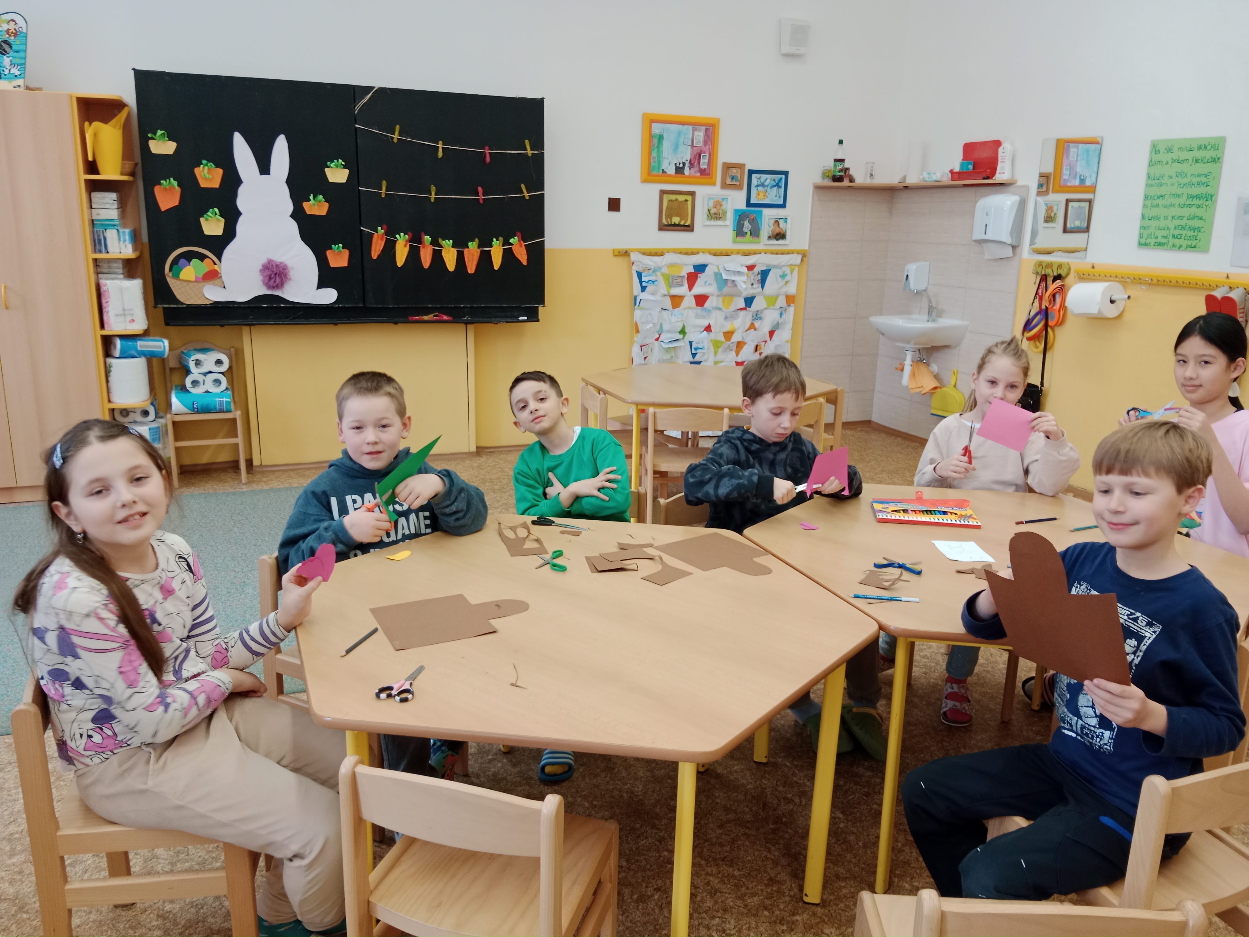 Probíhaly přípravy na Velikonoce ve všech činnostech - vytváření, tradice, symboly, setí řeřichy a jiné. Zahráli jsme si i tematické kolektivní hry například Na slepičky, Slepice hledá kuřátka, Evoluce.