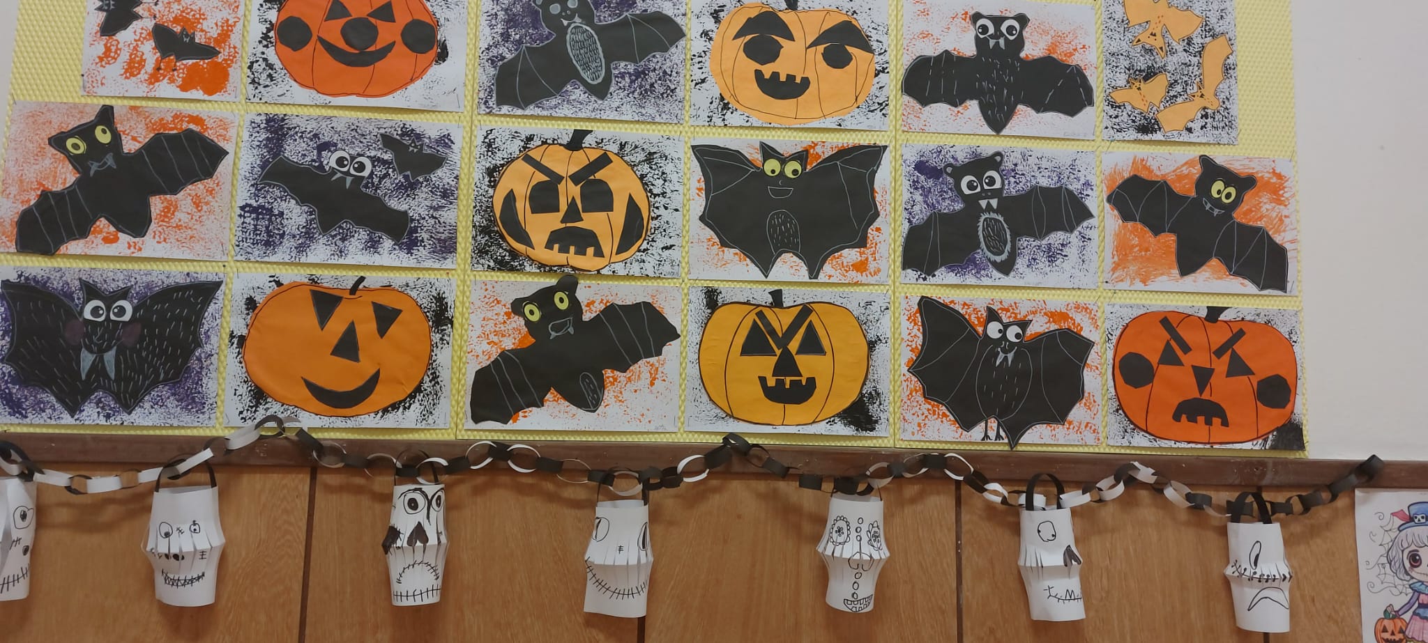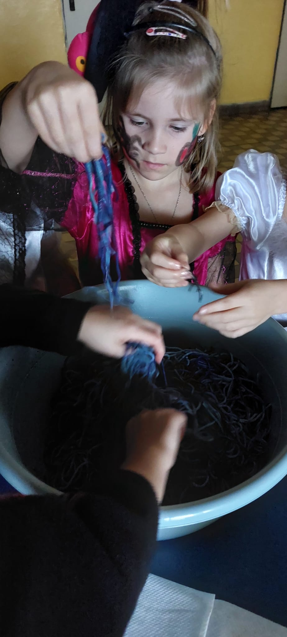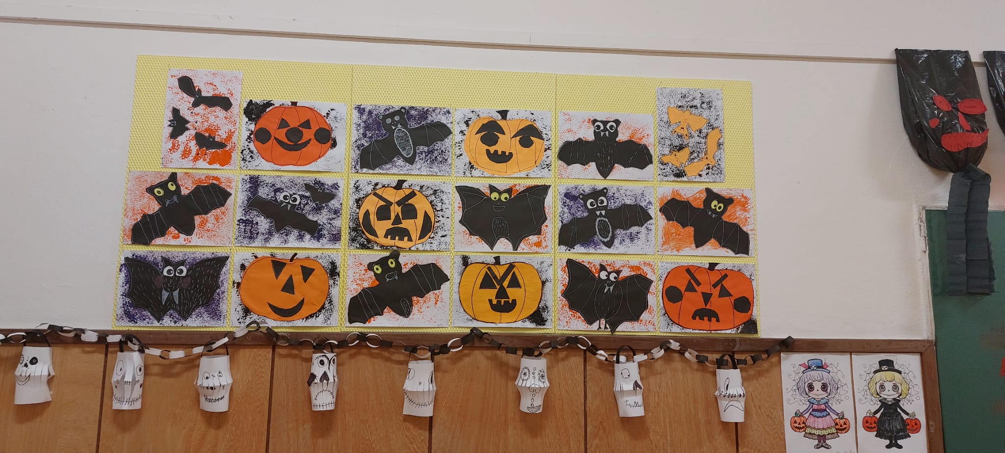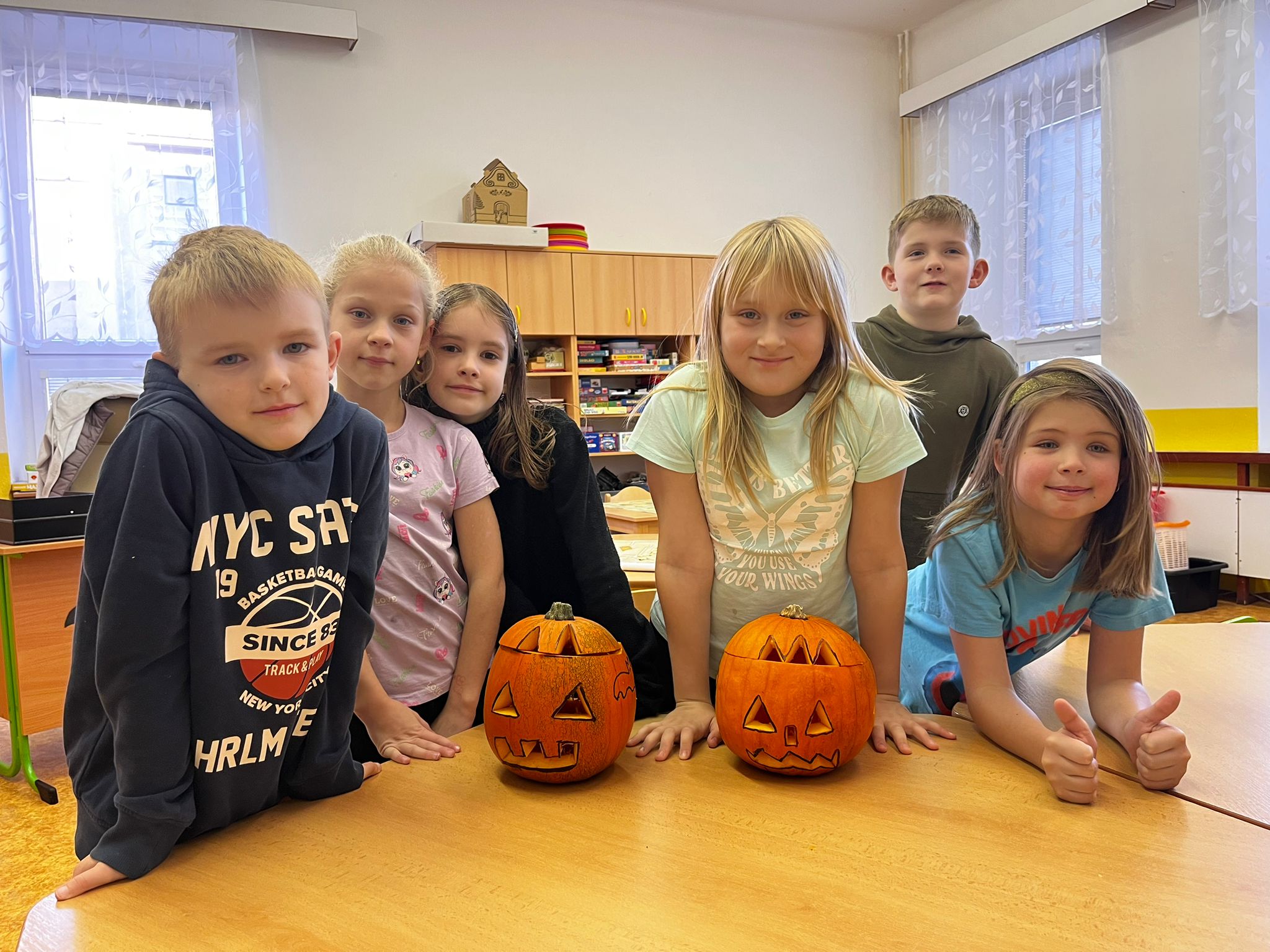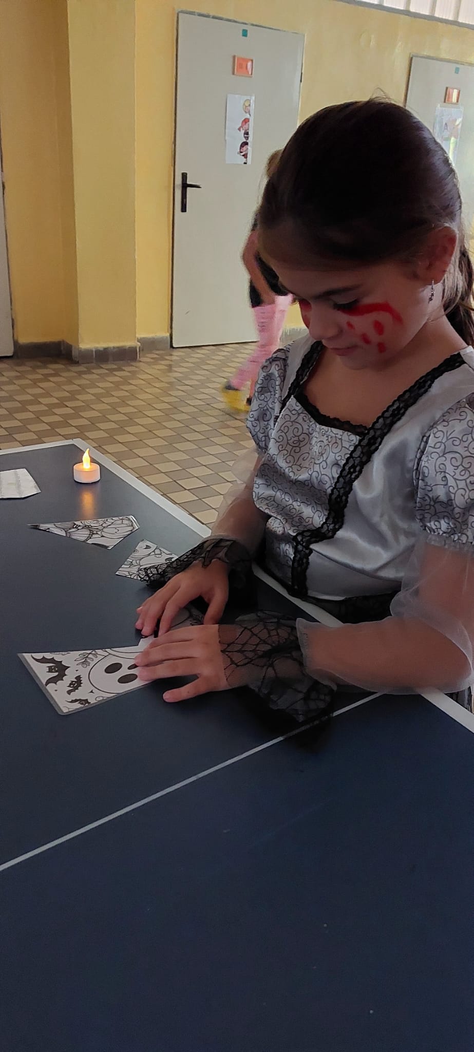 Stezky vedly z oddělení, po chodbách i v prostoru školních šaten. Děti chodily jednotlivě, ve dvojicích nebo ve skupinkách a plnily úkoly, řešily rébusy nebo měly praktické čarodějné úkoly. Jistě nezapomenou na společné luštění, hledání pavouků v modrém cosi:), na pití kouzelného lektvaru a další zážitky. Po vyplnění halloweenských tajenek a splnění daných úkolů čekala na děti opravdu sladká odměna v podobě pavouků, duchů, dýní a dalších dobrot.