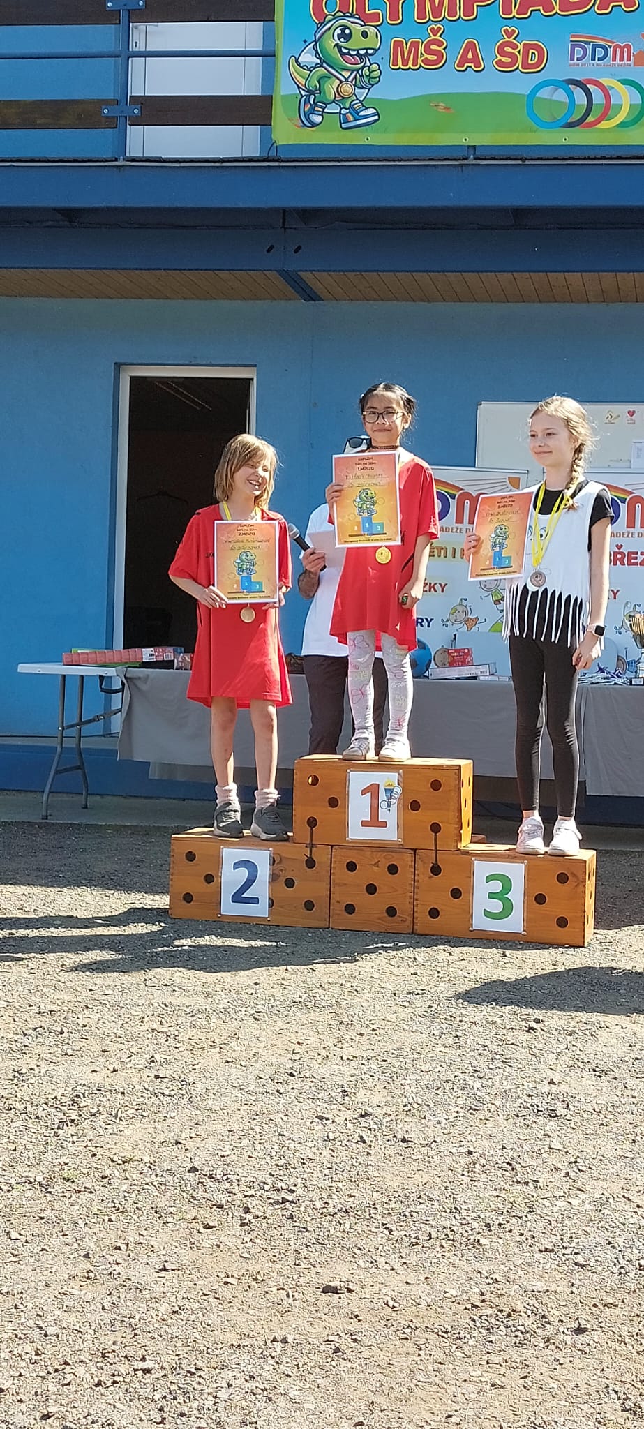 Tomáš Smola vyskákal 1. místo a Eliška Pham s Viktorií Riňákovou byly nejrychlejšími raketami na hřišti. V běhu na 50 metrů vyhrála Eliška Pham 1. místo a Viktorie Riňáková 2. místo.