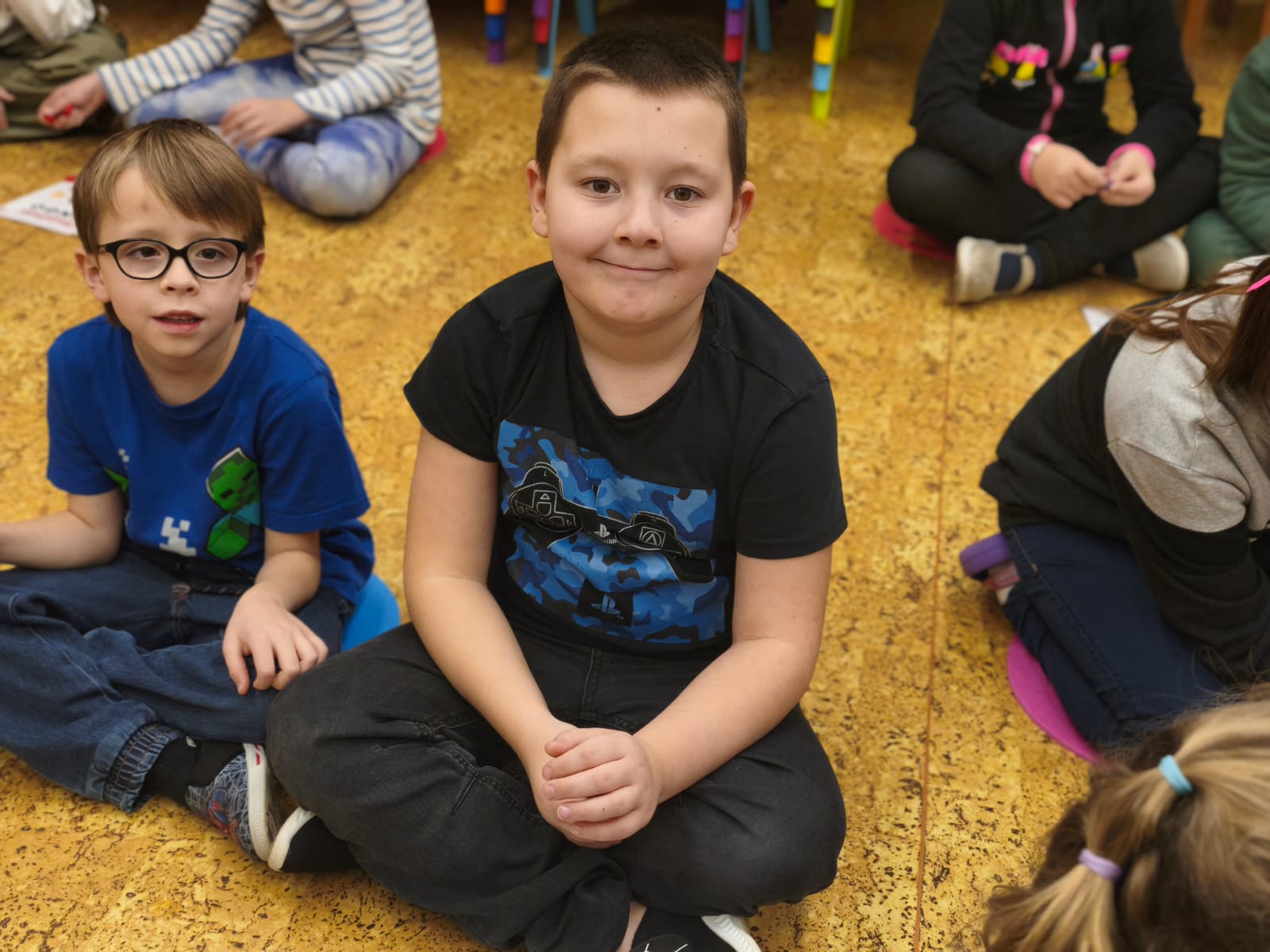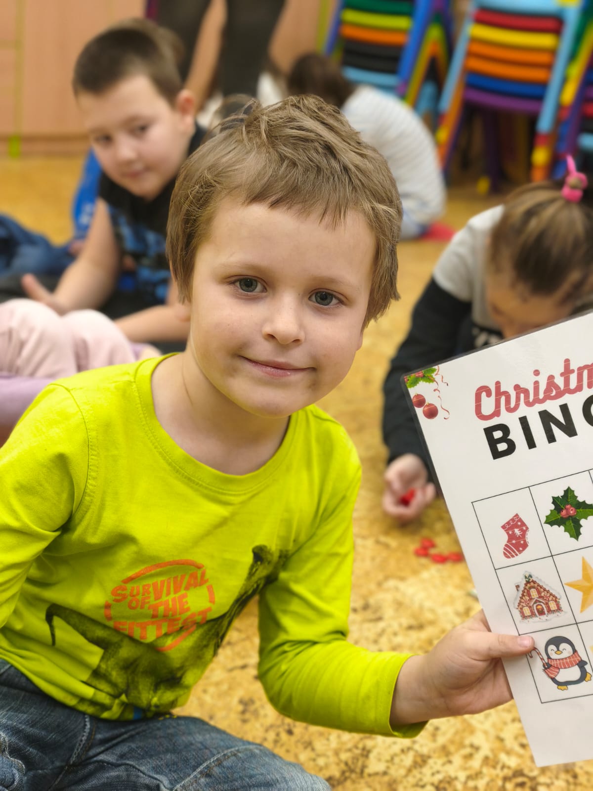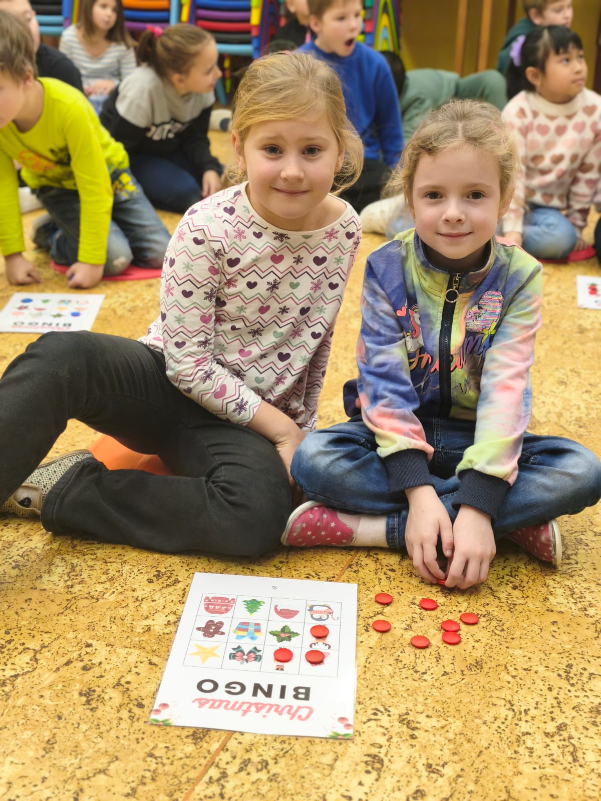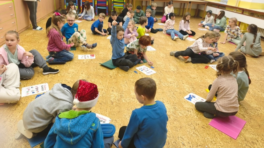 Sešli jsme se v hudebně, kde děti soutěžily ve dvojicích. Musely zaplnit všechna políčka své hrací karty žetony. Pro velký úspěch jsme hru protáhli na dvě kola.