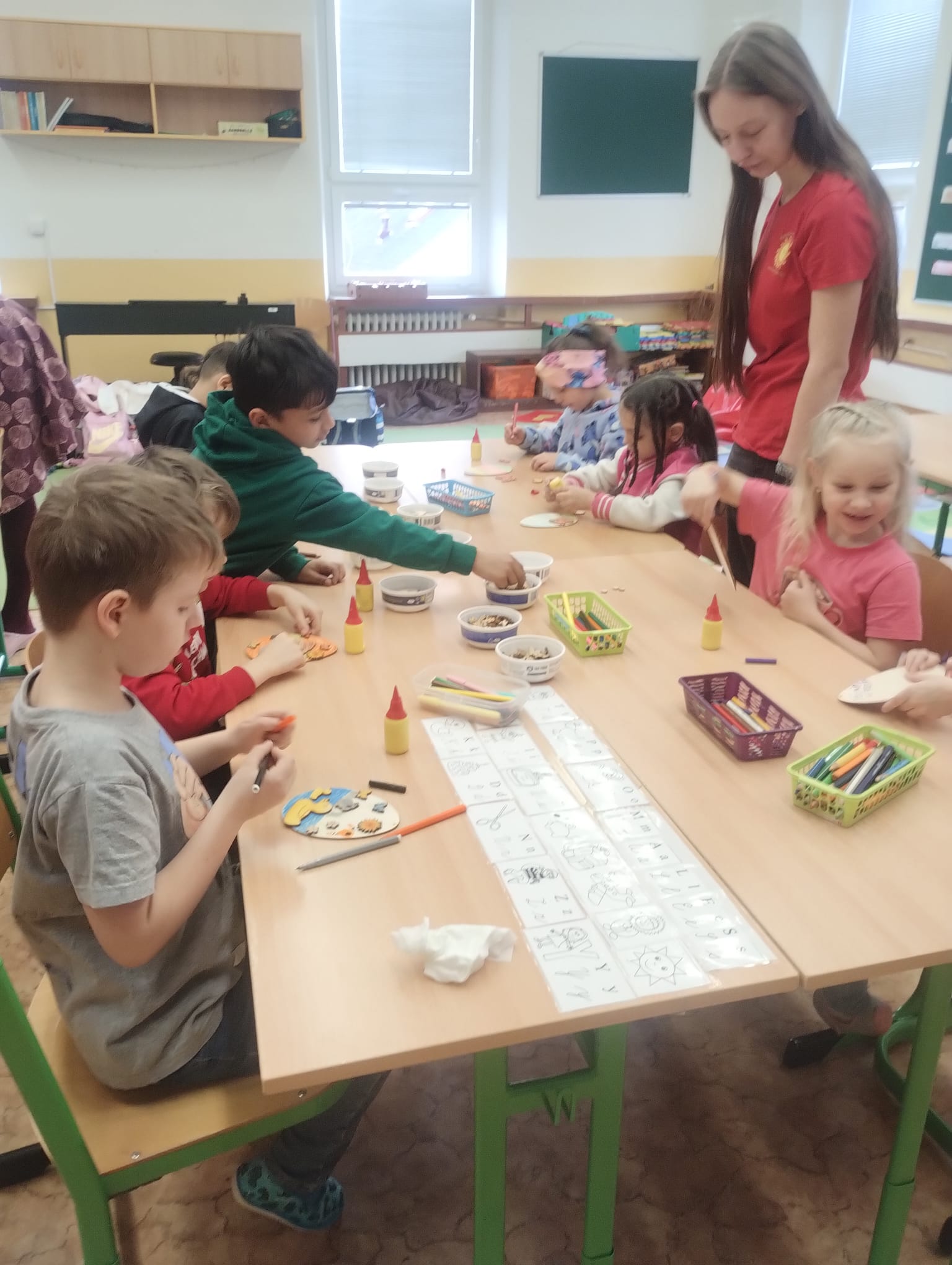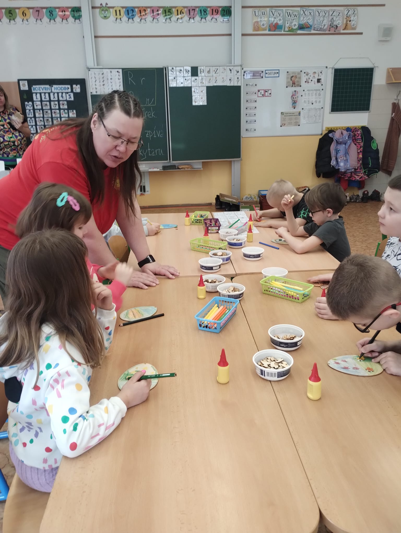 V úterý 10.3. se naši prvňáčci zúčastnili dílniček na téma Velikonoce a vyrobili si 3D velikonoční vajíčko ze dřeva. To nám umožnila paní Kučerová a její pomocníci z Prahy, kteří nás navštívili. Zapojily se i paní učitelky a asistentky. Všem se tvoření velice líbilo. Marcela Ledvinková