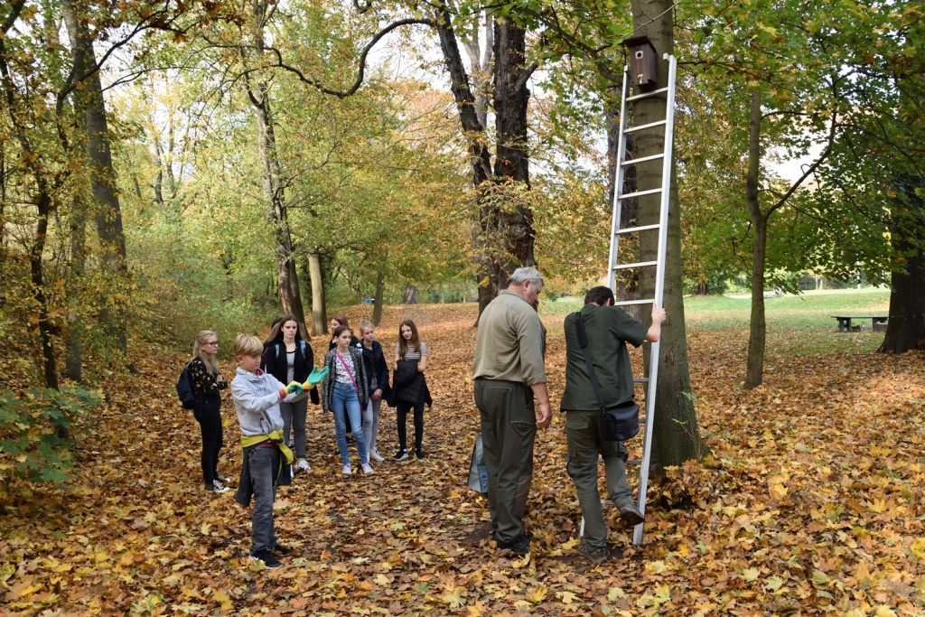 V pondělí 21. 10.2019 se žáci biologického kroužku účastnili čištění a kontroly budek, které rozvěšovali společně se strážci přírody letos na jaře v prostorách zámeckého parku. Celkem takto bylo vyvěšeno 9 budek, sedm z nich bylo během hnízdní sezóny obsazeno sýkorou koňadrou případně sýkorou modřinkou. Žáci se tedy na vlastní oči mohli přesvědčit, že budky plní svůj účel. Během vybírání starých hnízd se pod vedením zkušeného ornitologa pana Miroslava Půlpána seznámili s tím, jak rozeznat, která ze dvou zmíněných sýkor budku obsadila. Pro některé žáky byl možná trochu šok, když v jedné z budek objevili mrtvá mláďata sýkor koňader. Pokud v každé z obsazených budek proběhlo dvojí hnízdění lze v tomto roce odhadovat počet vyvedených mláďat na 42 kusů (za předpokladu průměrného počtu tří mláďat na hnízdo). I v příštím roce budou žáci budky udržovat ve funkčním stavu a sledovat, jaké druhy ptáků v nich hnízdí.