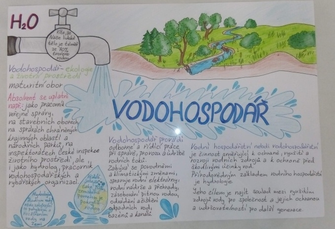 V úterý 3. 12. 2019 proběhlo na Úřadu práce ČR vyhodnocení soutěže Plakát povolání a předávání cen. Tuto soutěž vyhlásil realizační tým Veletrhu Škola Děčín 2019 na konci loňského školního roku pro žáky osmých ročníků ZŠ. Do soutěže bylo zasláno 111 prací, z nichž bylo 30 vystaveno na veletrhu, kde návštěvníci hlasováním vybrali plakáty, které se jim nejvíce líbily. Valentýna Grulichová se umístila se svým plakátem „Vodohospodář“ na 3. místě.