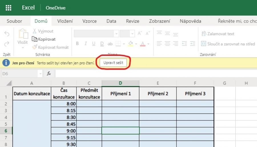 - Bude probíhat zápisem v online sdíleném dokumentu, kdy odkaz na něho pro každého učitele bude uvedený na stránkách školy a TU jej zašlou rodičům přes systém Bakaláři, a současně zasláním informace danému kantorovi na služební mail – přehled služebních emailů je uveden v dokumentu "Organizační zajištění provozu ZŠ a MŠ Děčín III, Březová 369/25, příspěvková organizace".