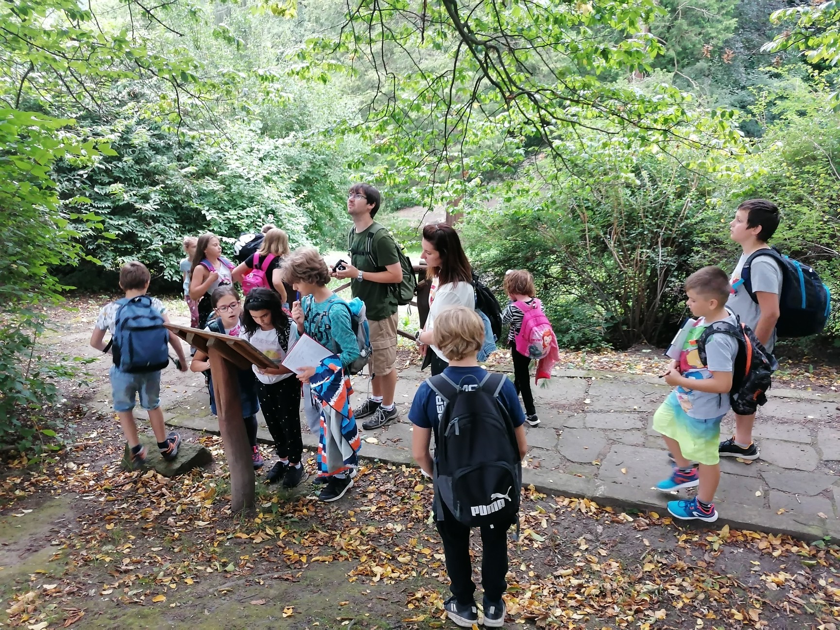 Čtvrtek byl věnován geologii a ekosystémům. Žáci se seznámili s geologickou historií Děčínska, p. uč. Patová pro ně připravila aktivitu, při které si děti vytvořily vlastní model soptící sopky. Zjednodušený přehled ekosystémů pak prostřednictvím různých úkolů děti nejenom obohatil o nové poznatky, také si zde opět procvičily různou v práci s textem. Odpoledne jsem pro žáky měl připravený program na Kvádrberku, kde děti v týmech vyplňovaly tabulku, do které zaznamenávaly na základě informací z informačních cedulí, které druhy stromů jsou v parku původní a které nepůvodní a odkud tyto nepůvodní druhy pak pocházejí. Krom vyhledávání informací v textu u dvaceti druhů stromů se žáci také naučili, jak mezi sebou rozlišovat podobné druhy – např. buk a habr, javor a platan či dub letní a dub červený.