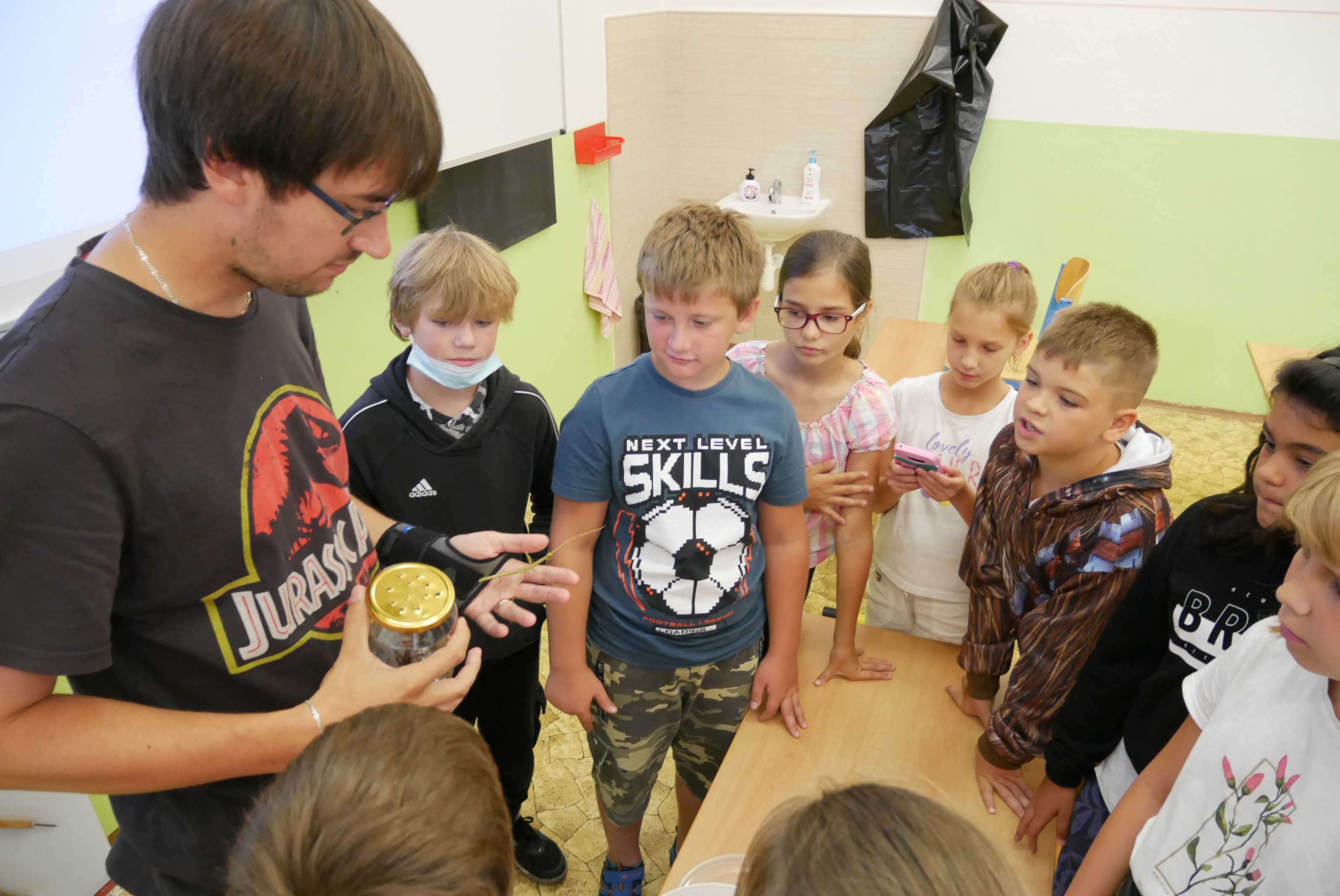 V úterý jsem měl pro žáky na dopoledne připraven blok úkolů o fauně Děčína. Prostřednictvím různých úkolů se seznámili s čápy a volavkami, na iPadech si zahráli hru na poznávání zvířat Děčína připravenou v aplikaci Kahoot! a dále se pak detailněji seznámili s životem ježků. Vrcholem tohoto bloku pak bylo odhalení tajemného obsahu kyblíku, který jsem ten den s sebou přinesl. Pro žáky jsem připravil demonstraci strašilek a pakobylek a larev tropických zlatohlávků. Pakobylku si žáci mohli dokonce vzít do ruky a pokud chtěli, tak se s ní i vyfotit. Paní učitelka Patová měla pak v závěru dopoledne pro žáky připravené pokusy s balónkem, kdy se žáci snažili balónek propíchnout špejlí nebo špendlíkem tak, aby nepraskl a mnoho dalšího. Odpolední část dne byla věnována návštěvě Zoo Děčín. Zde jsem pro žáky připravil soutěž. Děti vytvořily tři týmy a jejich úkolem bylo vypsat v omezeném čase všechna zvířata v zoo, která se vyskytují ve volné přírodě naší republiky. Tým, který měl nejvíce zvířat správně, vyhrál. Úkol to nebyl úplně jednoduchý, jelikož areál výskytu zvířat je na cedulkách v zoo vyznačen pouze červenou barvou na mapě světa, takže se žáci nedříve museli v týmu shodnout na tom, kde vlastně leží ČR. Během soutěže měli žáci povoleny mobilní telefony, které mnozí využili k ověření správnosti svých domněnek.