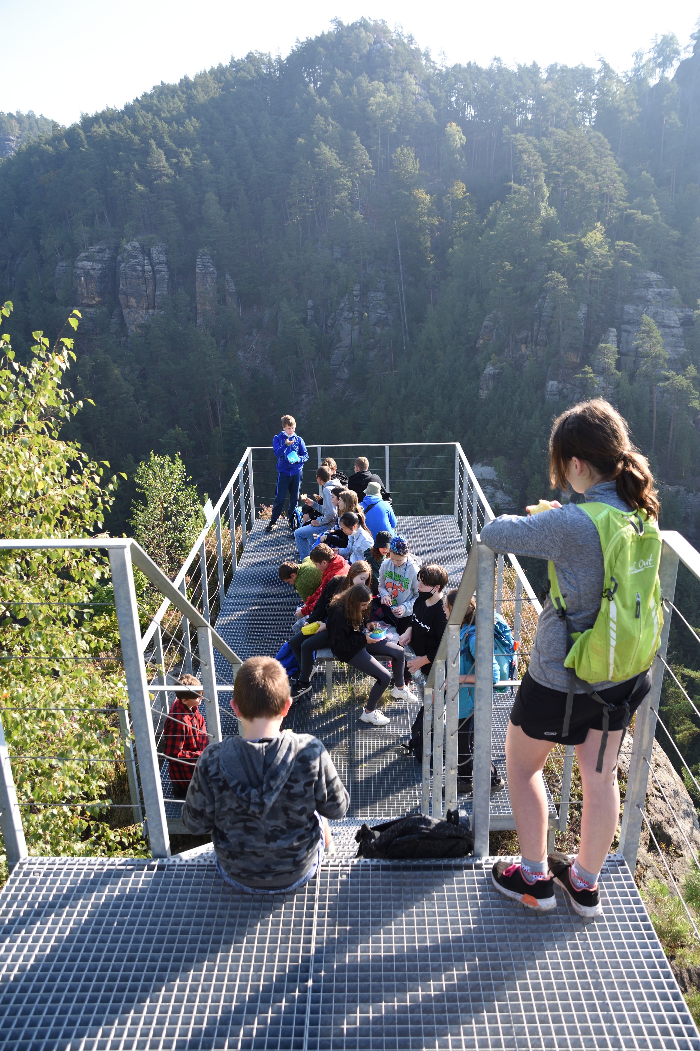 Děti se do Jetřichovic vypravily autobusem, který přijel přímo ke škole. Po tom, co jsme dorazili do Jetřichovic, jsme byli seznámeni s programem a vydali se na zříceninu hradu Falkenštejn a následně na Mariinu vyhlídku. Výstup k Falkenštejnu zvládli všichni, na Mariinu vyhlídku však všichni nedošli. Někteří se rozhodli využít nabídky si odpočinout těsně pod výstupem na samotnou vyhlídku.