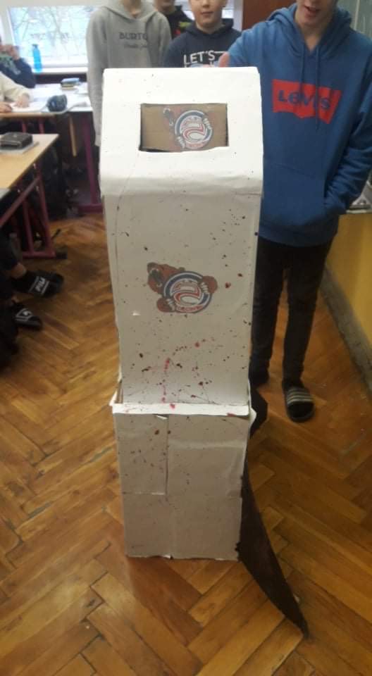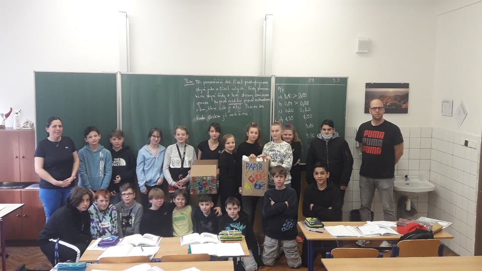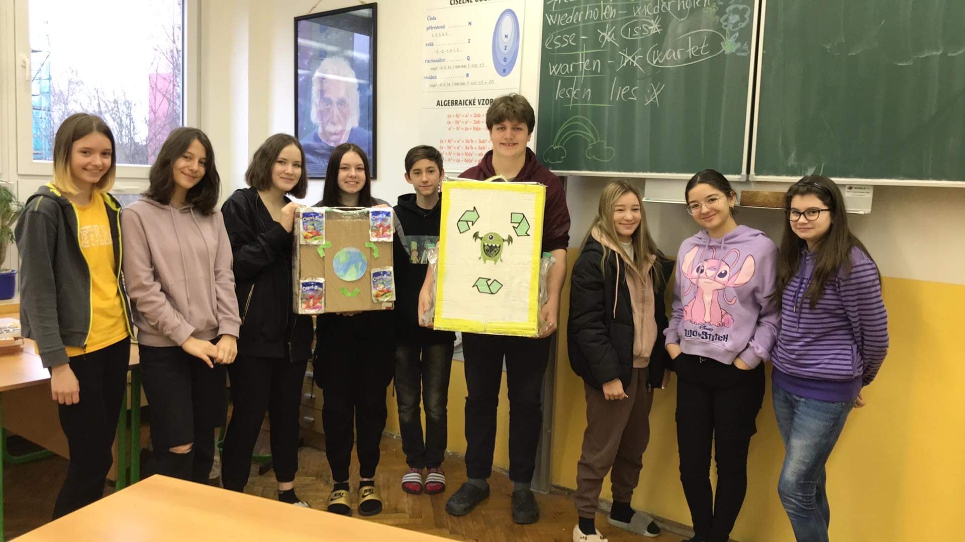 V novém pololetí měli žáci možnost zúčastnit se mezitřídní soutěže o nejzajímavější nádobu na tříděný odpad. Ve čtvrtek 3. 3. 2022 se vydali porotci, paní učitelka Adéeová a pan učitel Michajličenko, do tříd, aby zhodnotili, jak si jednotlivé třídy s úkolem poradily.