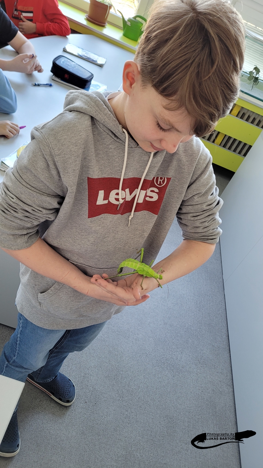 Žáci si zblízka prohlédli lupenitku dvouokou, strašilku australskou a tu nejimpozantnější – strašilku obrovskou – si dokonce mohli vzít i do ruky. Některým žákům chvíli trvalo, než se odvážili, jiní neváhali a zvíře si vzali na svou ruku okamžitě, mnozí si se zvířetem udělali na památku fotografii. Reakce dětí napříč ročníky je velice pozitivní a chodí nové „mazlíčky“ obdivovat během přestávek, což mi dělá radost.