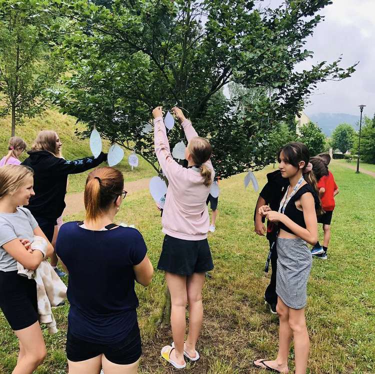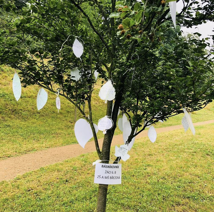 Žáci 6.B měli v posledních hodinách češtiny jednoduchý úkol: opsat text nějaké své oblíbené básničky, písničky nebo textu, který se jim líbí. Texty napsaly do listů a ve středu 29. června po svolení paní ředitelky Děčínského zámku, jsme naše básničky zavěsili na strom v jižních zahradách a tím pádem vznikl náš Básníkovník.