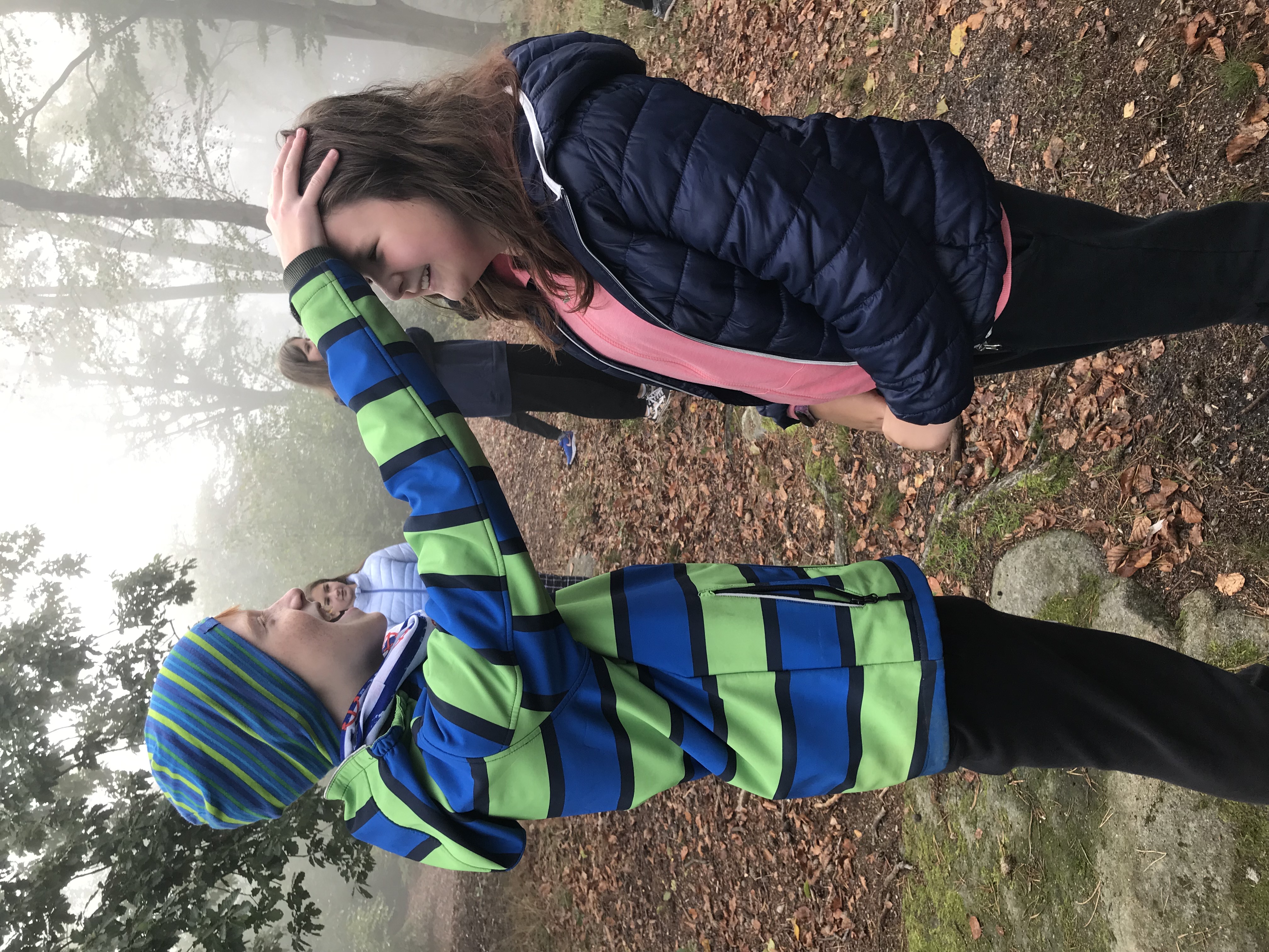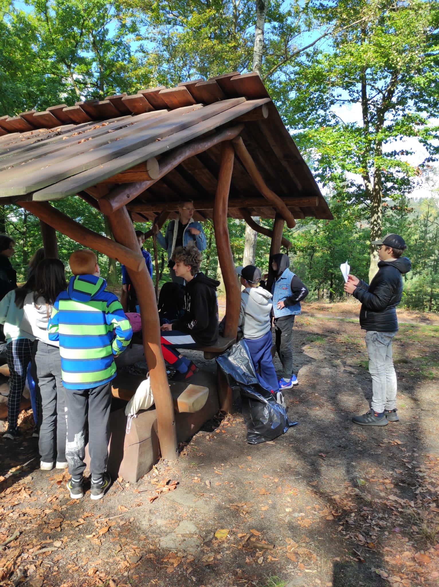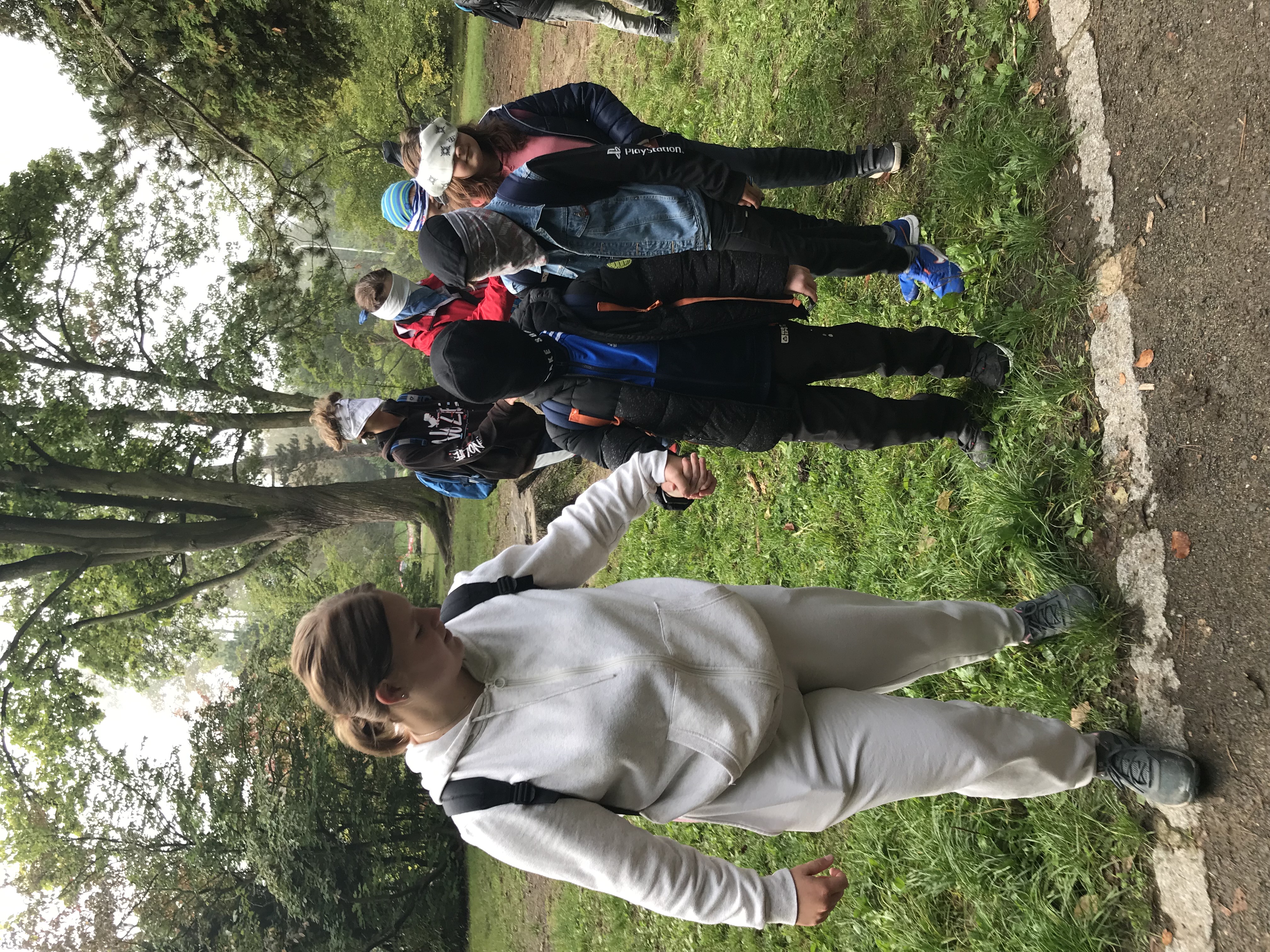 Po srazu na dvoře školy jsme se mlžným ránem vydali směrem na Kvádrberk, kde jsme plánovali podniknout seznamovací aktivity. Už pod vrcholem na vedoucí Báru a Maky čekal první úkol. Ostatní parlamenťáci se rozdělili do dvou skupin, zavázali si oči a Bára s Maky je měly dovést bezpečně až na