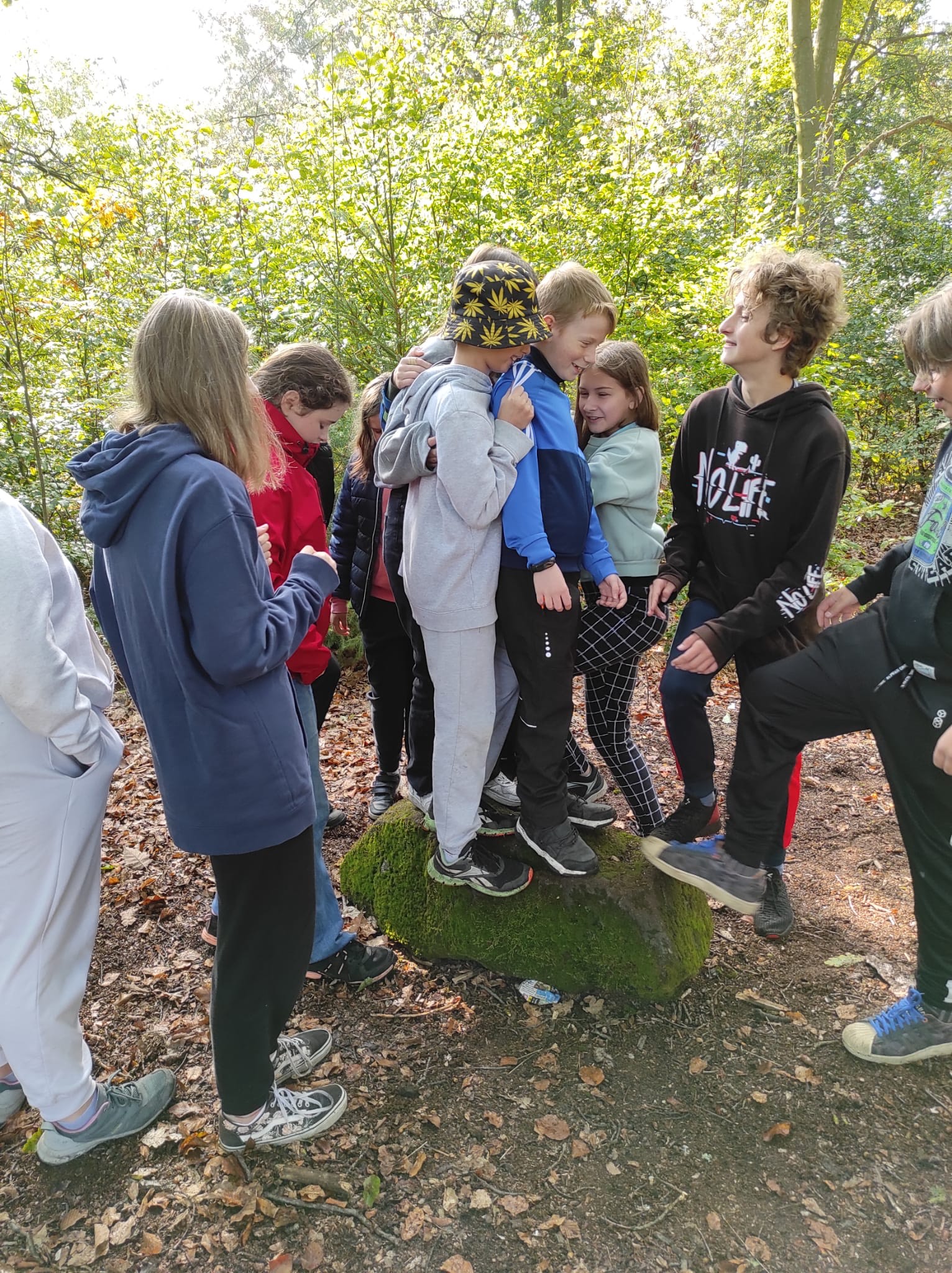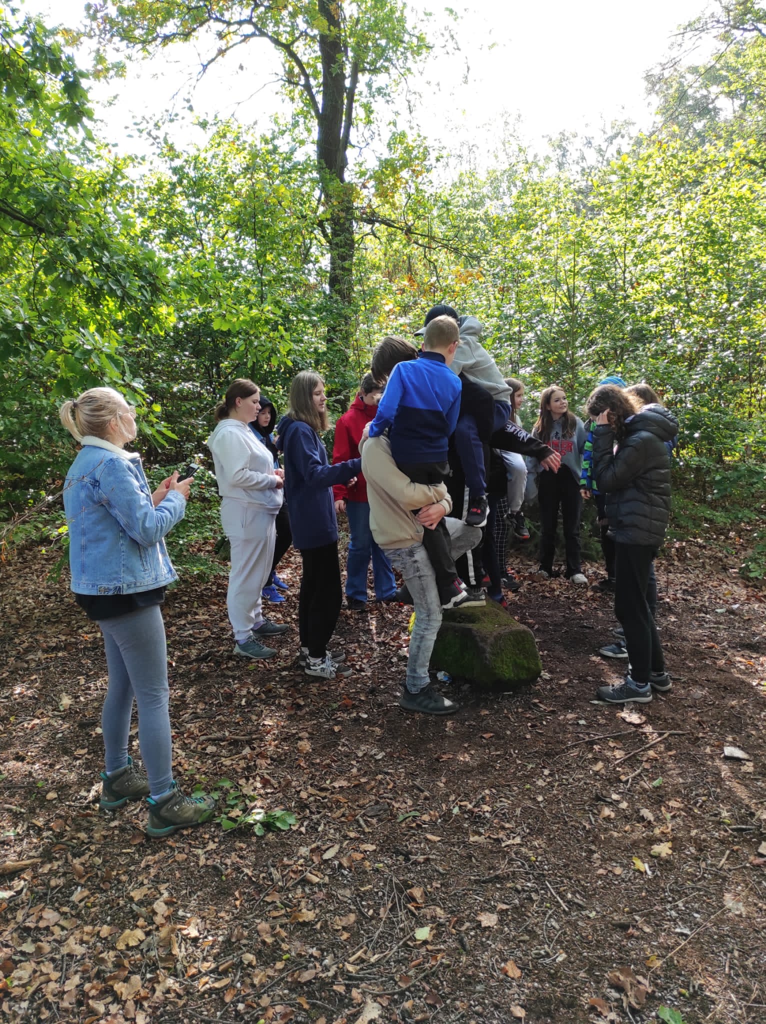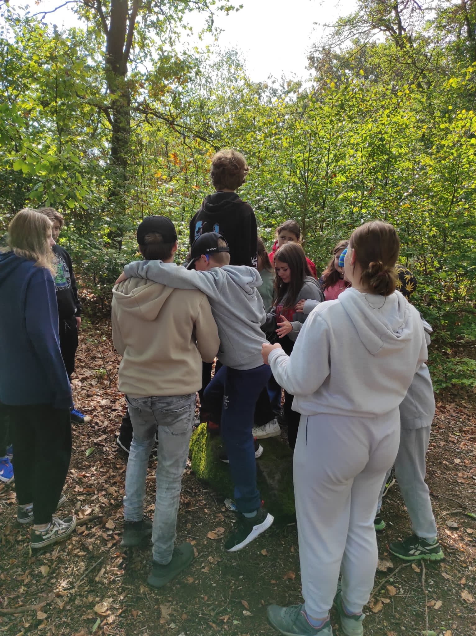 Po srazu na dvoře školy jsme se mlžným ránem vydali směrem na Kvádrberk, kde jsme plánovali podniknout seznamovací aktivity. Už pod vrcholem na vedoucí Báru a Maky čekal první úkol. Ostatní parlamenťáci se rozdělili do dvou skupin, zavázali si oči a Bára s Maky je měly dovést bezpečně až na