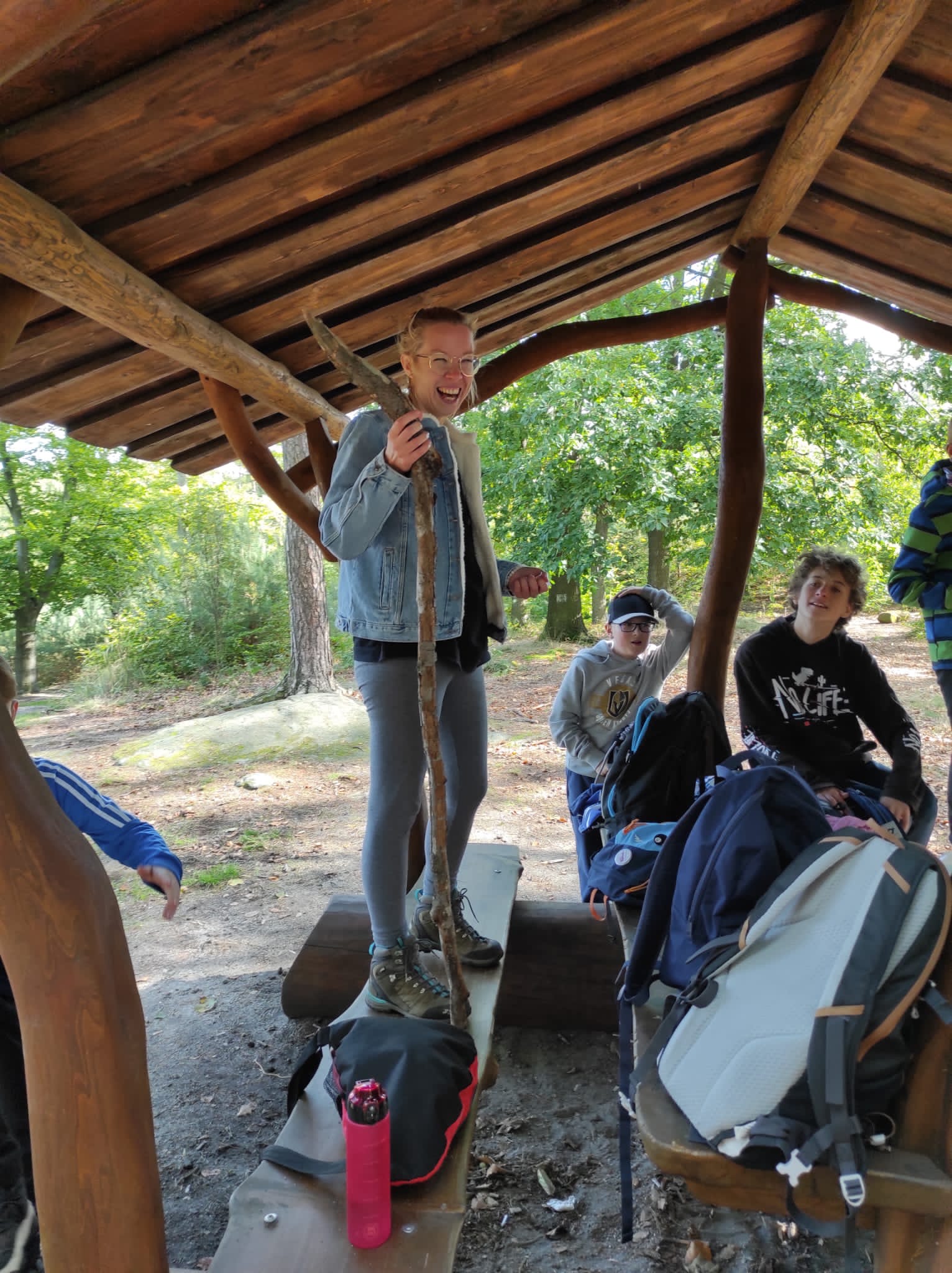 vrchol. A povedlo se! Všichni přežili ve zdraví. Potom už nás čekala spousta her, některé zaměřené na to, aby se žáci lépe poznali a zapamatovali si, kdo je kdo (např. Upír, Výměna identity), některé měly prověřit, jak si Bára a Maky poradí s vedením svých skupin, a napovědět tak, koho zvolit předsedkyní parlamentu. Nakonec jsme si zahráli některé hry jen tak pro pobavení. Zaházeli jsme si vlaštovkami, soupeřili ve hře Kámen, nůžky, papír. Proběhla i „schovka“, která ale byla tak důkladná, že jsme málem nikoho nenašli
