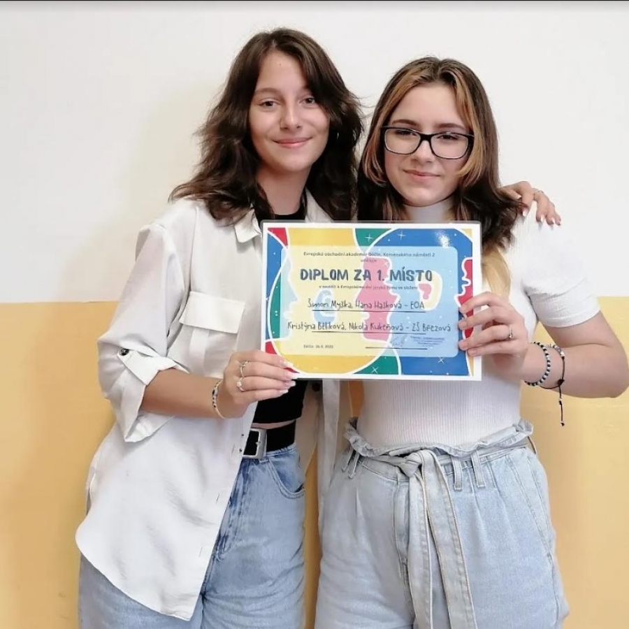 Velká gratulace patří Kristýnce Bělíkové a Nikče Kukeňové z 9. A, které vyhrály krásné první místo. Ostatním zúčastněným žákům moc děkujeme za reprezentaci naší školy.