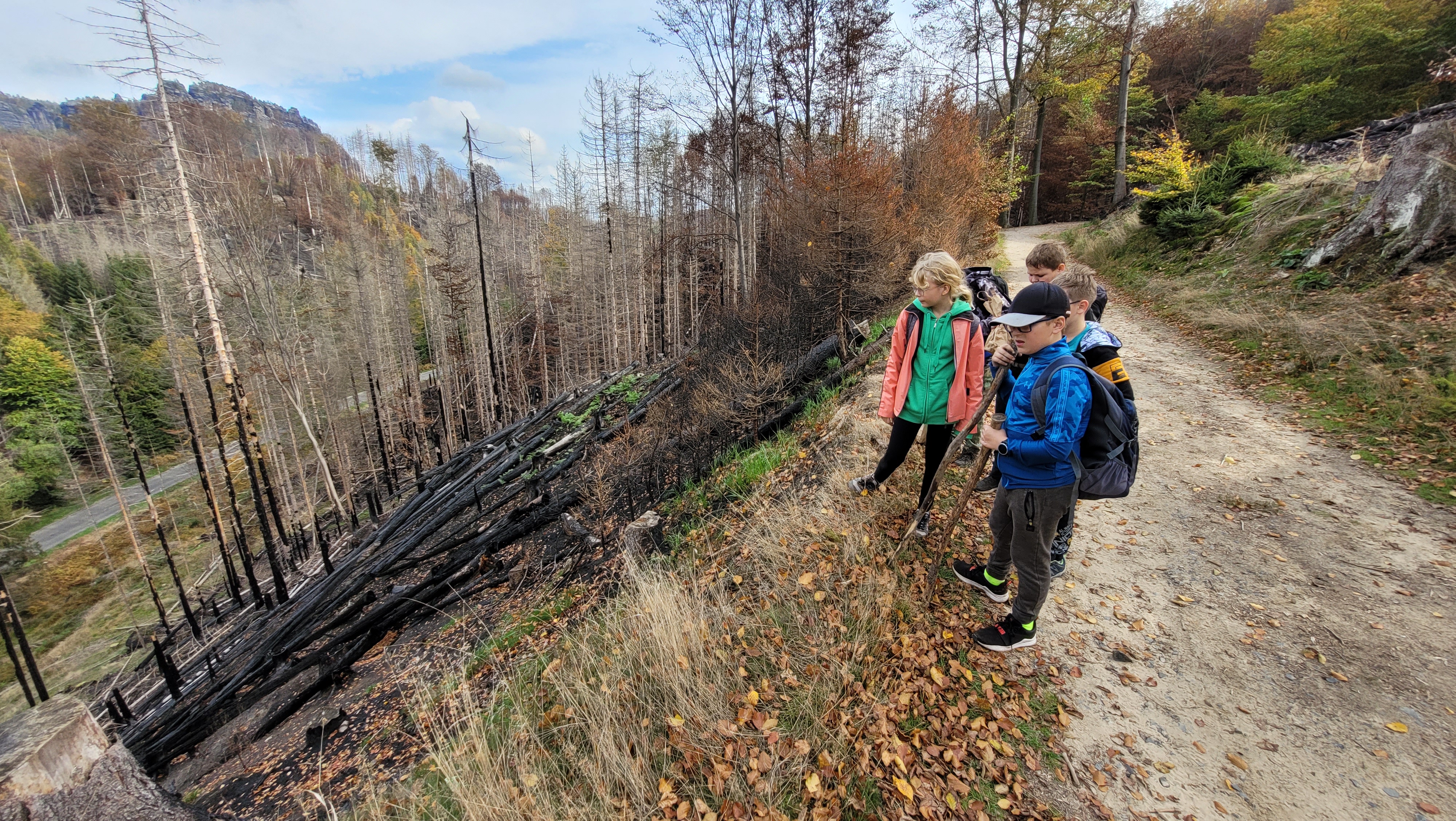 V sobotu 8. října 2022 jsem se s žáky z Biologického kroužku vydal na exkurzi po Národním parku České Švýcarsko. První část programu tvořila mykologická exkurze, kterou toho dne pořádal pro veřejnost národní park. Trasa vedla z Janova přes Meznou až ke Třem pramenům. Zde mykologická exkurze končila a já na ni navazoval výšlapem na Pravčickou bránu s komentářem o významu požárů v přírodě.