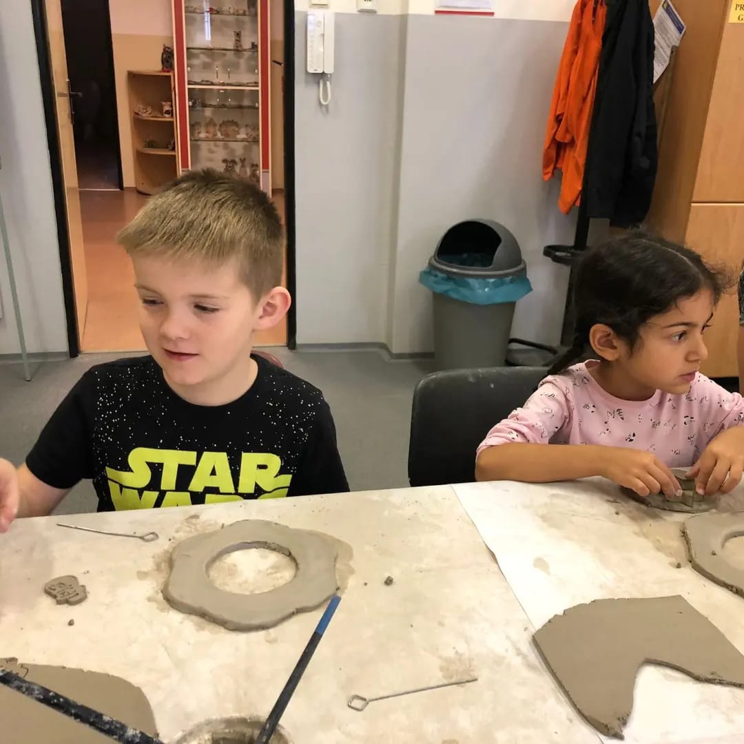 Děti byly moc šikovné, pracovaly s keramickou hlínou a každý si vyrobil svůj vánoční věnec. Ty budou žáci samozřejmě prodávat na našich vánočních trzích.