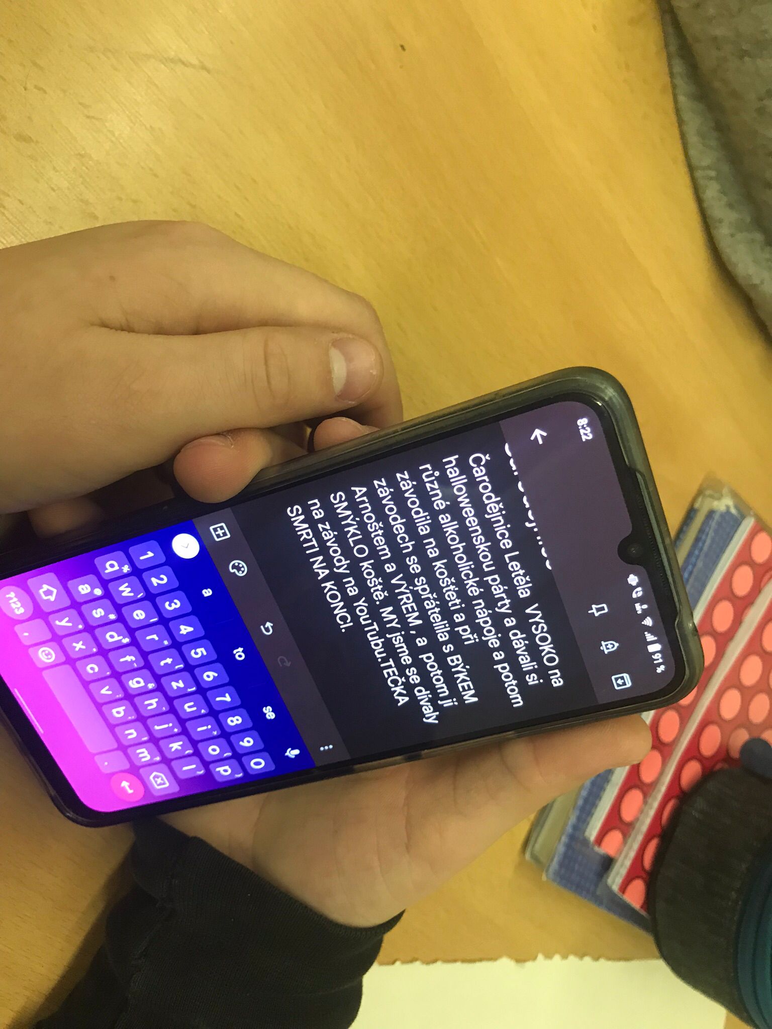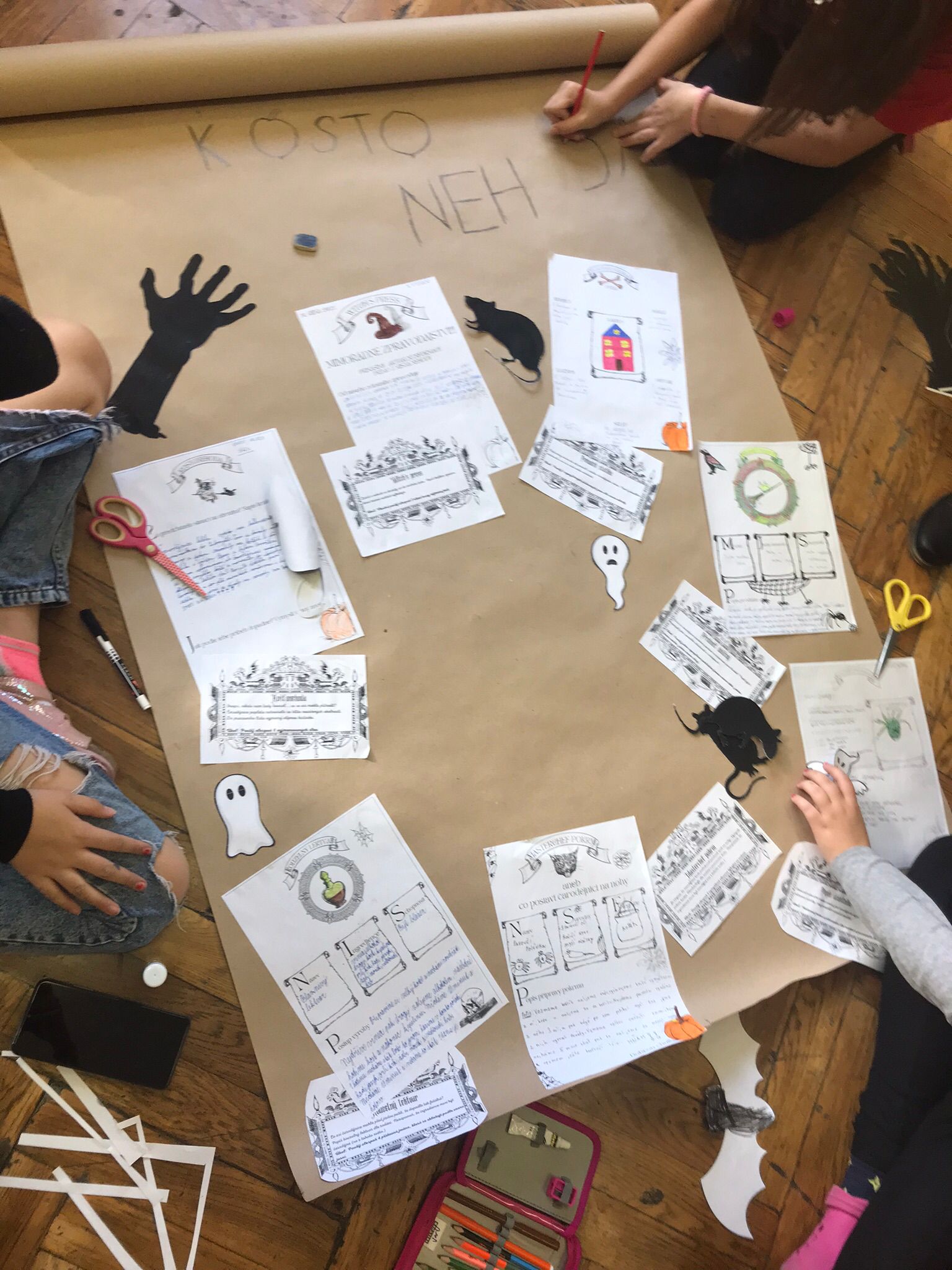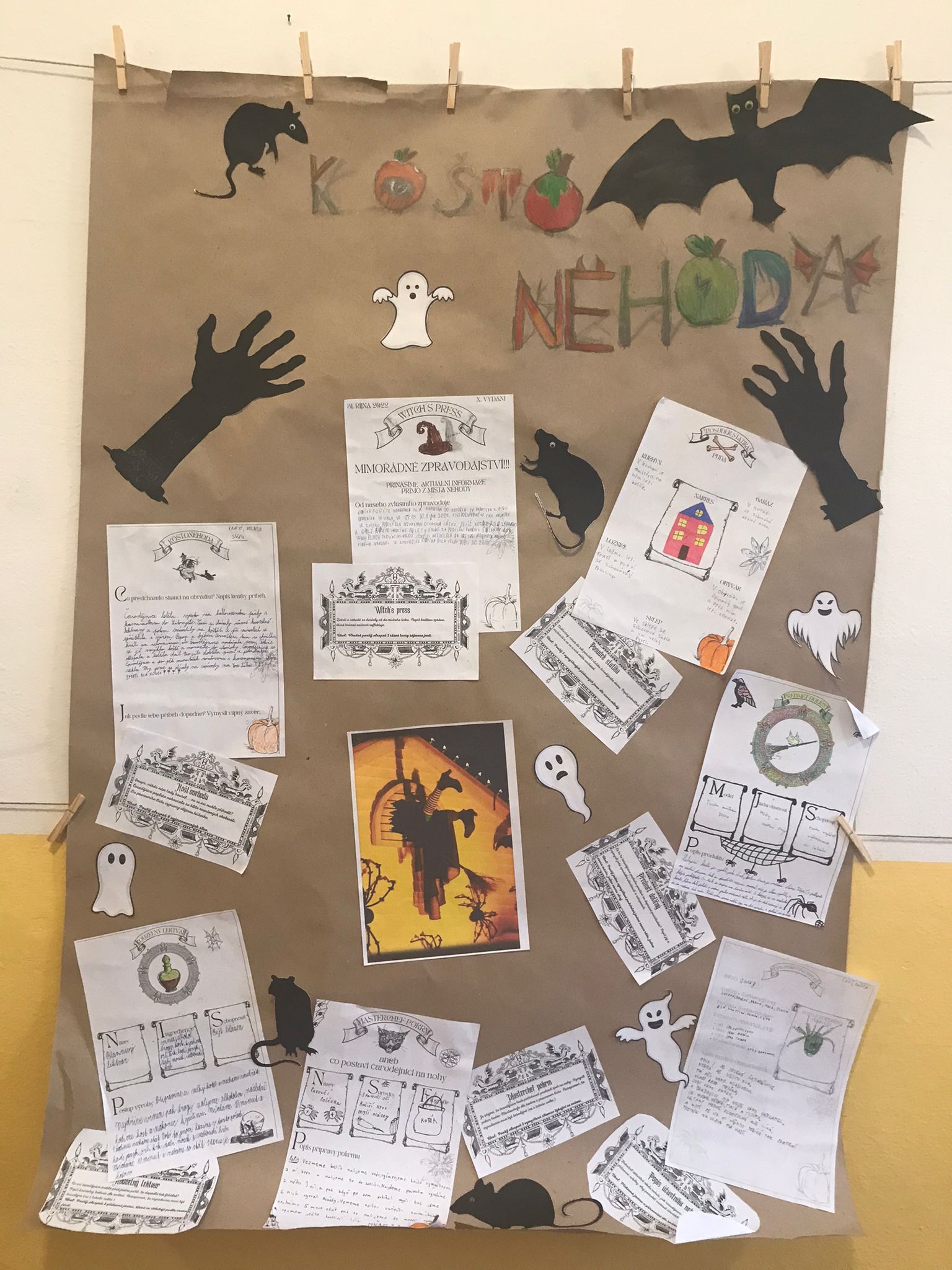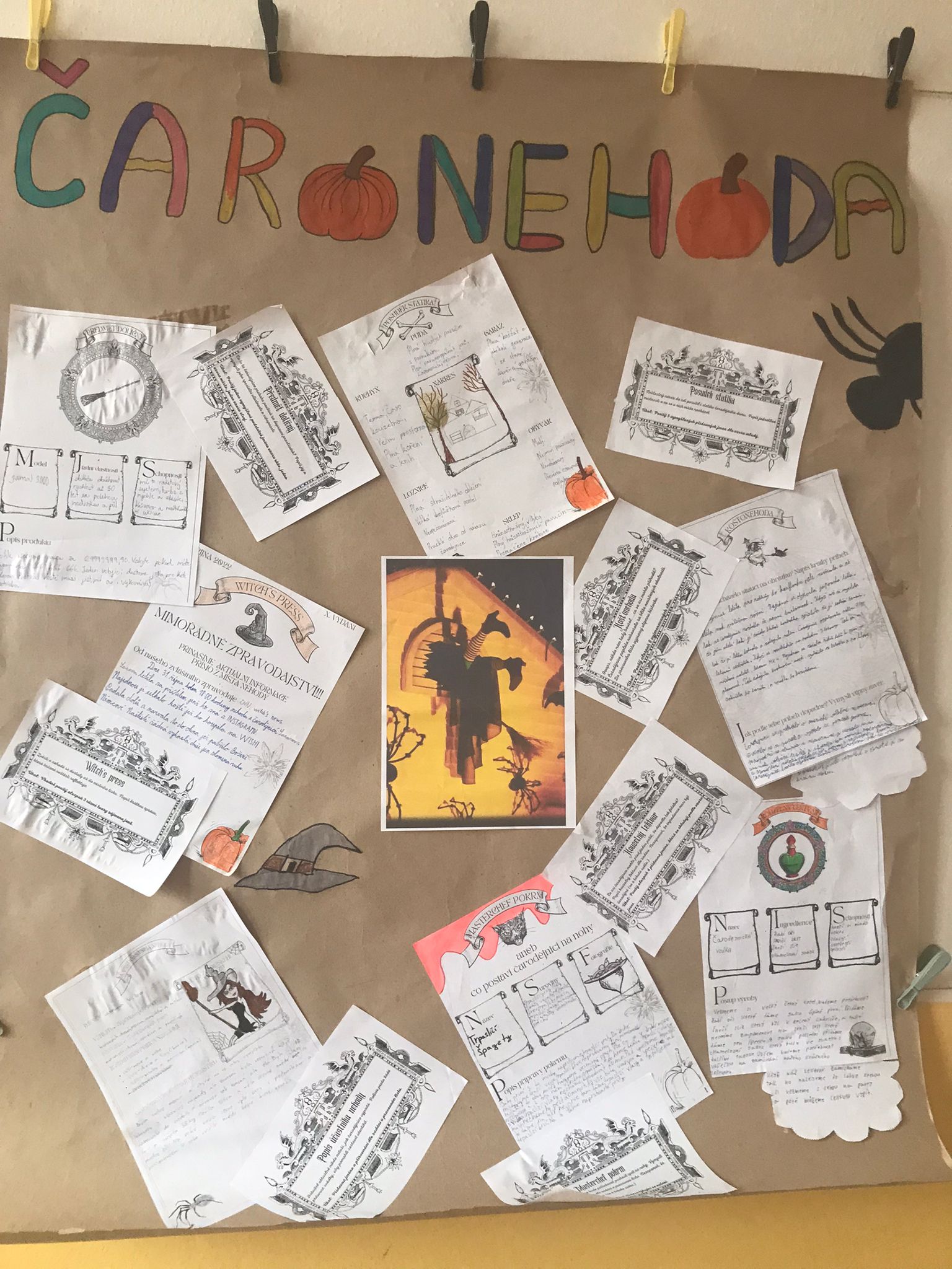 Co se asi tak mohlo přihodit čarodějnici, která o halloweenské noci nabourala na svém koštěti do zdi? Touto otázkou se zabývali žáci šestých, sedmých a osmého ročníku. Ve skupinách tvořili celistvý projekt, ve kterém měli událost zachycenou na fotografii blíže specifikovat. Jedni měli vymyslet příběh, který se mohl stát a jeho možný konec. Jiní měli čarodějnici charakterizovat, další popsat lektvar, který mohla před svou cestou požít, někteří zase pokrm, který by ji mohl postavit na nohy. Slohové úlohy měly také svůj specifický úkol mluvnický – použít vyjmenovaná slova, vhodná přídavná jména apod. Věříme, že netradiční aktivity žáky oslovily a že se podobným projektům budeme moci v budoucnosti věnovat častěji. Práce jsou k vidění na chodbách školy.