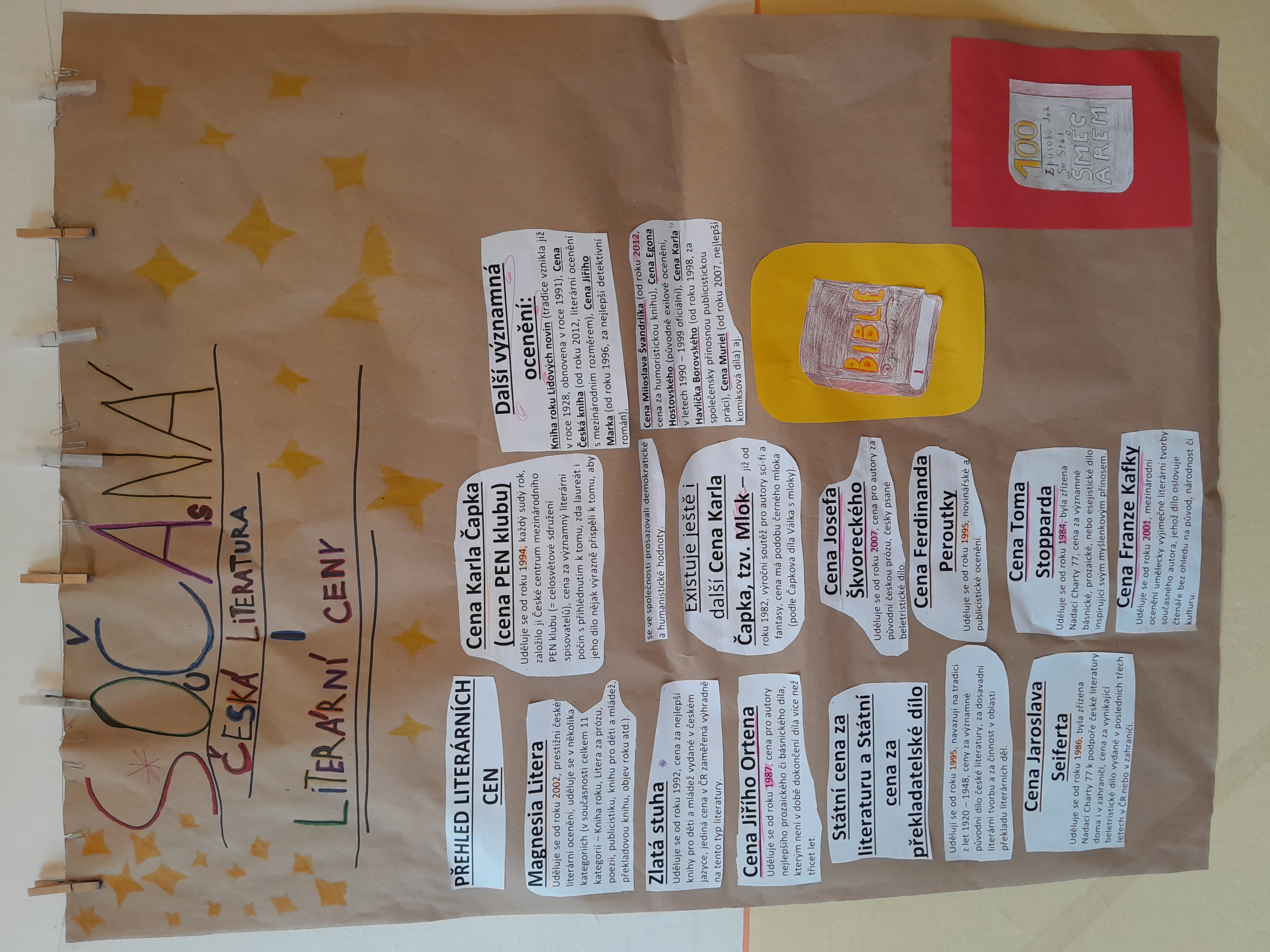 Žáci 8. A zpracovali na toto téma v rámci hodin literatury projekt, tvořili ve 3 skupinách, vyhledávali informace, třídili je a vyhodnocovali. Výsledek jejich snažení najdete vedle 9. B.