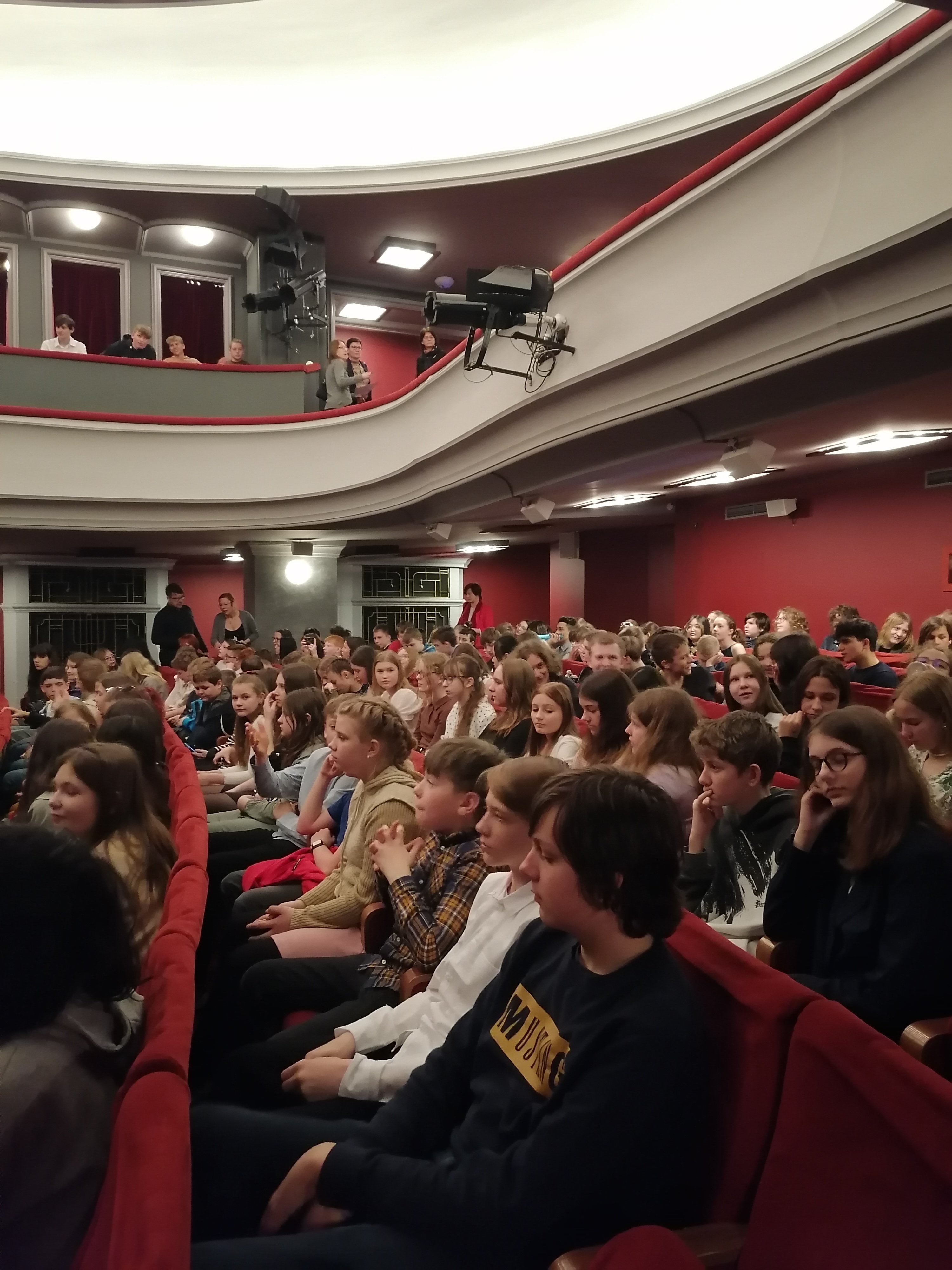 Při závěrečné děkovačce se někteří naši žáci spontánně zvedli ze sedaček a věnovali aktérům standing ovation. Plni dojmů pak ještě o představení diskutovali cestou k autobusu, a i při zpáteční cestě domů.