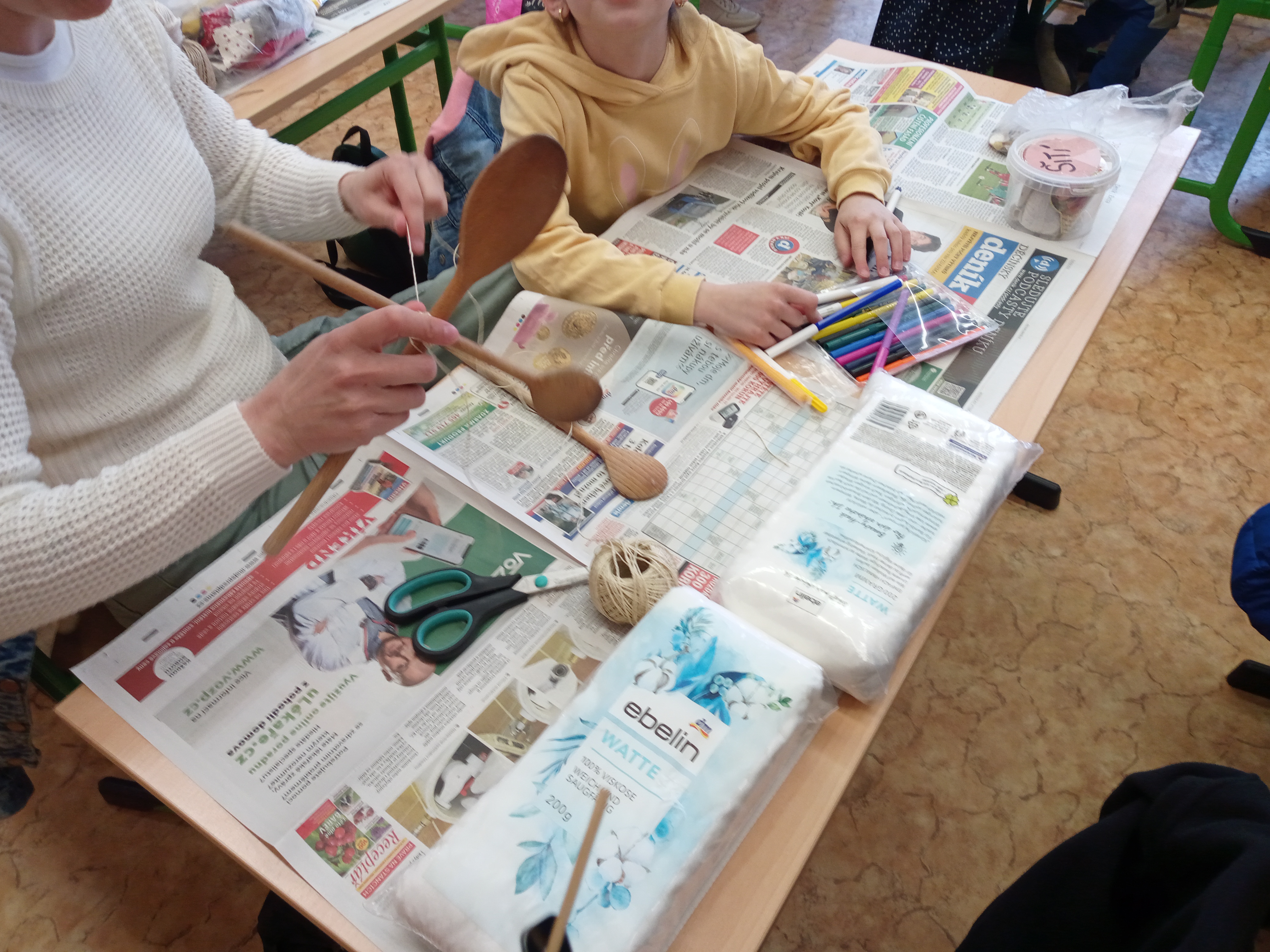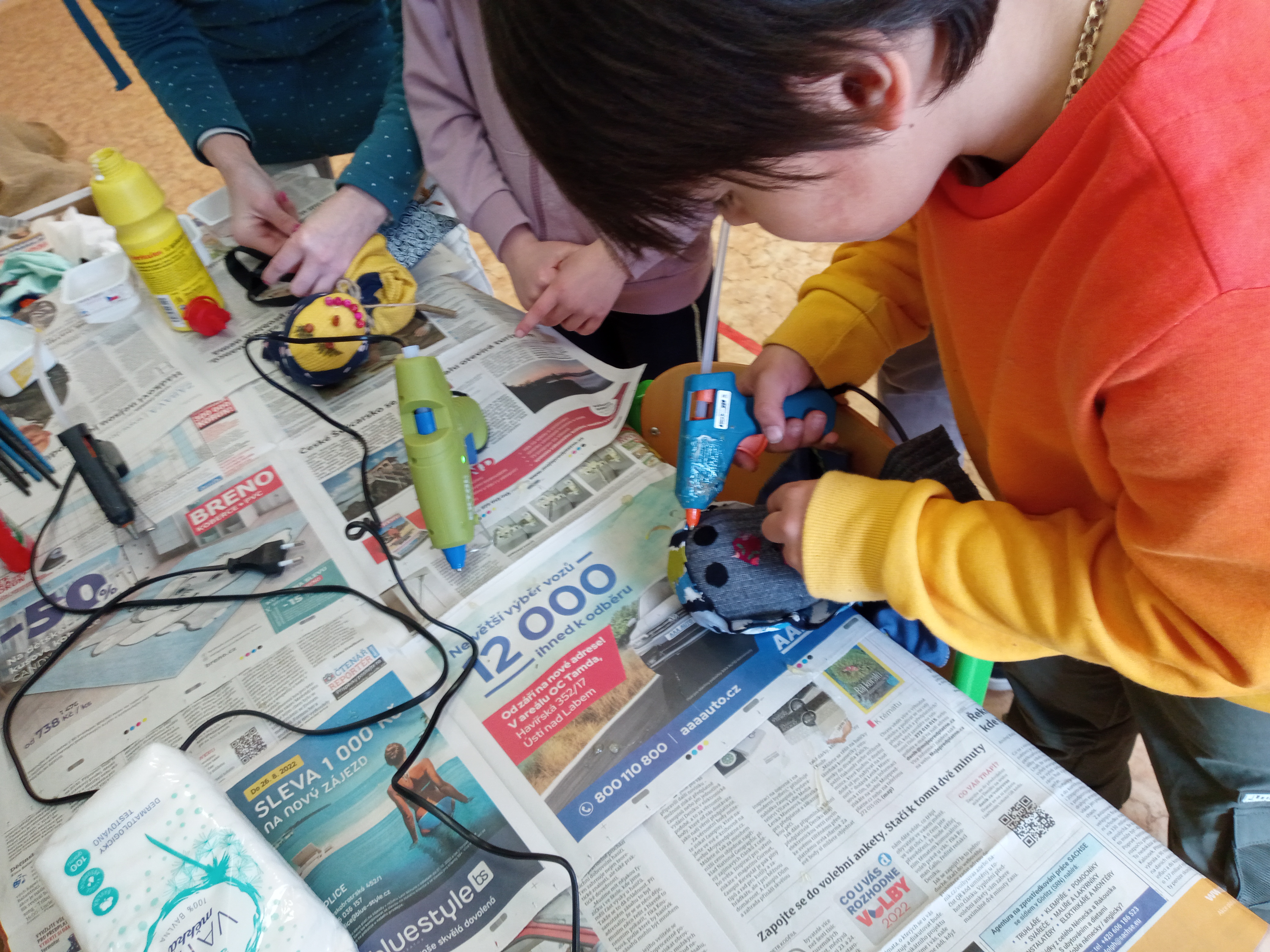 Dne 25. dubna se na naší škole konalo odpolední tvoření pro druháčky a jejich rodiče. Úkolem bylo vyrobit v „rodinném týmu" čarodějnici. Na jejich výrobu byl použit odpadový a zbytkový materiál - textil, zbytky látky, provázky, vlny,