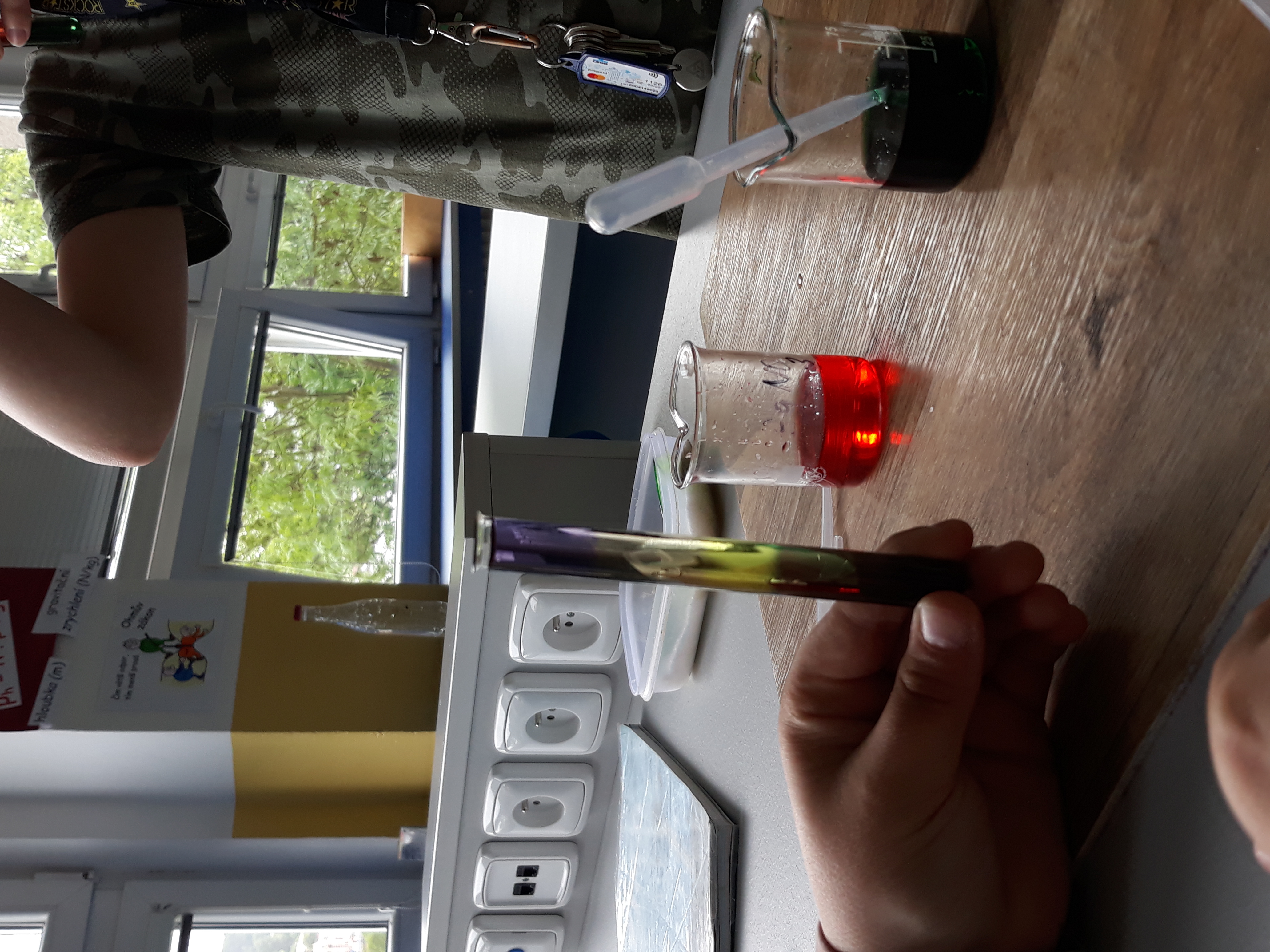 A je to tu. Minulý týden jsme začali probírat hustotu. Aby si to žáci uměli co nejlépe představit, šli jsme na to prakticky. Namíchali jsme si několik barevných roztoků vody a cukru. V každém bylo jiné množství cukru a tedy i jiná hustota.