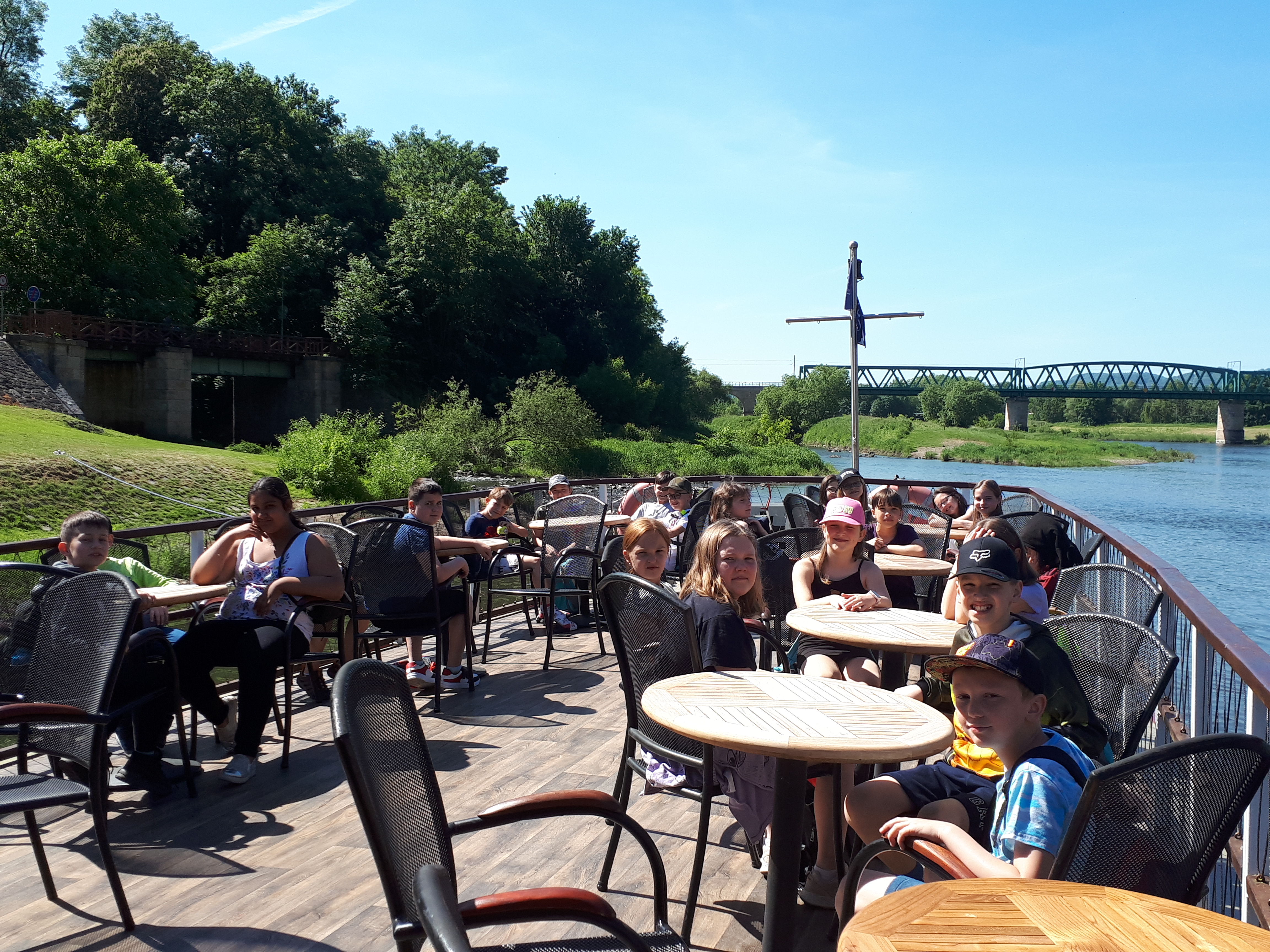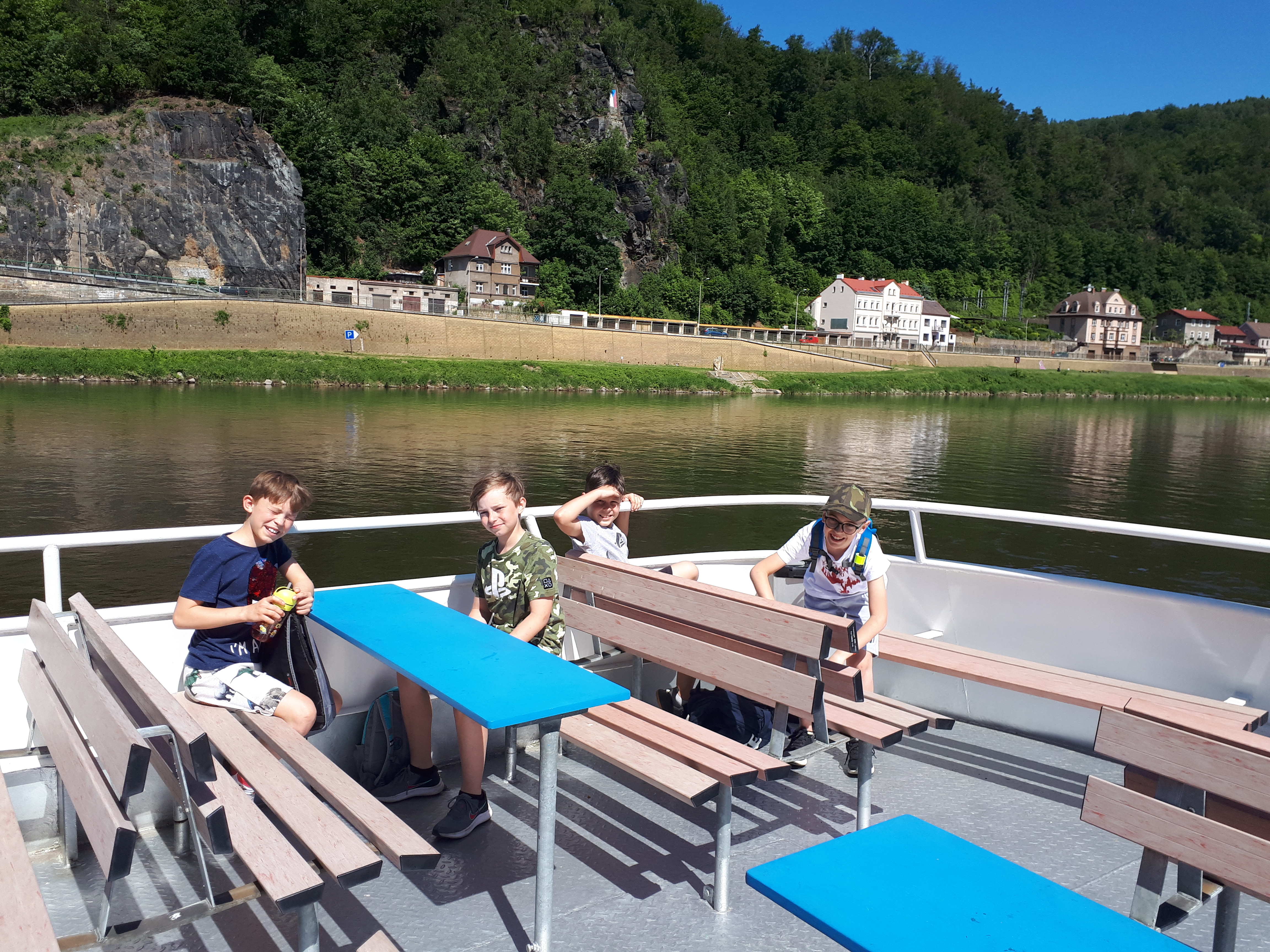 Labská plavební společnost Děčín si pro školy v Děčíně, v rámci DĚTSKÉHO DNE, připravila program "Exkurze na parníku Labe a projížďku lodí Bohemia". Akce se zúčastnilo několik tříd z naší školy, mimo jiné i třída 4.A. Děti si prohlédly parník Labe, zasoutěžili si a téměř hodinu trvala projížďka na parníku Bohemia. Myslím, a mohu říci za všechny, že se tato akce pro děti velmi povedla. Závěrem celého dětského dopoledne byla návštěva "Občerstvení u Franze Josefa", kterou si děti užily na 1000% 😀