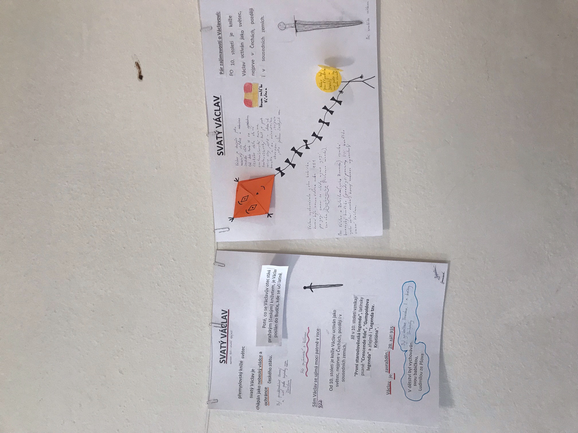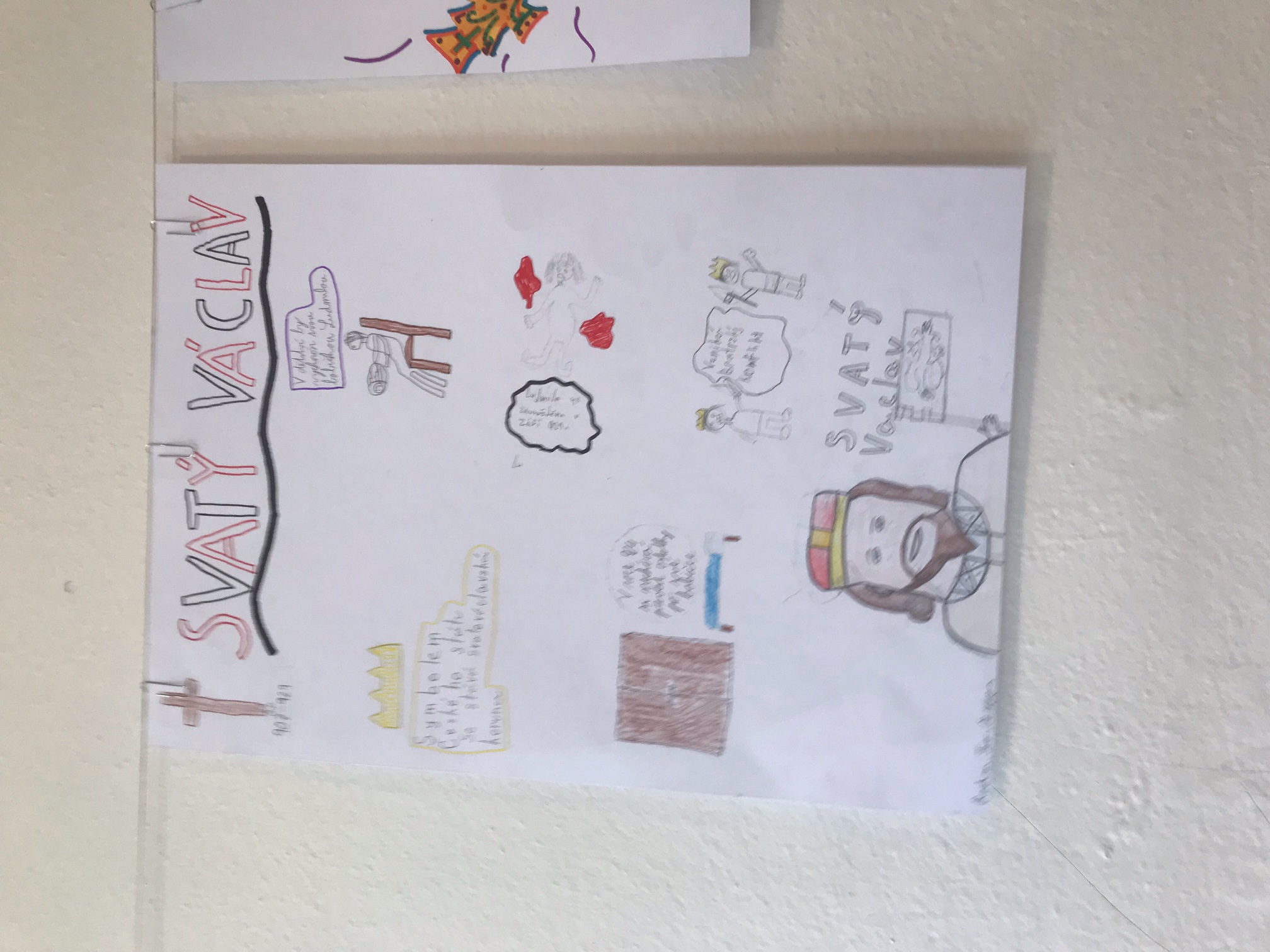 Práce žáků jsou vystaveny vedle jejich třídy.