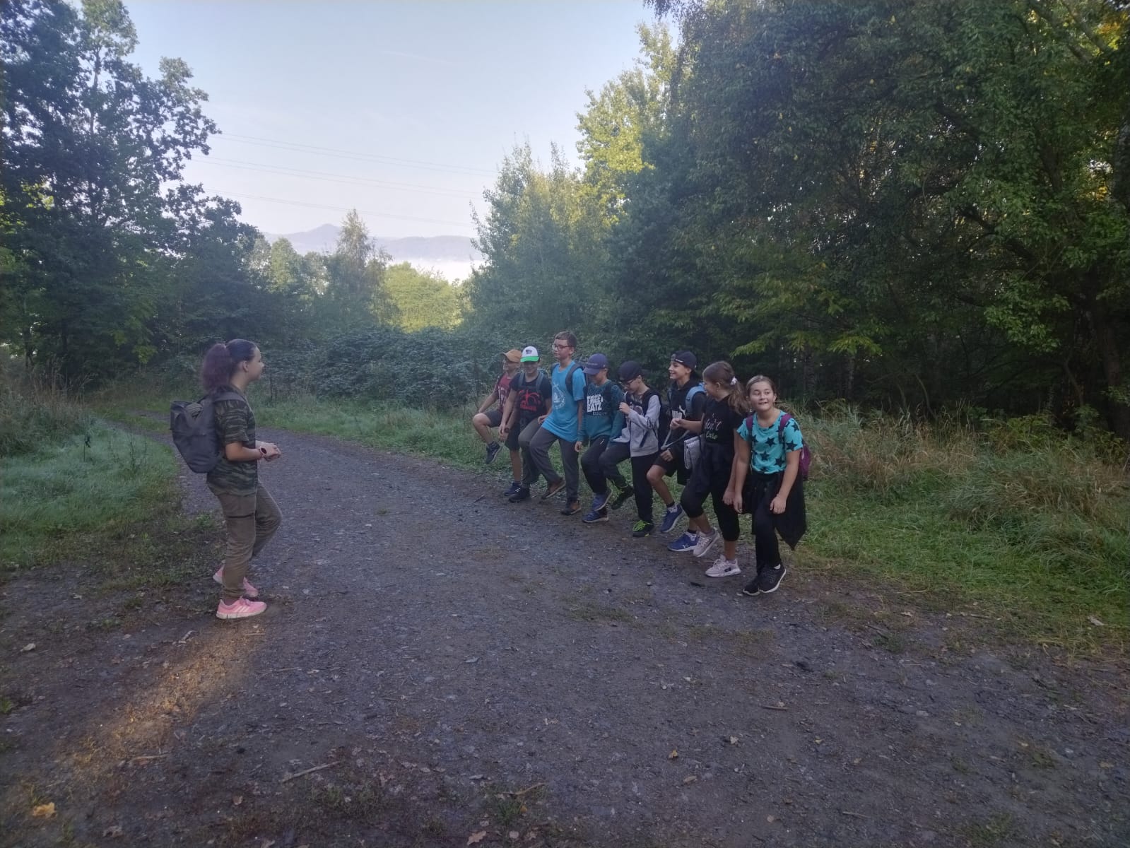 Seznámení se svojí novou třídou pojala paní učitelka celkem netradičně a třída 5.B se tento den proměnila ve vojenskou jednotku a žáci si zkusili bojový přesun na nedalekou rozhlednu Chlum.