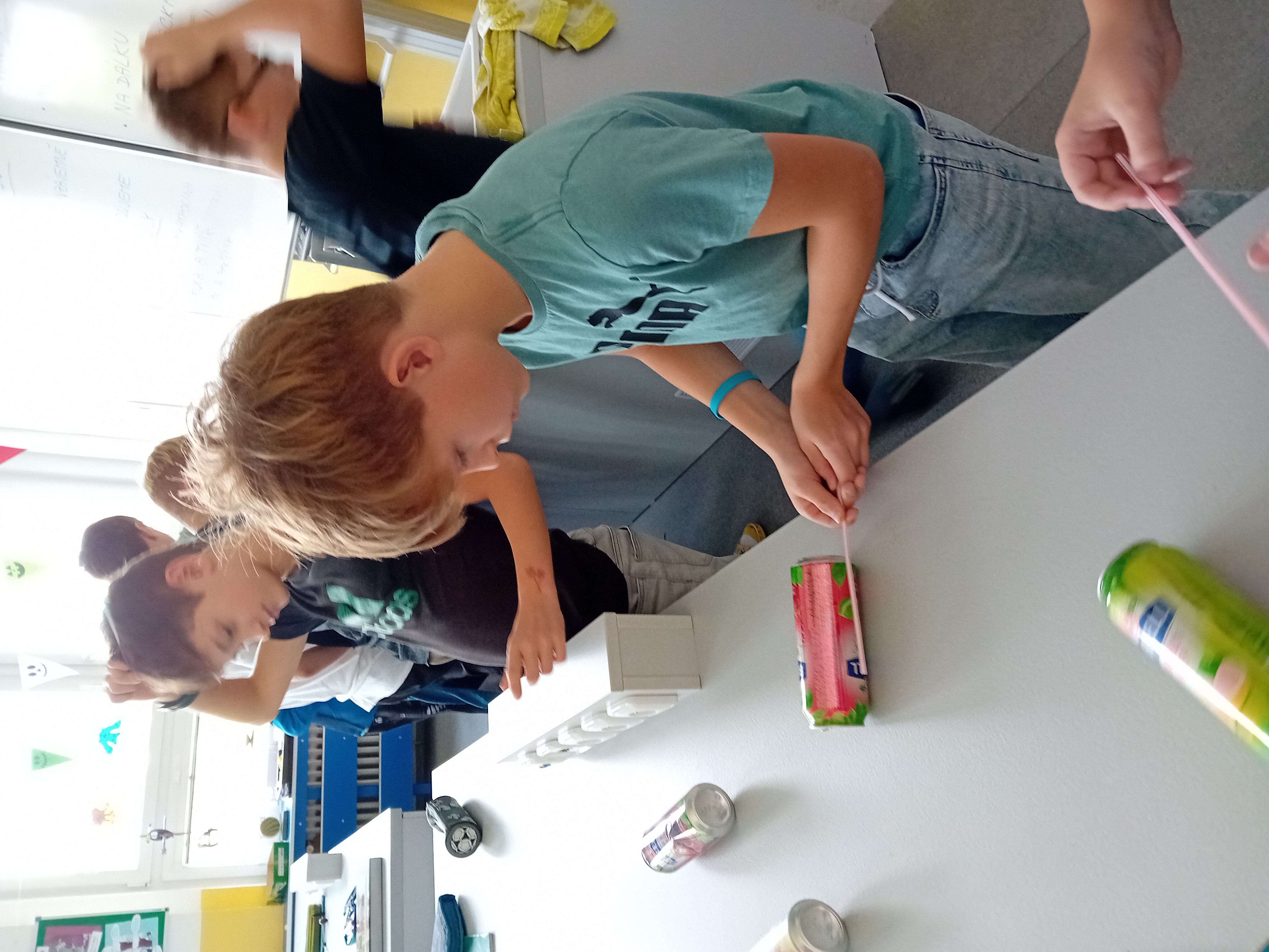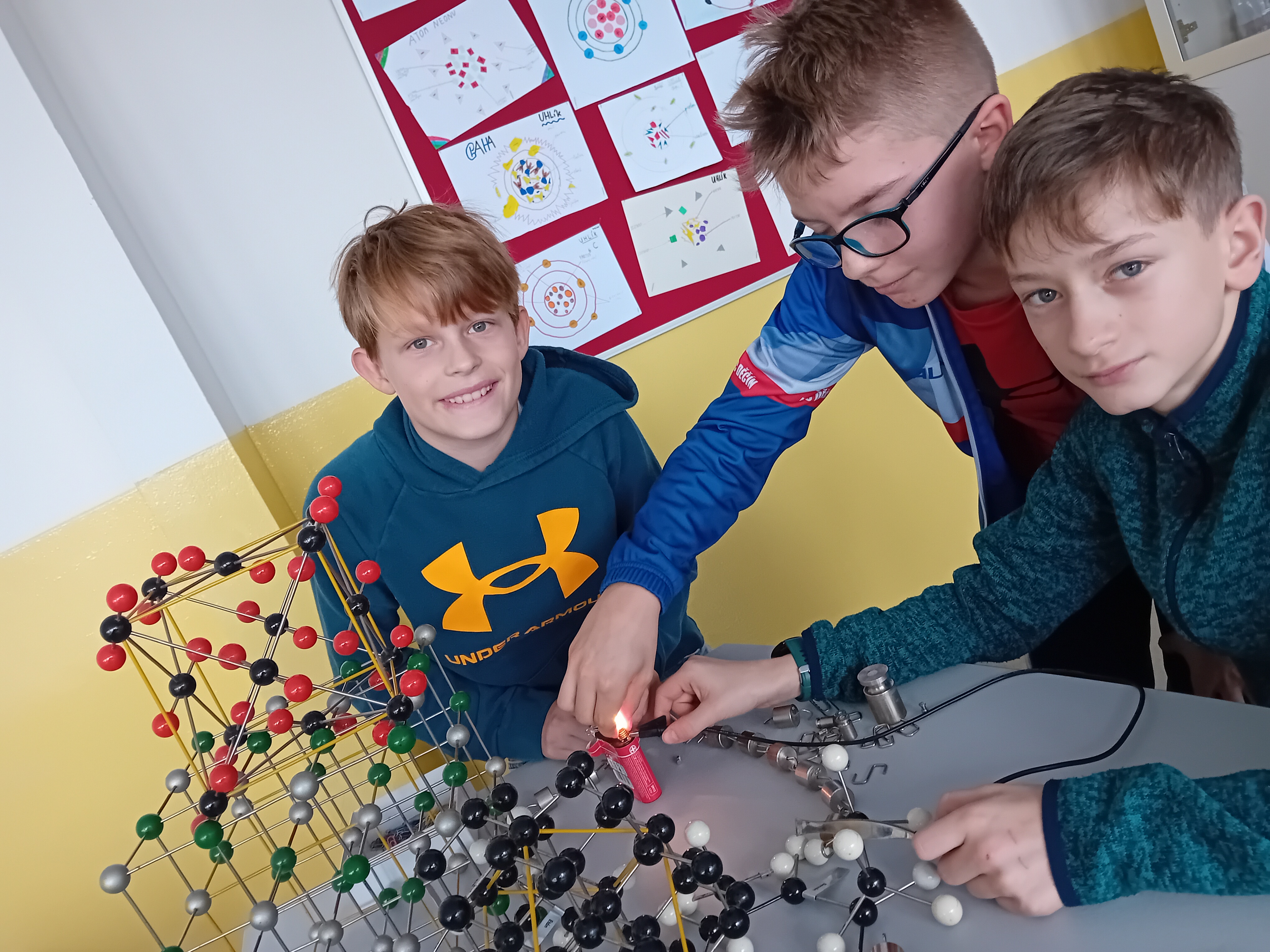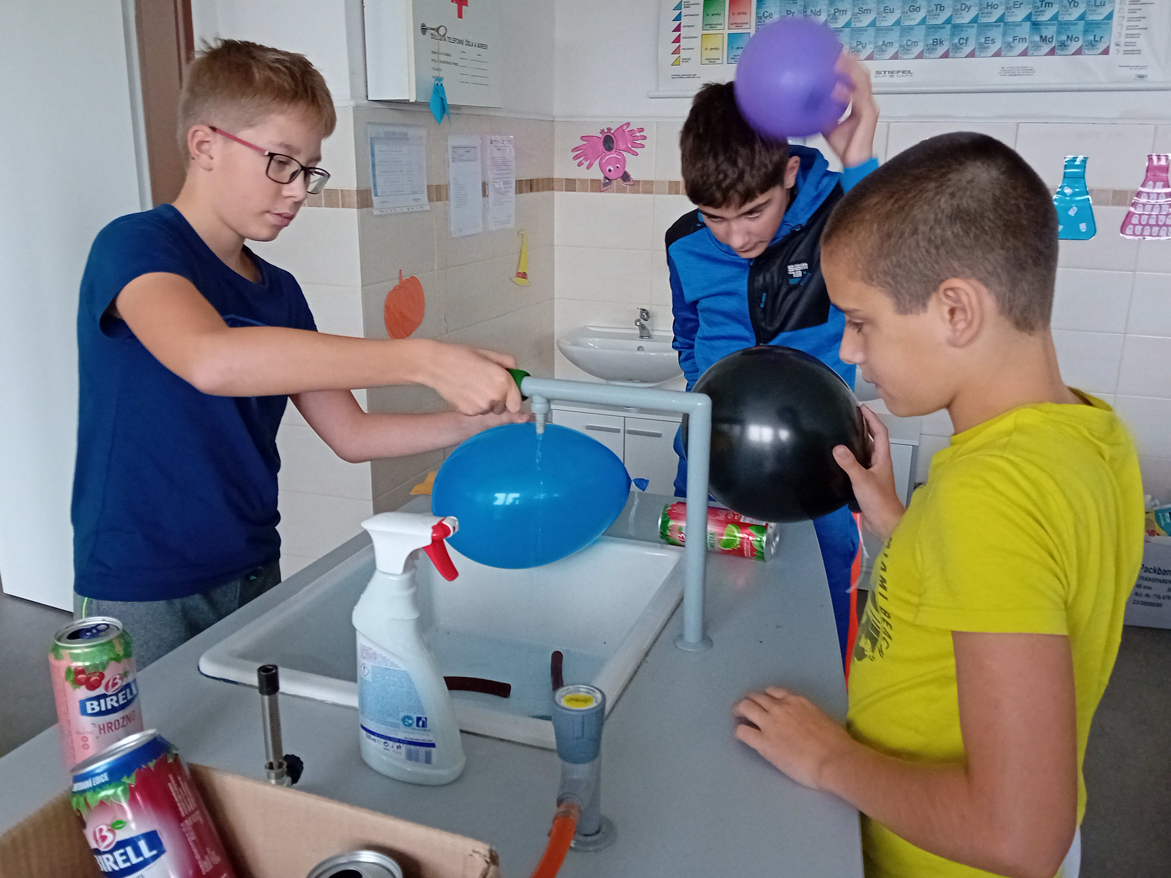 Vlastnosti pevných, kapalných a plynných látek si vyzkoušeli také důkladně. Pomocí stříkaček zjistili, které látky jsou stlačitelné, s vodováhou přeměřili všechna okna a nástěnky ve třídě. Uvědomili si, že plyny jsou možná neviditelné, ale to neznamená, že neexistují, nejsou hořlavé nebo naopak neumí uhasit oheň.
