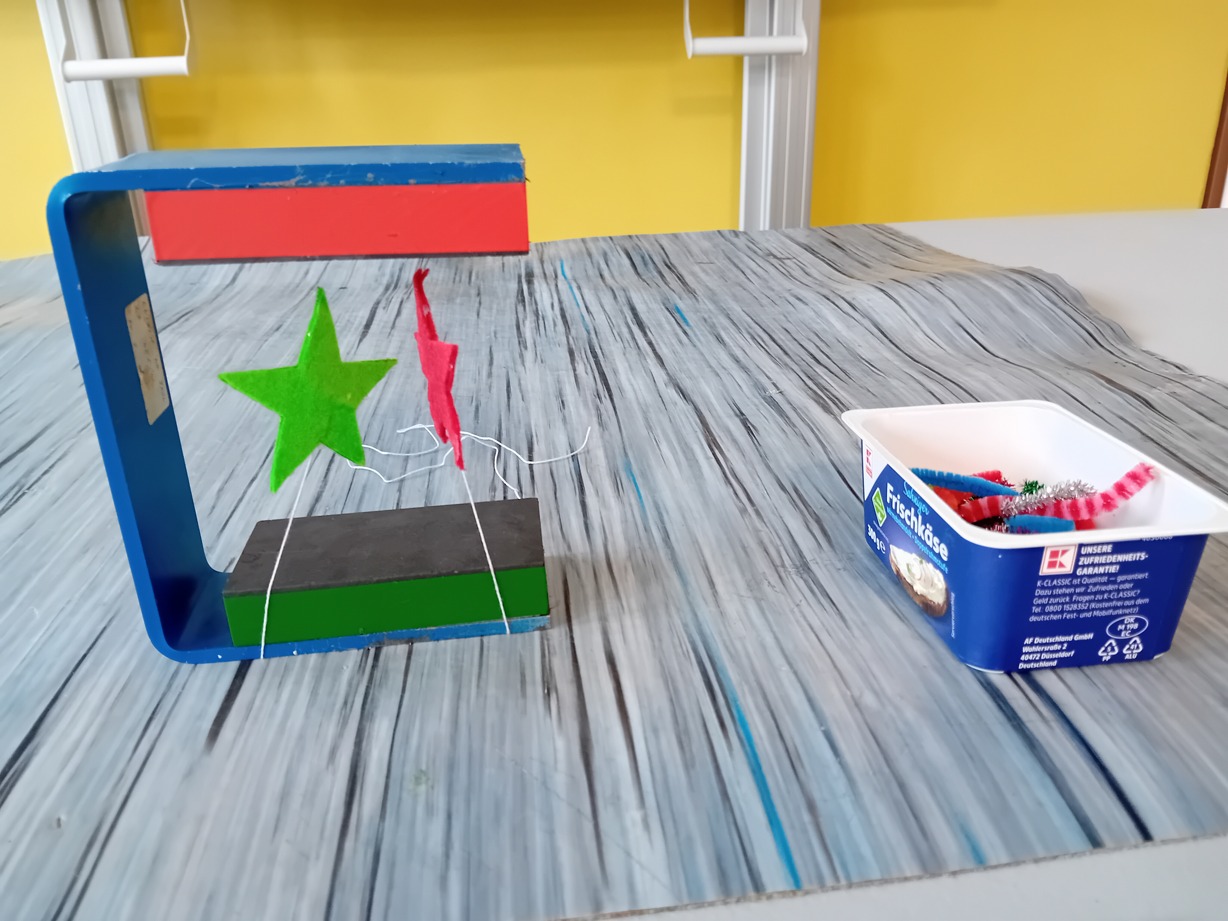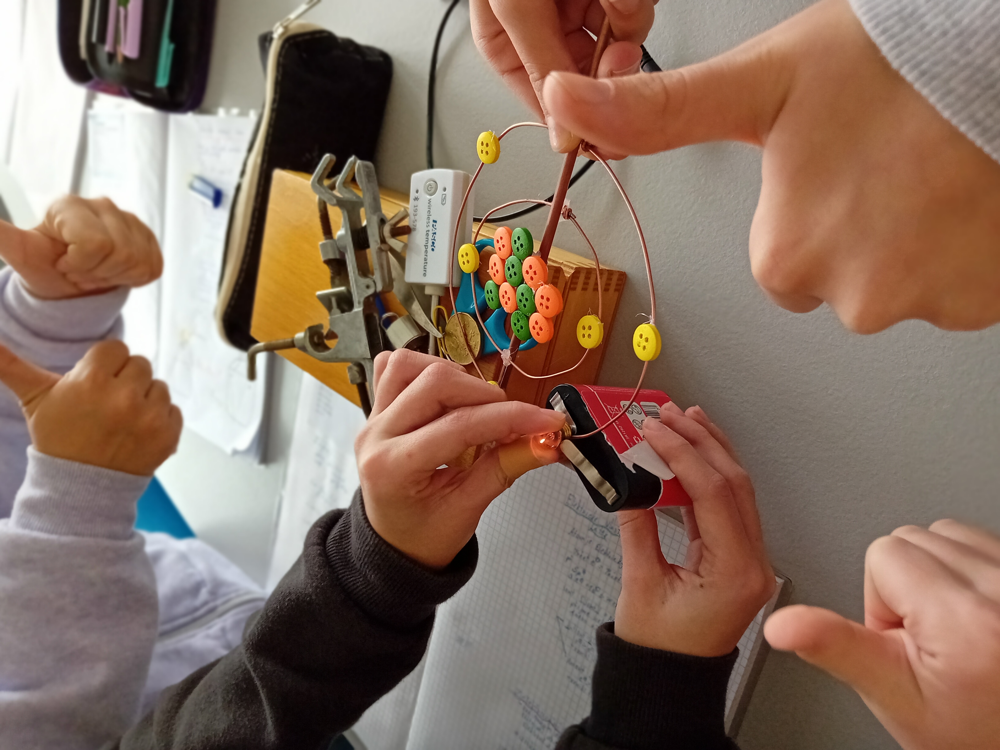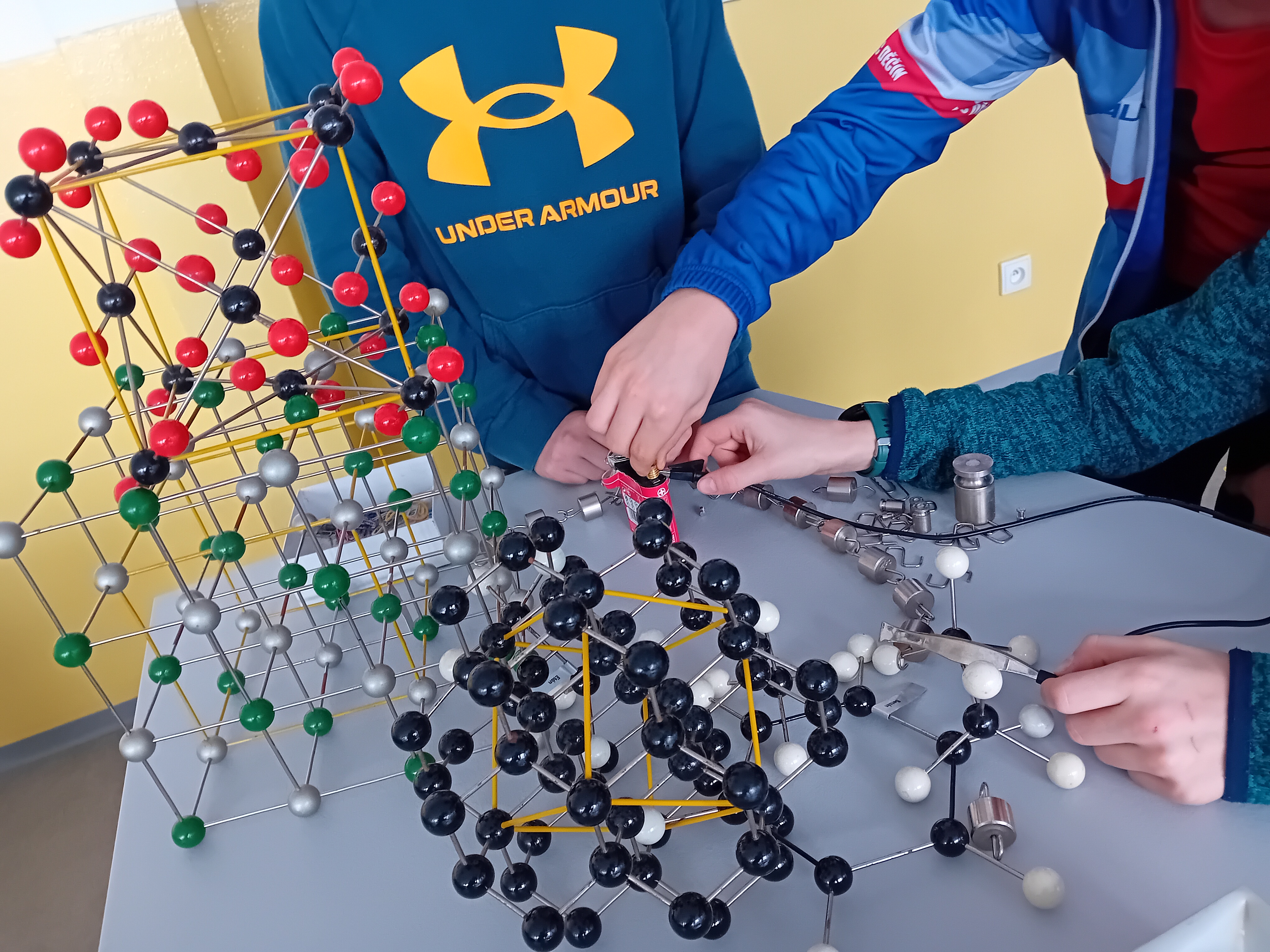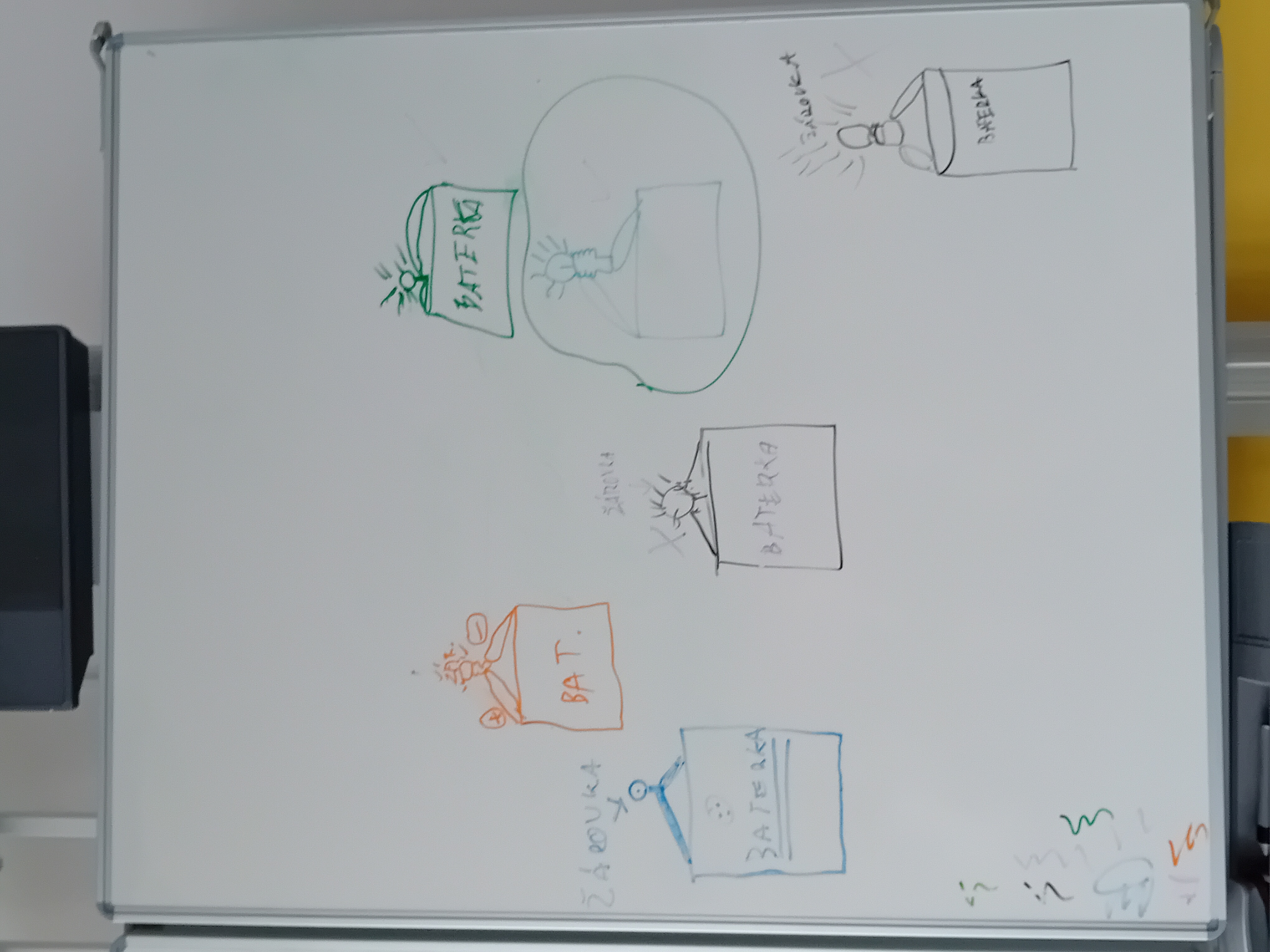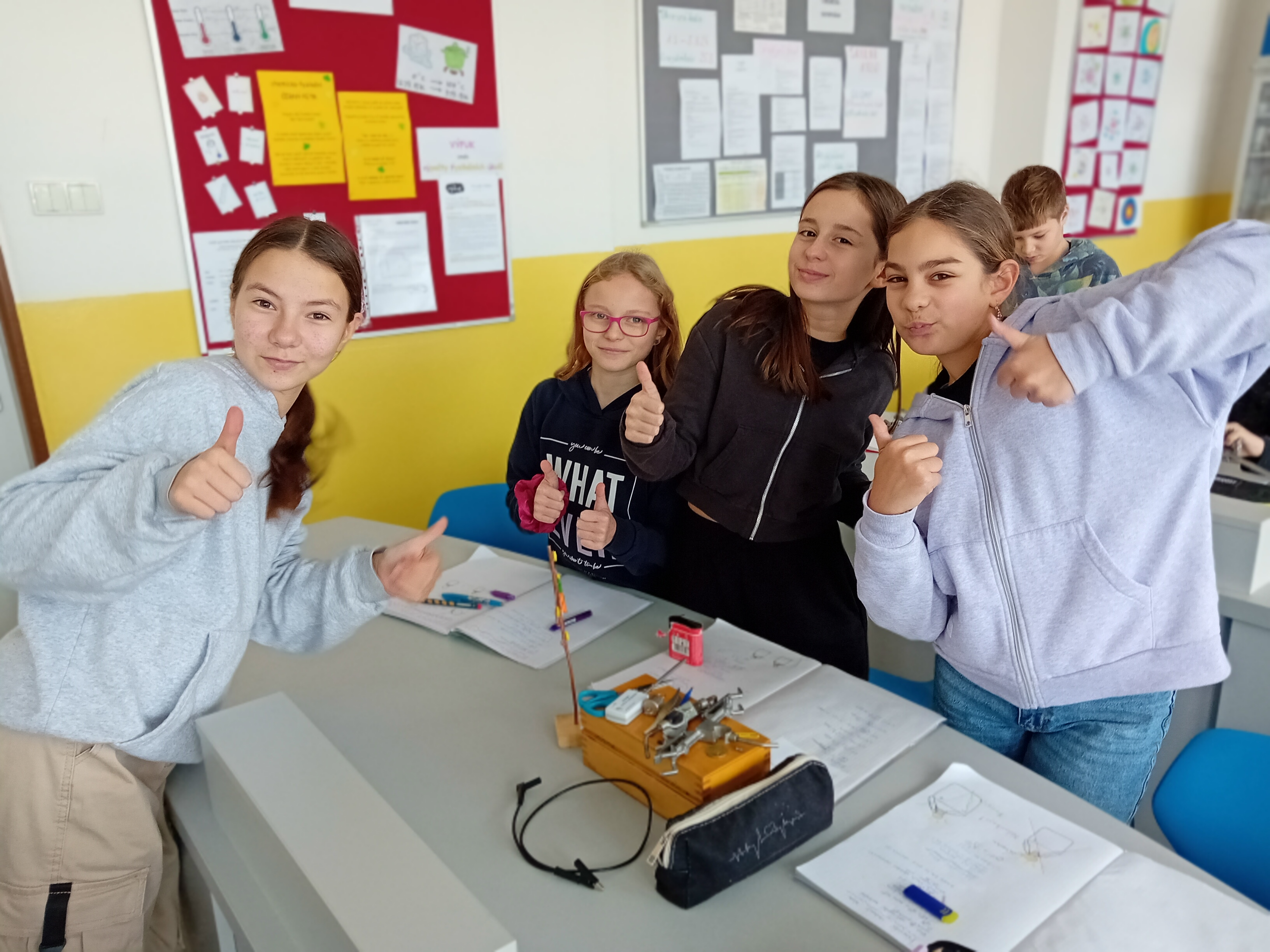 A pak už stačí najít kolem sebe co nejvíce předmětů, které vedou proud. Prozatimní rekord je cca 40 ks kovových věcí, který vytvořili Matěj, Mára a Patrik ze 6.B.