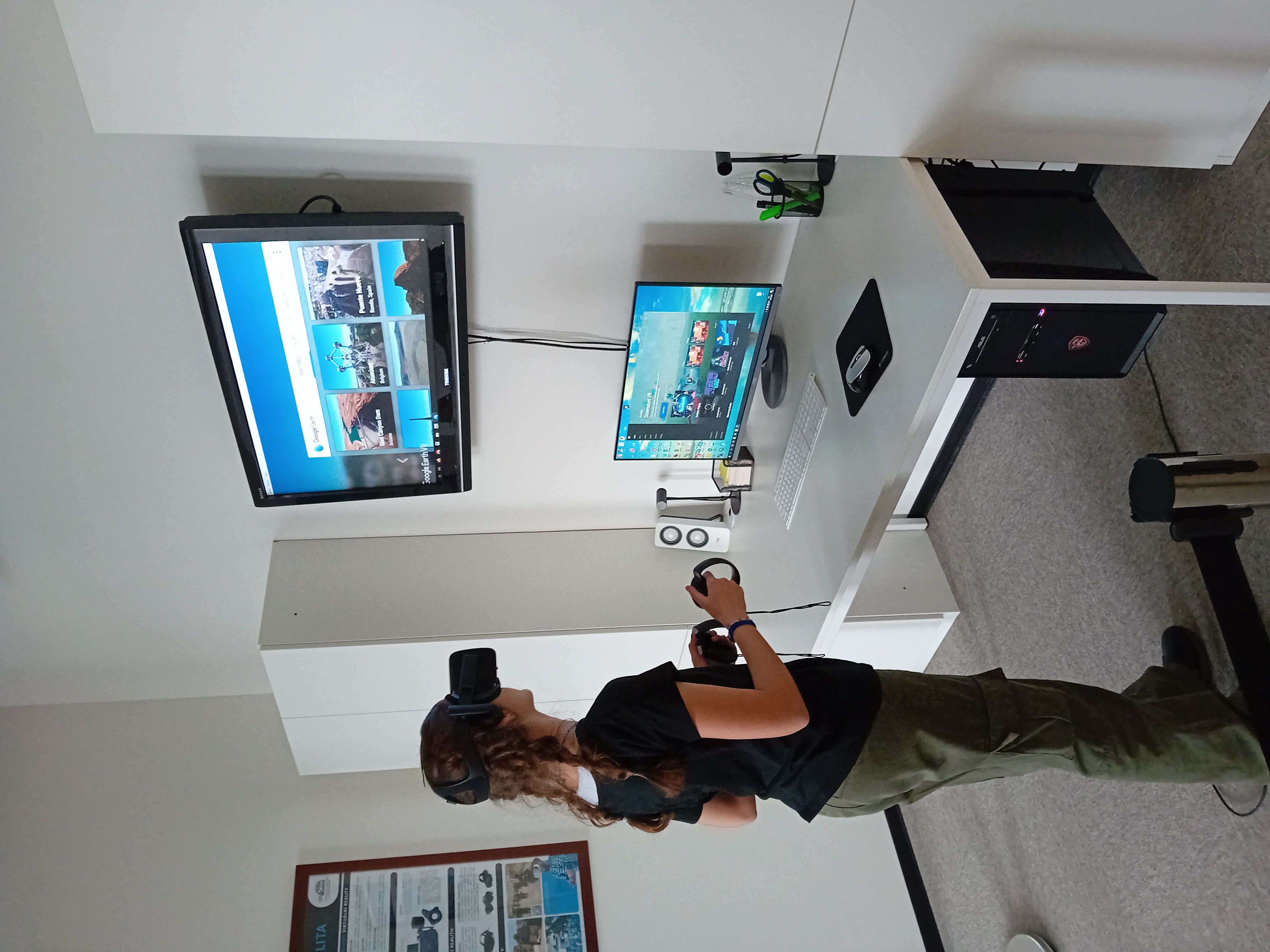 V centru virtuální reality si žáci prohlédli a vyzkoušeli několik moderních a velmi zajímavých stanovišť. Práci s termokamerou, hlukoměrem a nejrůznějšími mapovými aplikacemi. Seznámili se s 3D tiskem. Největšími favority se zcela jistě stalo cestování po světě prostřednictvím virtuální reality a Sandbox aneb "pískoviště", kde si každý mohl vymodelovat vlastní krajinu včetně vrstevnic.