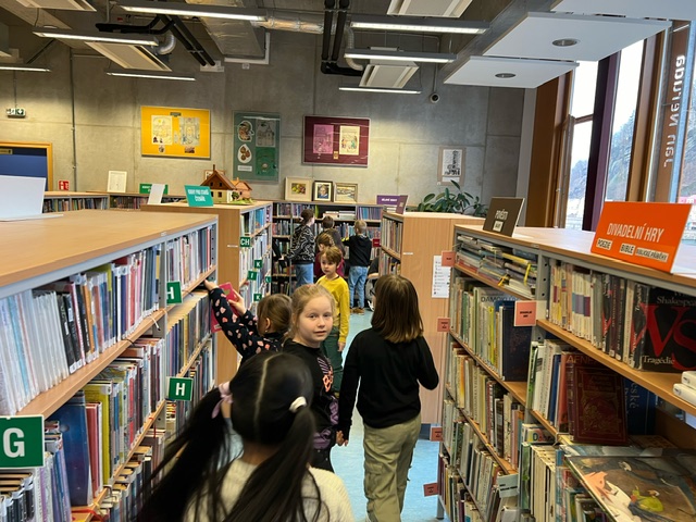 Paní knihovnice si připravila zajímavé povídání o historii knihovny a o českých pohádkách se zaměřením na tvorbu Boženy Němcové a Karla Jaromíra Erbena. Děti se dozvěděly zajímavosti o těchto spisovatelích, a hlavně o pohádkách, které napsali. Mezi regály si prolistovaly knihy, které je zaujaly a pokud mají registraci, mohou si je i zapůjčit.