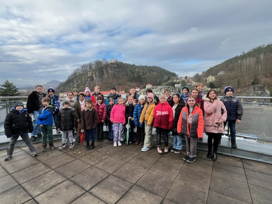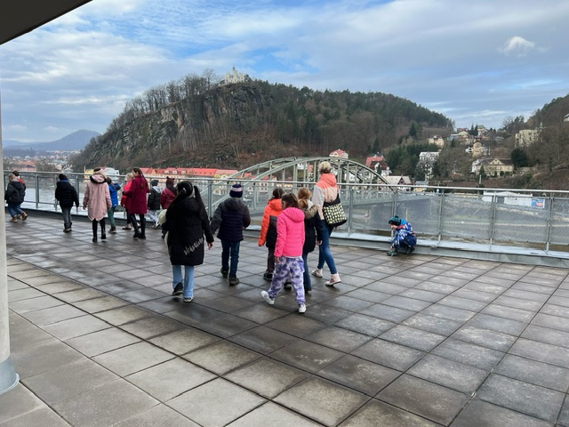 Hezkým zakončením návštěvy byla prohlídka prostor knihovny od suterénu přes knižní oddělení, učebny a archiv vyřazených knih, až po krásný výhled z ochozu v horním patře budovy na Děčínský zámek, řeku Labe, Pastýřskou stěnu a část města.