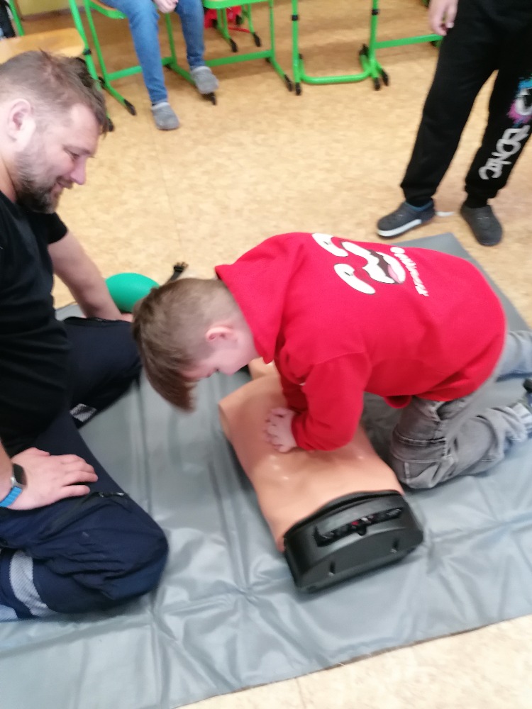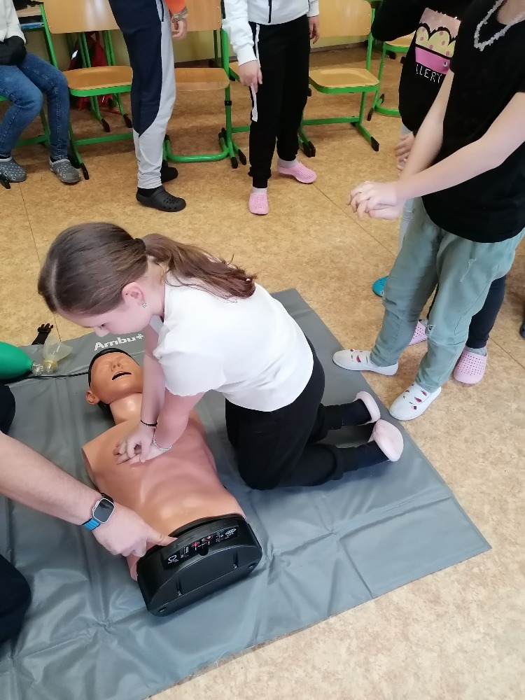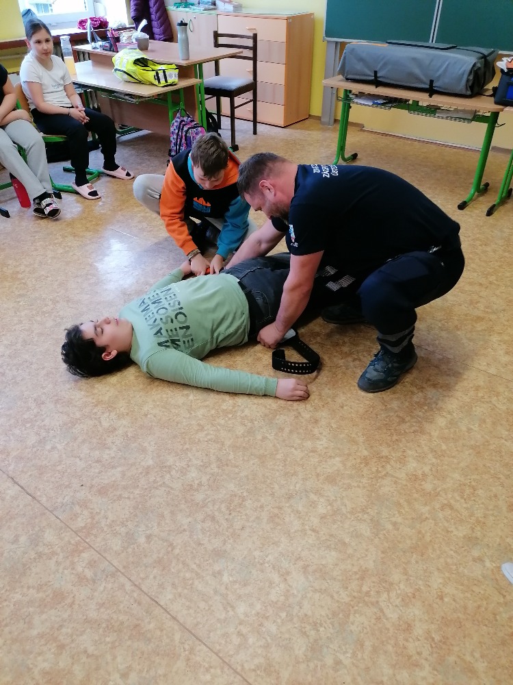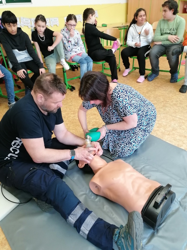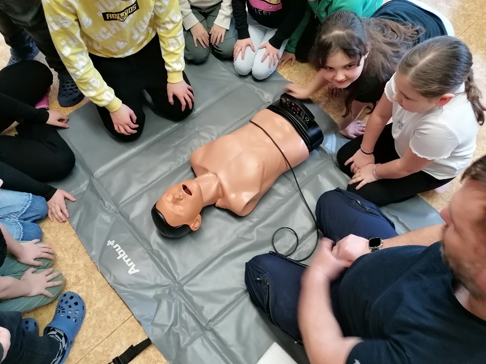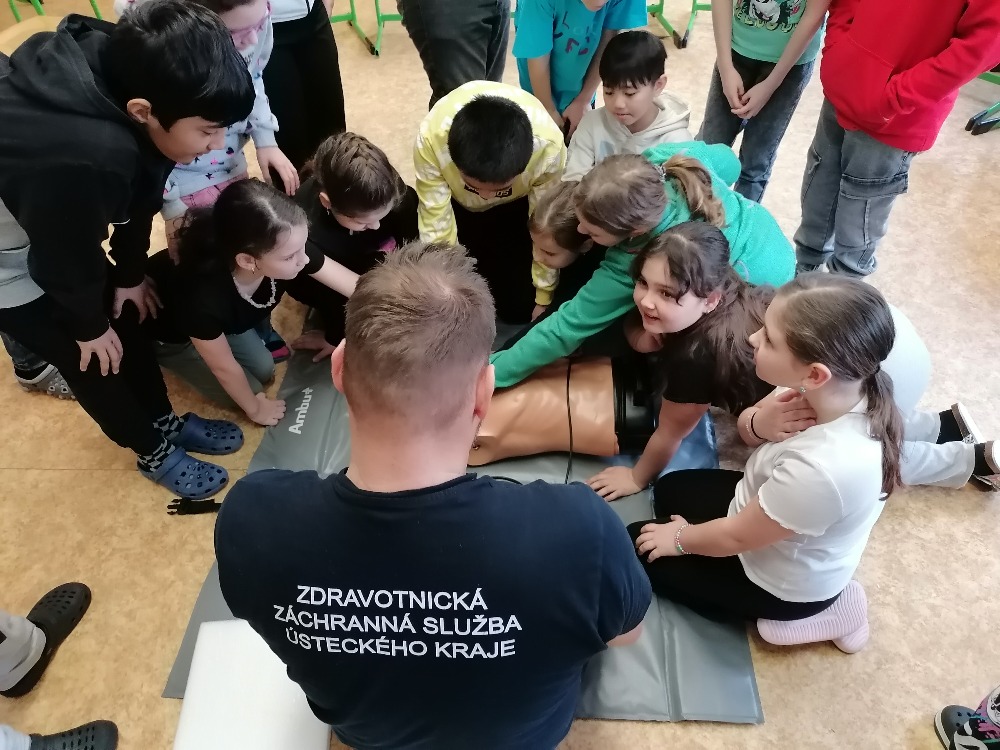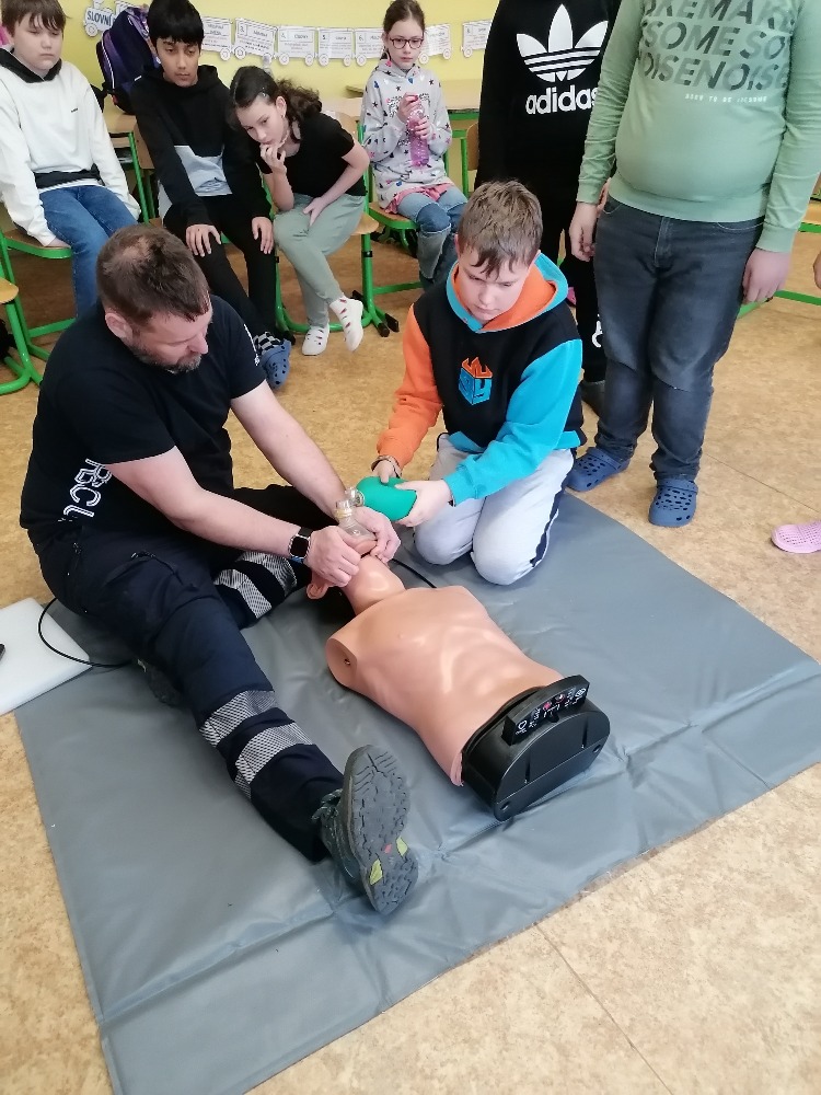 Všechny děti si mohly vyzkoušet umělé dýchaní a masáž srdce, obvázat spolužákovi zlomenou ruku a jak správně použít škrtidlo. Dále se žáci dozvěděli důležité informace k transportu zraněného a jak správně postupovat při volání záchranné služby. Při této příležitosti si žáci zopakovali všechna důležitá telefonní čísla.