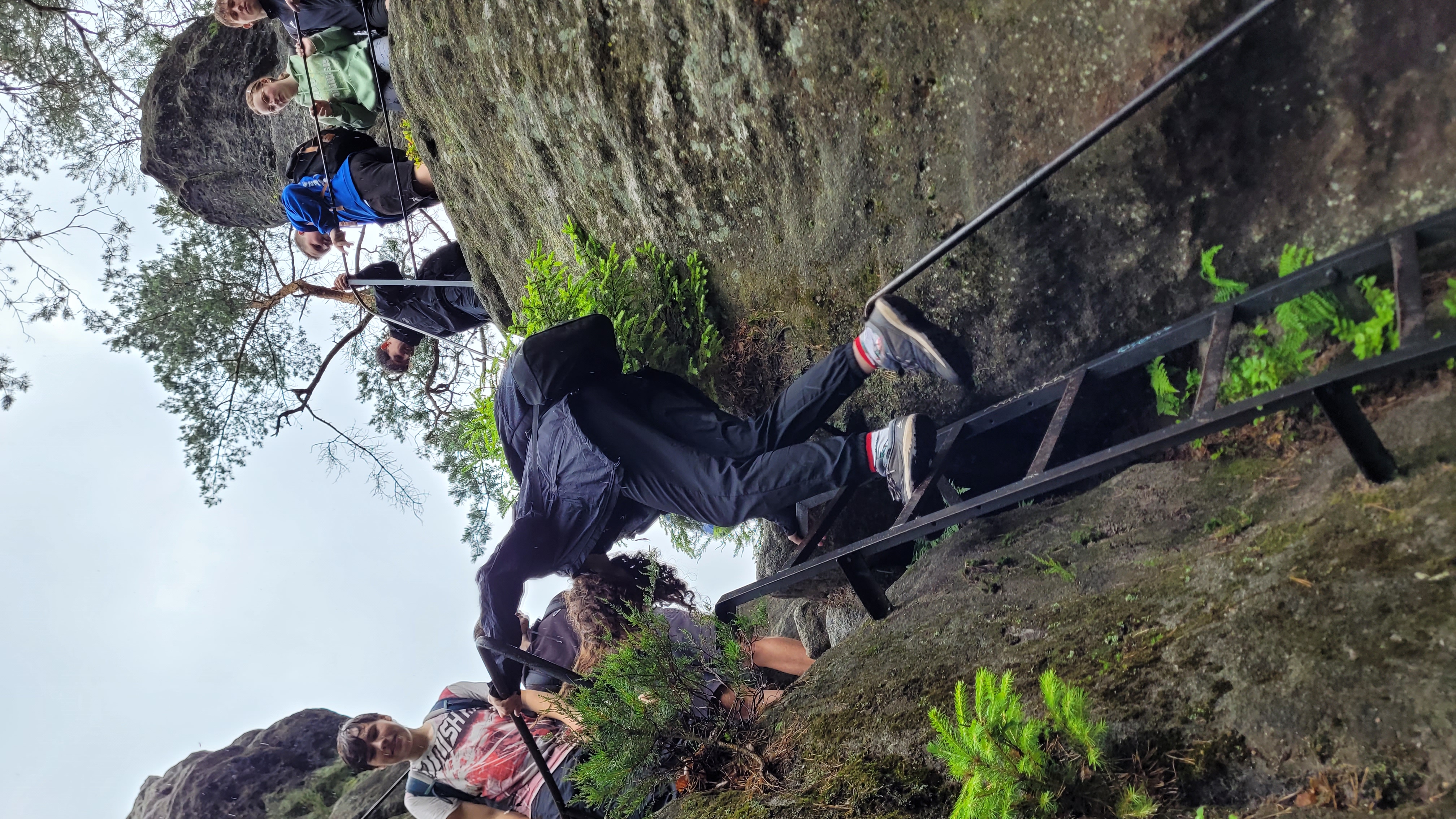 Po příjezdu v pozdní odpoledne a ubytování dětí následoval večerní program spojený s opékáním buřtů. V sobotu jsme se vypravili na výlet v okolí Krásné Lípy, během kterého nás stihl déšť, který naštěstí v druhé polovině naší trasy ustal. Děti si užily krajinu NP České Švýcarsko a CHKO Lužické hory, prolézaly mezi pískovcovými skalami, a i přes nepřízeň počasí všichni cca 12 km dlouhou trasu zvládli a kluci využili možnost zchladit se v rybníčku. Večer pak byl spojený s hraním her a volnou zábavou. Neděle byla pak ve znamení balení a úklidu a návratu zpět do Děčína.