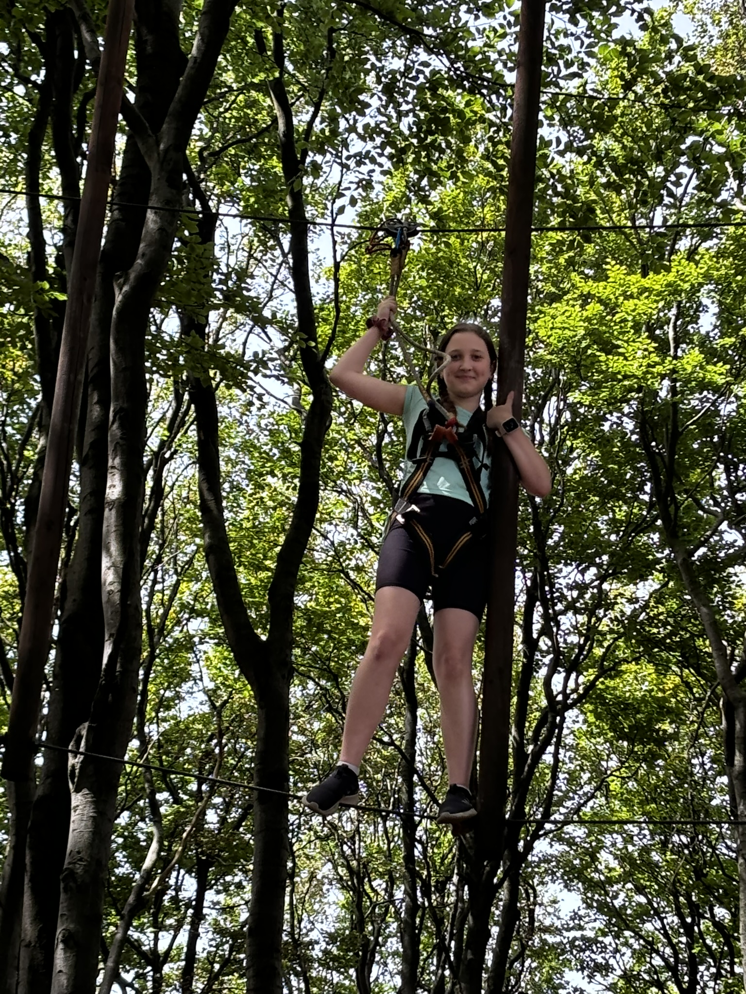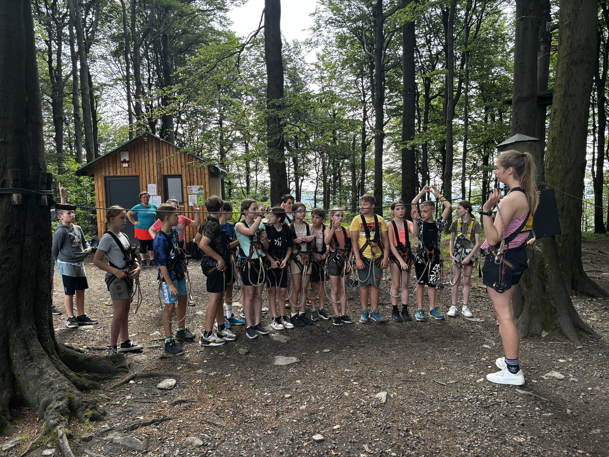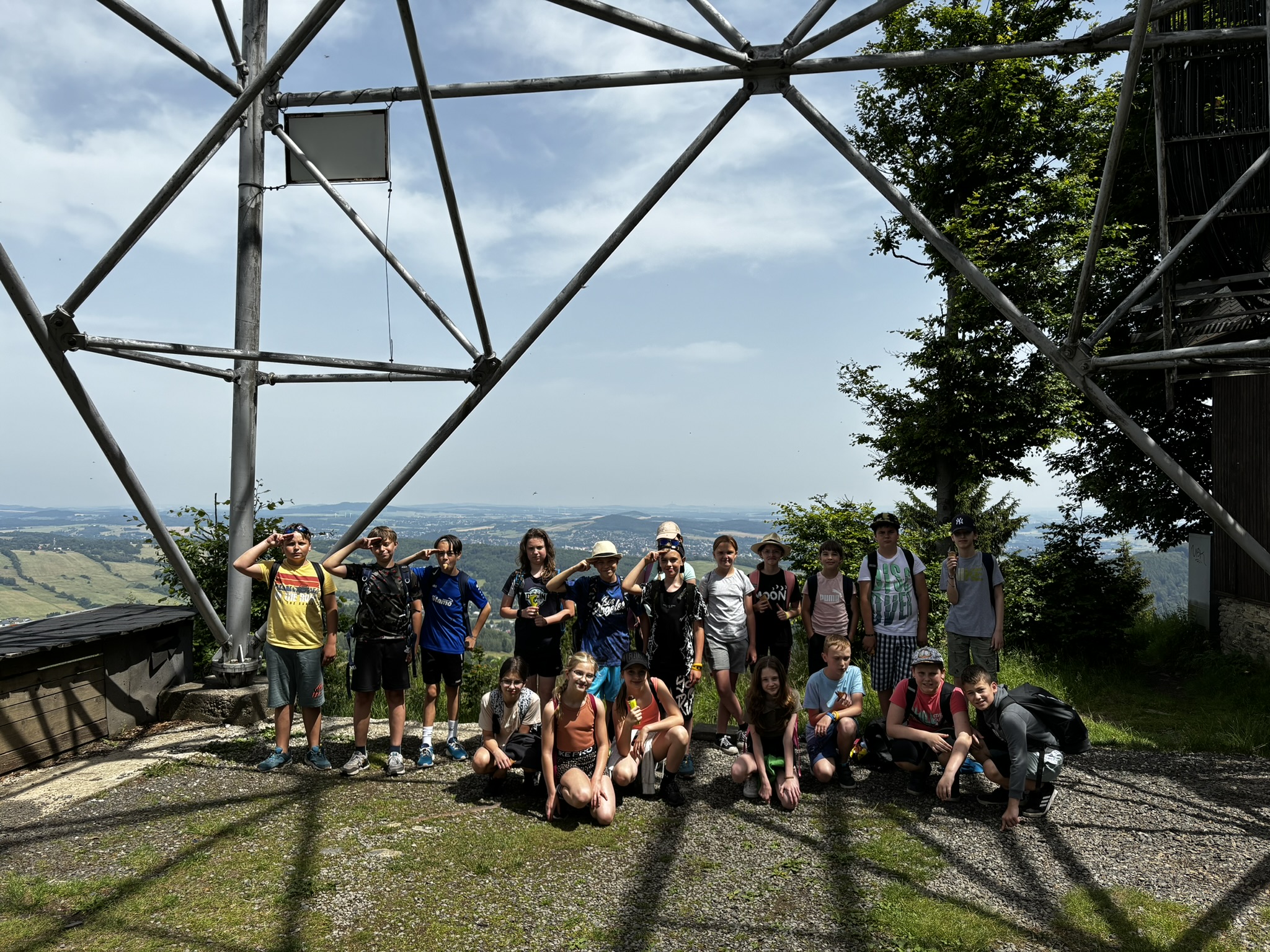 V opravdu slunečném počasí jsme vystoupali až na vrchol k rozhledně Jedlová. Po krátkém odpočinku si první část výletu všichni užili v lanovém parku. Zde děti předvedly nejen svoji velkou odvahu, ale i obratnost na jednotlivých překážkách. Z lanového parku jsme se přemístili k obří houpačce. I tady to bylo především o odvaze. Nakonec někteří na houpačku šli znovu, a kdyby byl čas, šli by ještě tak desetkrát...