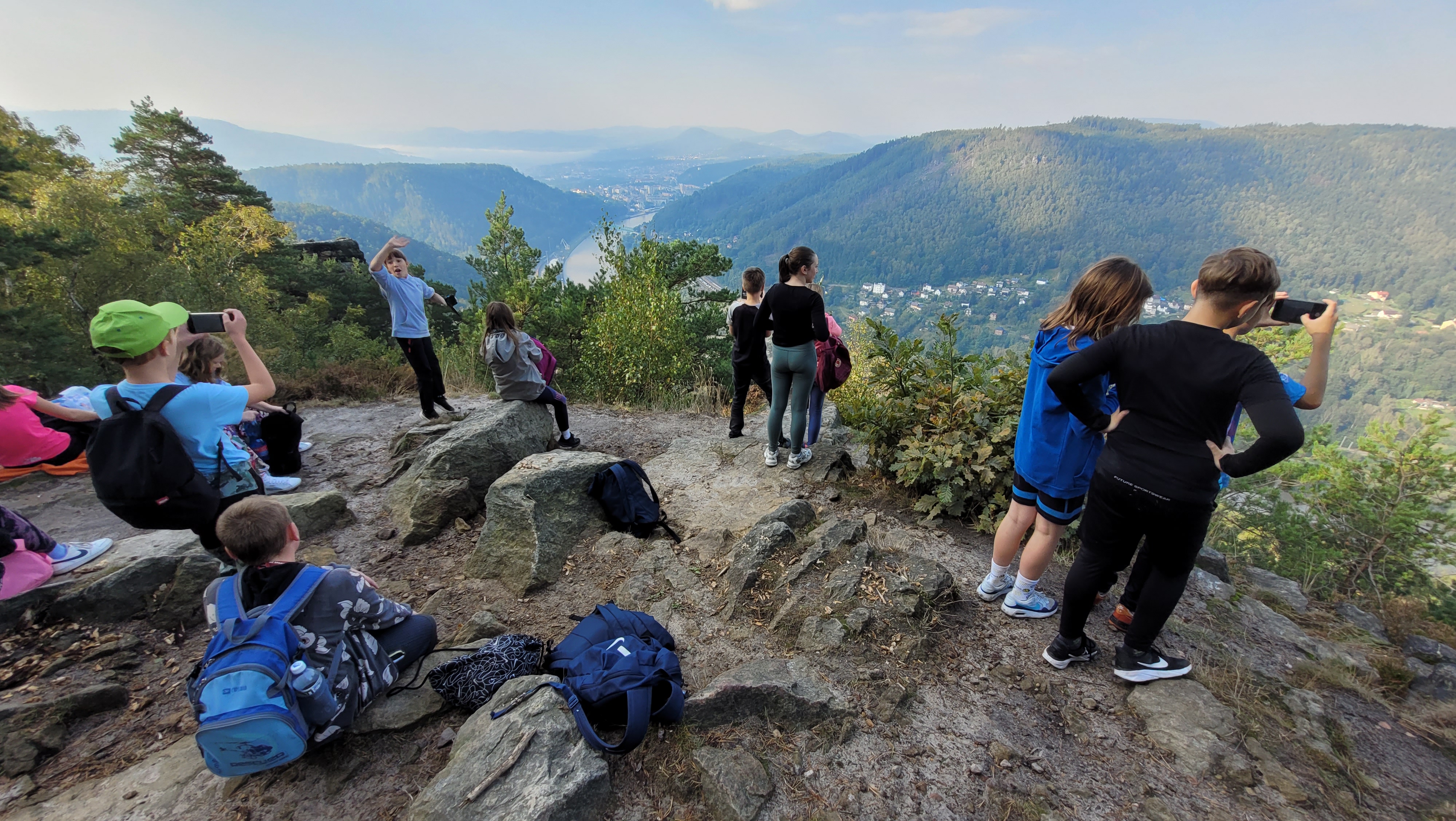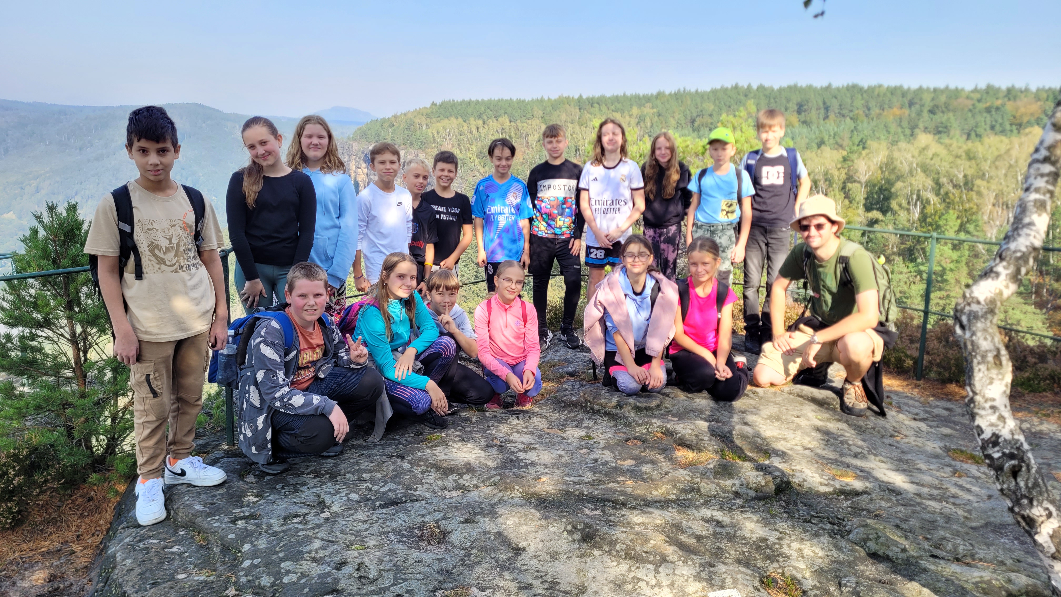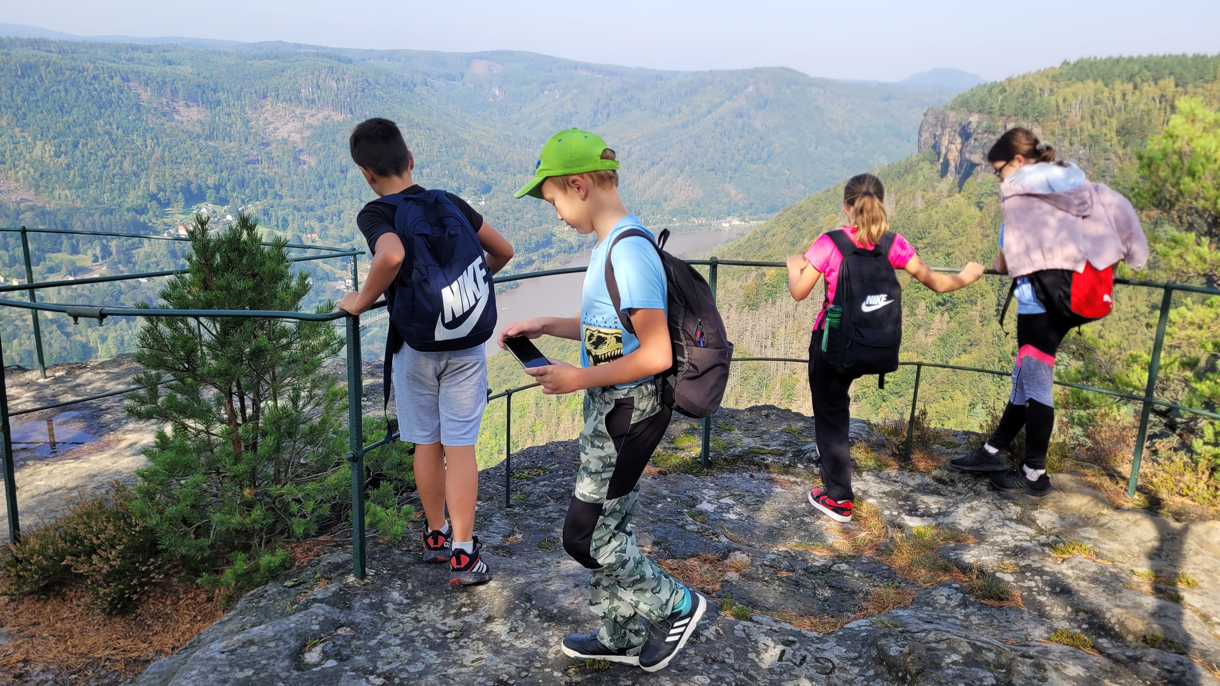 Ačkoli mnozí žáci místo již znali, pro některé z nich to byla premiéra. Už od samotného rána bylo jasné, že nás čeká pěkný den. Slunce svítilo, nálada byla skvělá a výprava začala svižným tempem. První zastávka na vyhlídce nad kaňonem všem vyrazila dech. Pohled na hluboké údolí, ve kterém se klikatí majestátní Labe, je působivý zážitek. Děti se radostně bavily, fotily a sdílely dojmy z tohoto úchvatného výhledu.