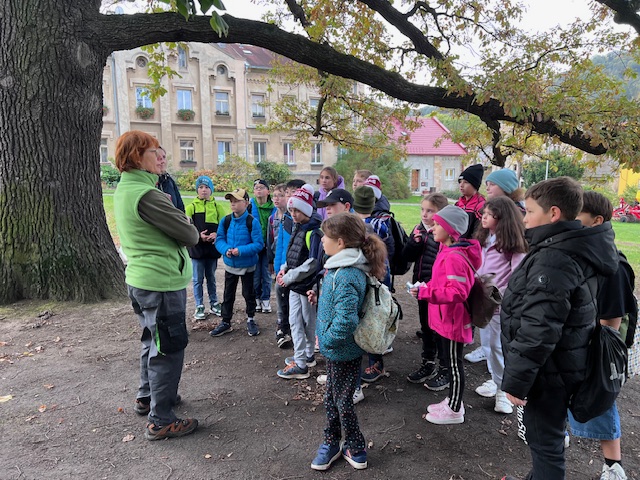 Proto se děti ze třídy 4.B vypravily s paní učitelkou a paní asistentkou do Libverdy na výukový program zaměřený právě na stromy a keře.