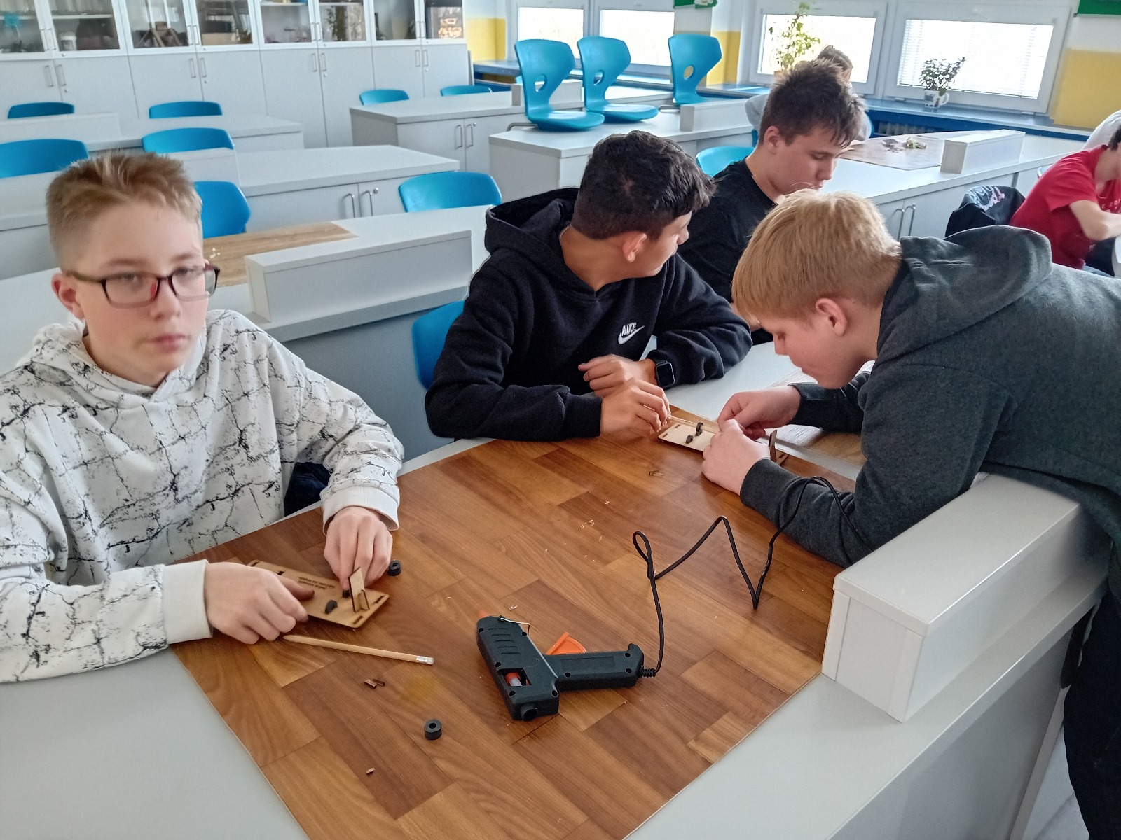 Na přednášku pak v dalších dnech navazoval workshop, při kterém si žáci vyrobili a odnesli domů zajímavou fyzikální hračku - buď levitující tužku nebo elektro brouka.