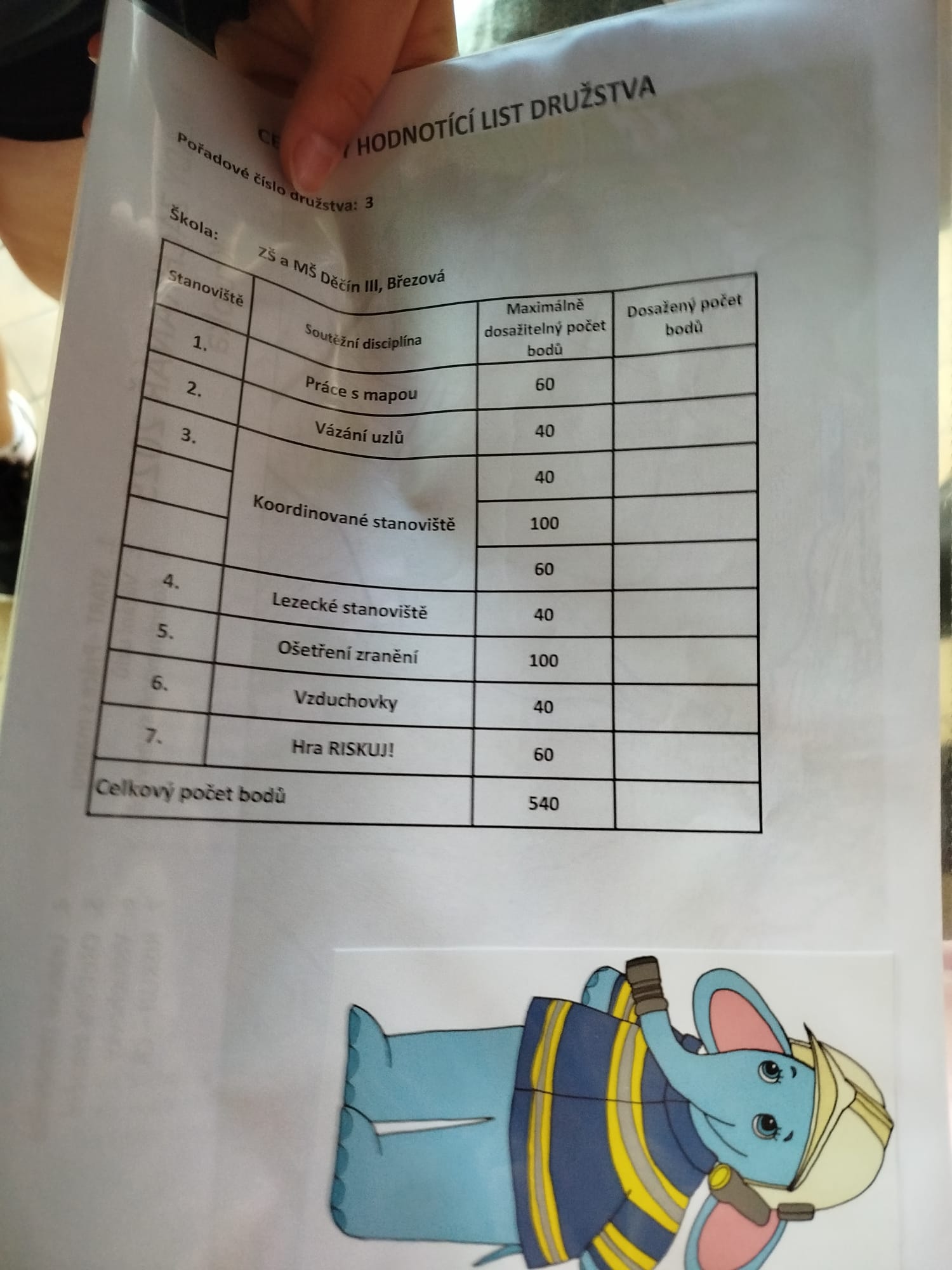 Náš tým ve složení Tomáš Sládeček, Martina Ortová, Linda Do, Lucie Leginová zvládal postupně na trase v celkové délce 10 km jednotlivé úkoly. Soutěž byla opravdu velmi náročná, jak v terénu, ale i po odborné stránce a profesionálové z řad HZS a Záchranného sboru Ústeckého kraje jim připravili velmi těžké stanoviště a úkoly. Naši žáci soutěžili jako skvělý tým a odváží si nejen velký úspěch, celkové 6. místo, ale i cenné poznatky a dovednosti a těší se na další ročník a soutěže.