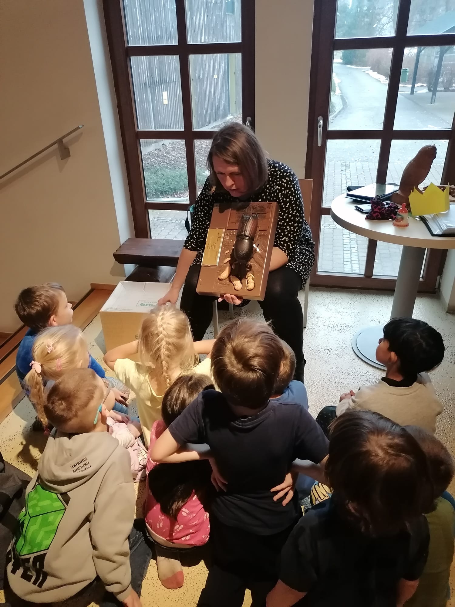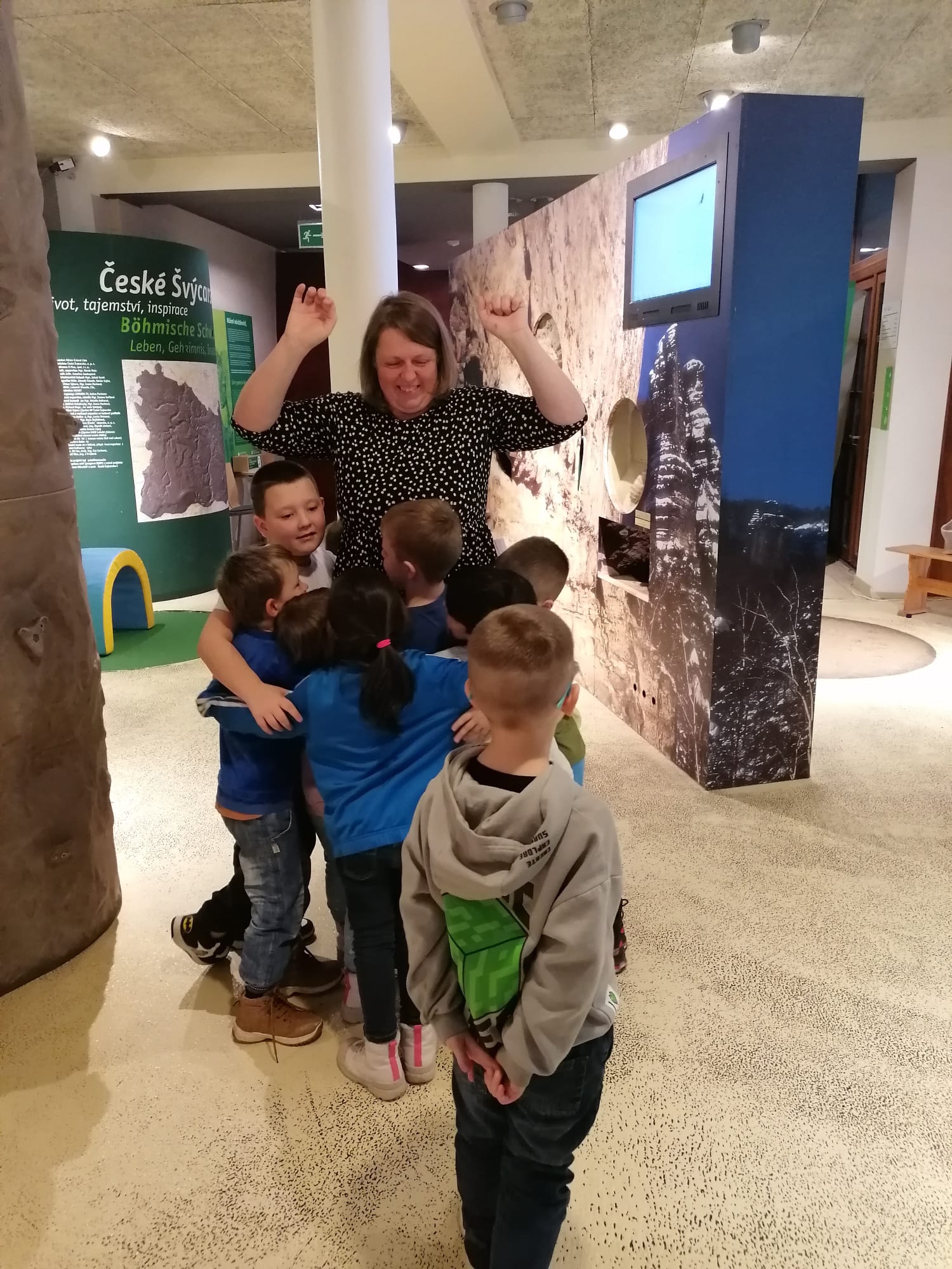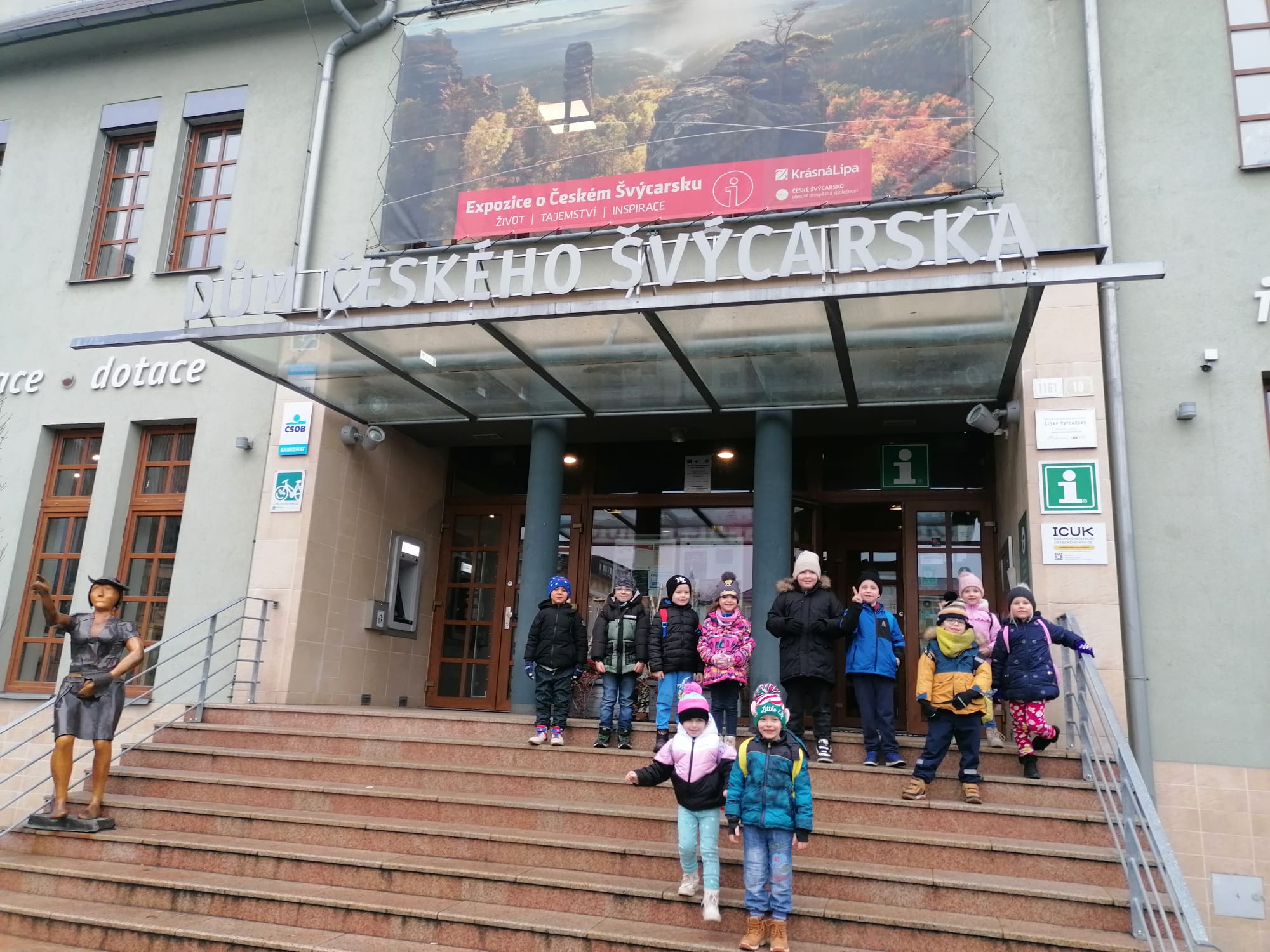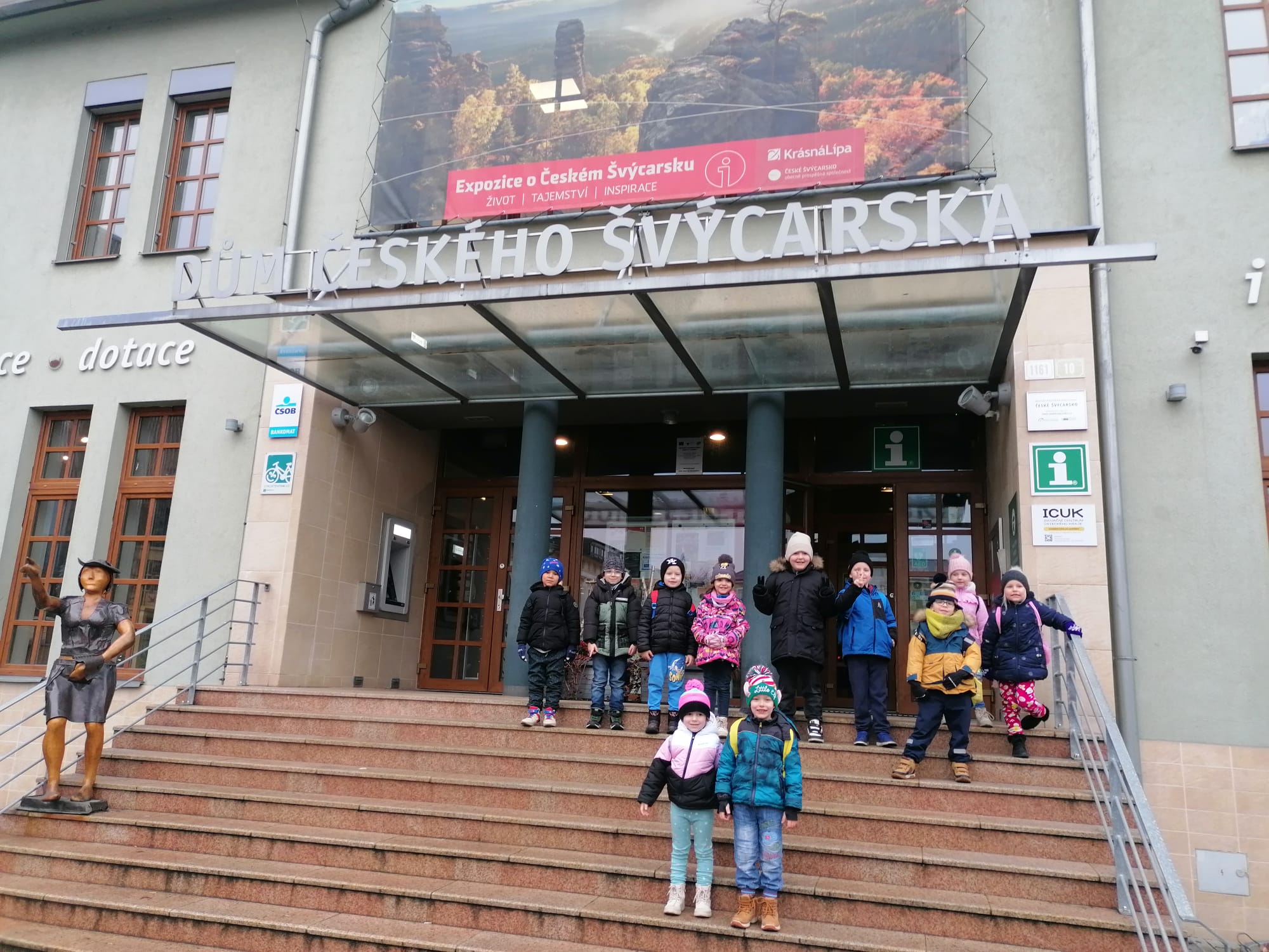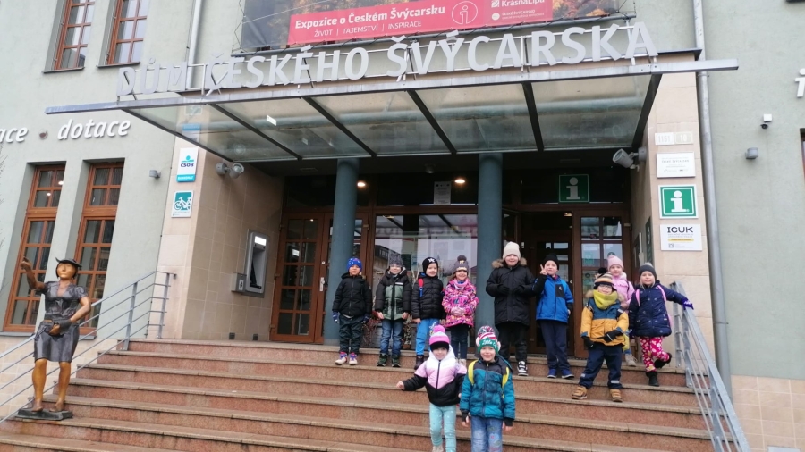 Žáci si postupně prošli expozici Domu Českého Švýcarska, kde si pro ně paní Helena Doudová připravila hravě naučný program, který byl věnovaný informacím o mravencích, mravkolvech, lýkožroutech smrkových a bekyních mniška.
