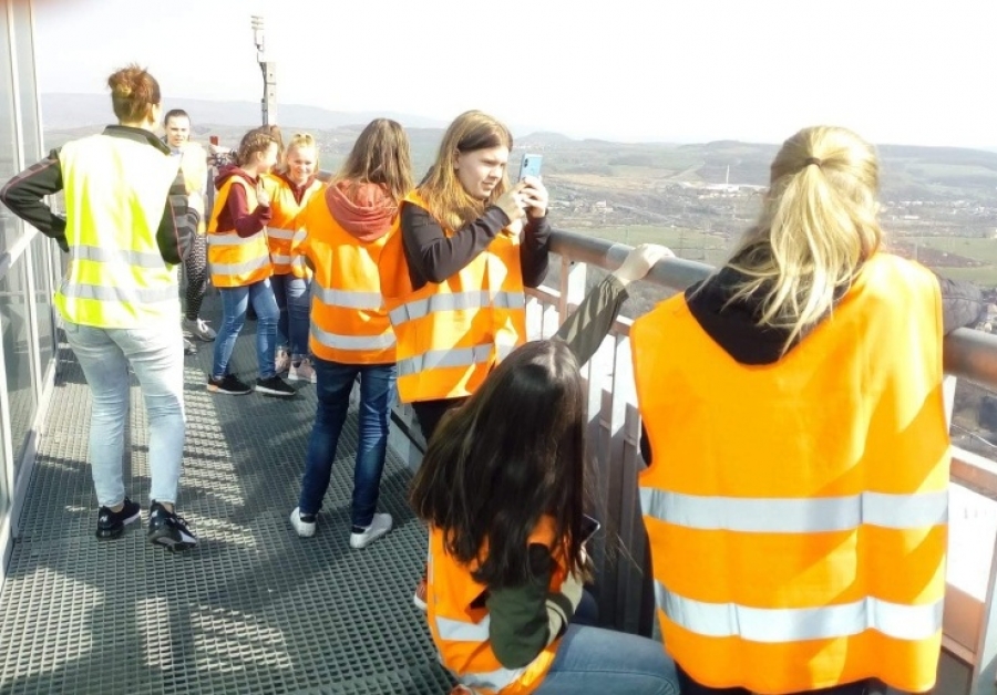 Po skončení teoreticky zaměřené přednášky se žáci vyvezli výtahem na 114 metrovou rozhlednu, zde si prohlédli krajinu pozměněnou těžební činností člověka, seznámili se s probíhající rekultivací krajiny. Prohlédli si významná místa viditelná z rozhledny - Děčínský Sněžník, Milešovku, Bořeň, vrcholky Krušných hor s Komáří vížkou, Hněvín.