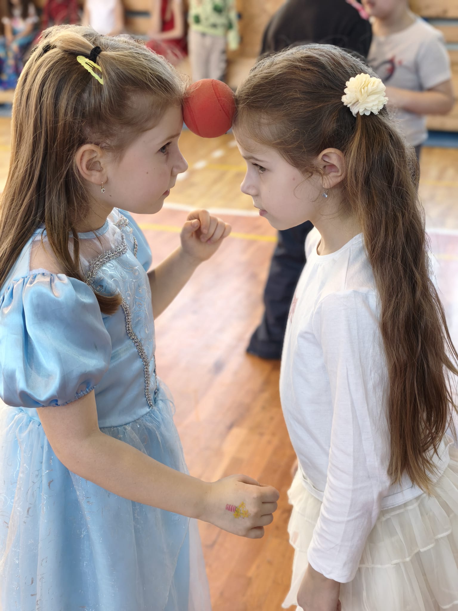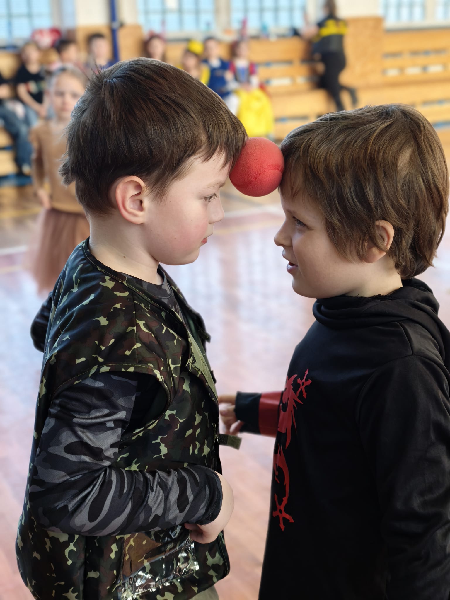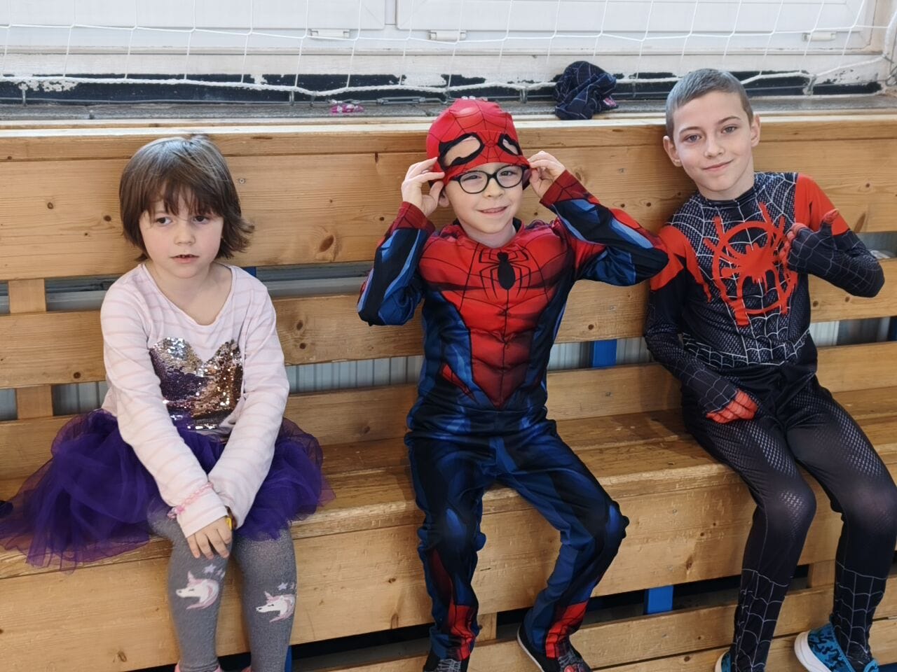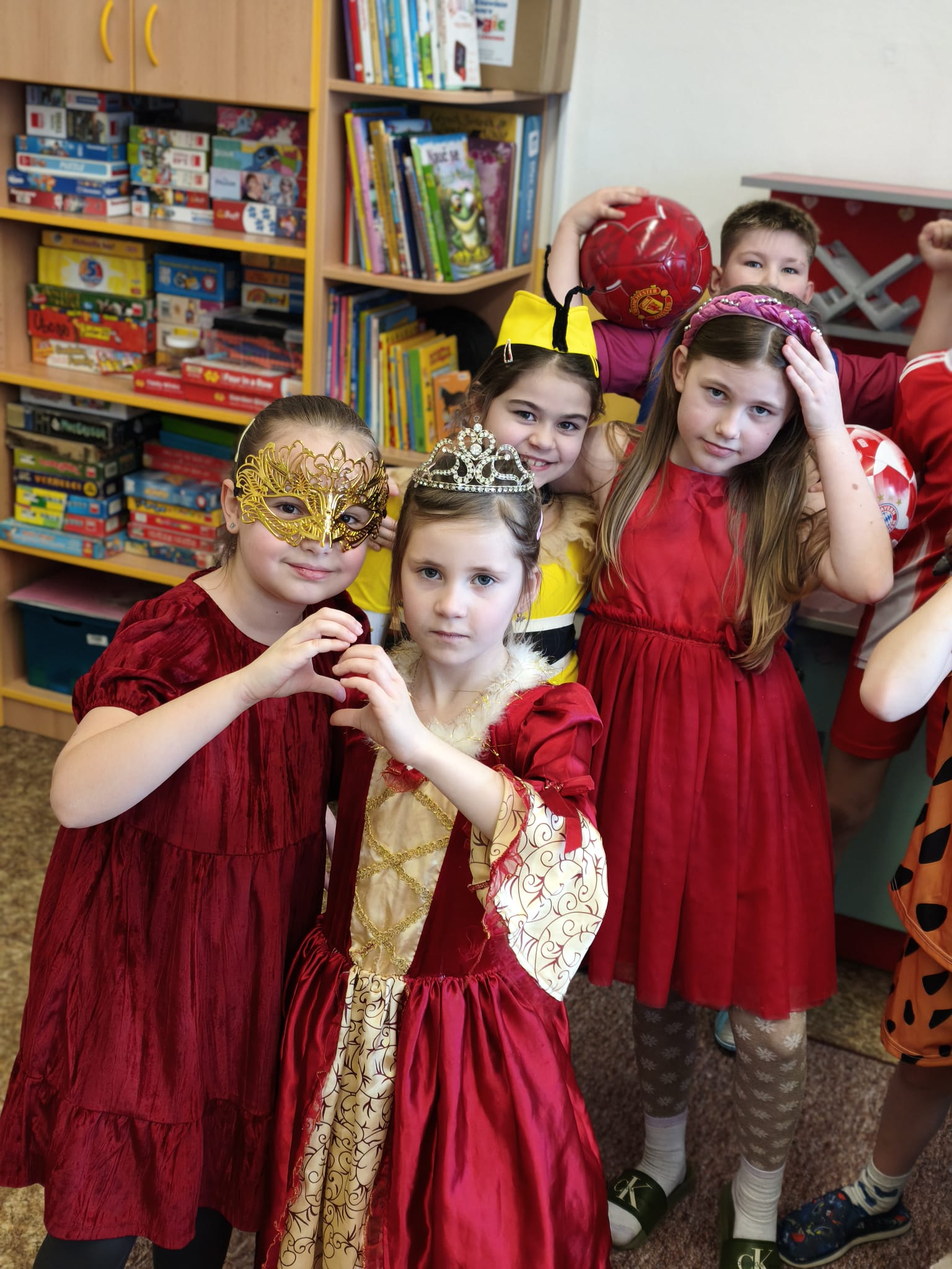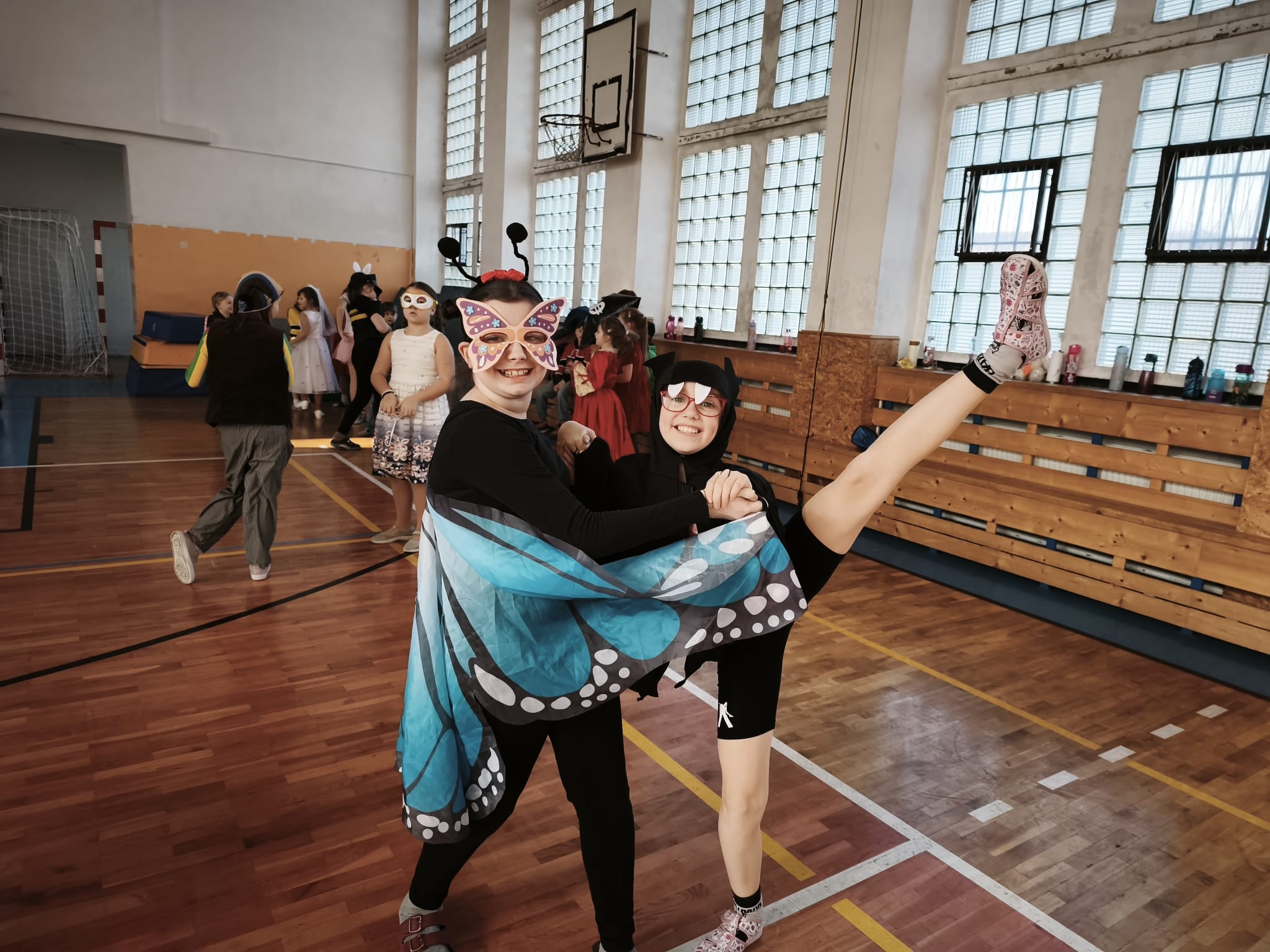 Školní tělocvična se proměnila v taneční sál plný pohádkových bytostí, zvířat, sportovců, princezen, víl, superhrdinů.