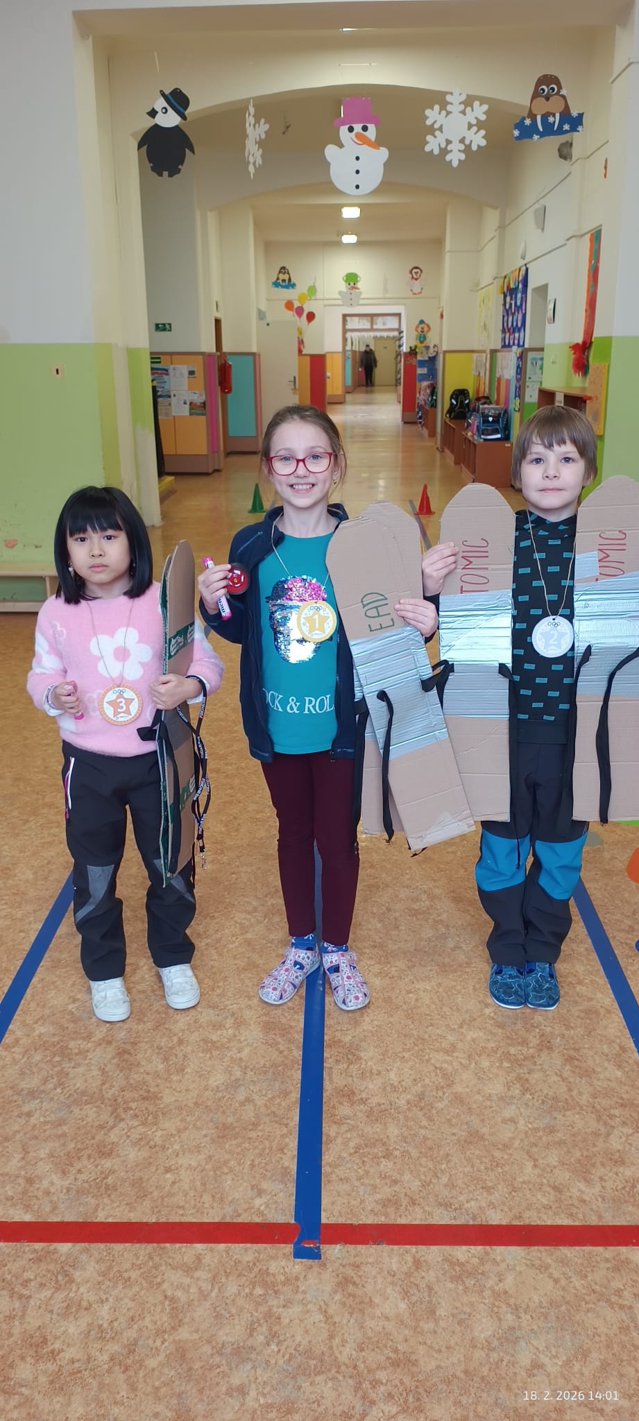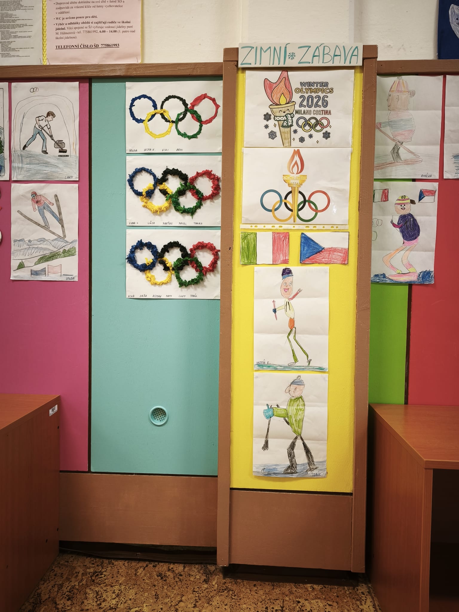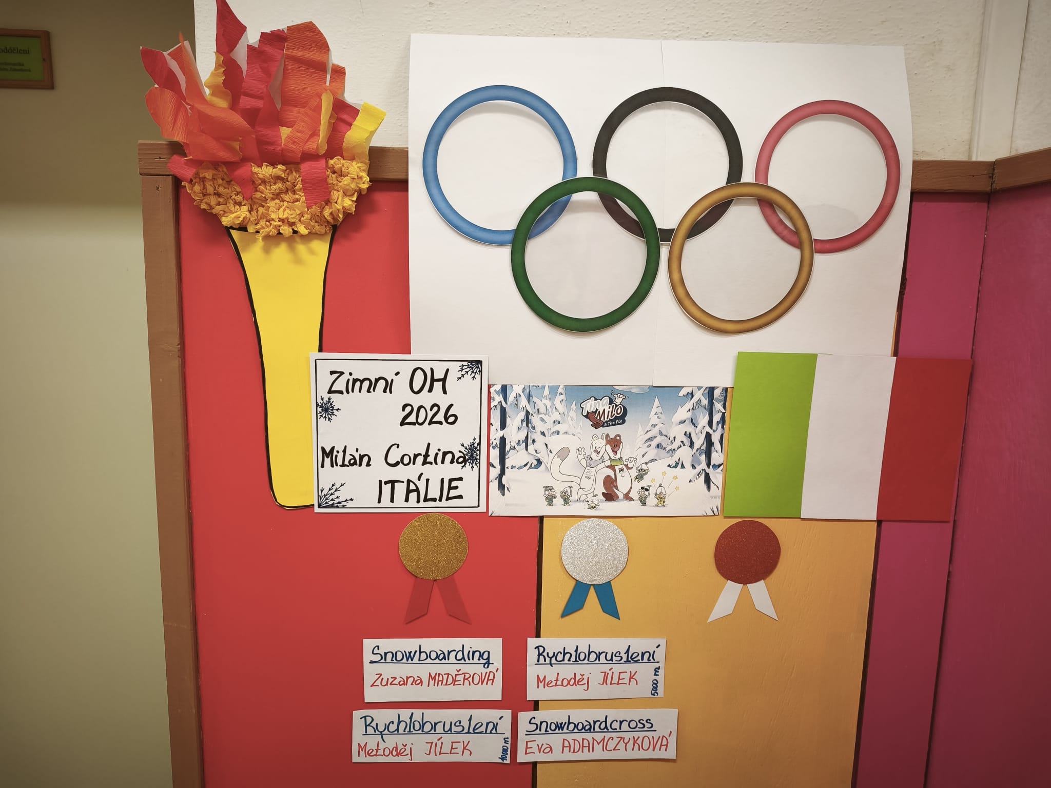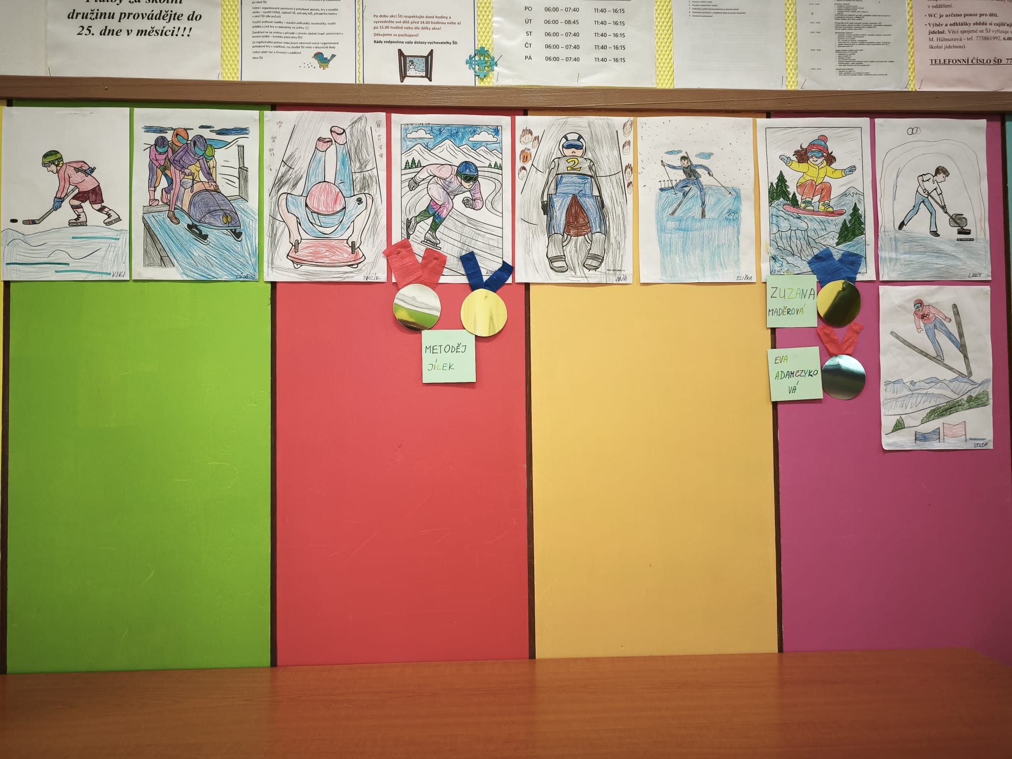 Tato tematika se prolínala ve všech činnostech ŠD. Společně jsme si vyzdobili oddělení a chodbu. Probrali jsme všechny zimní sporty na ZOH, které děti výtvarně ztvárnily různými technikami. Samozřejmě jsme sledovali sportovní výkony našich olympioniků a vystavili si jména medailistů.