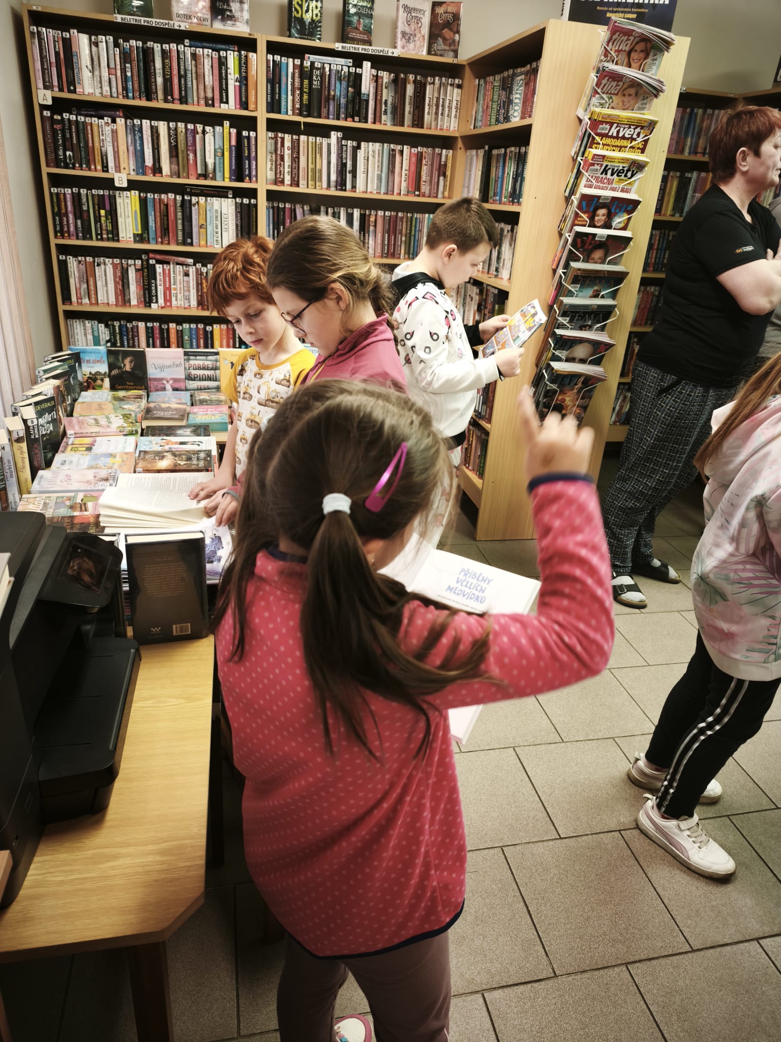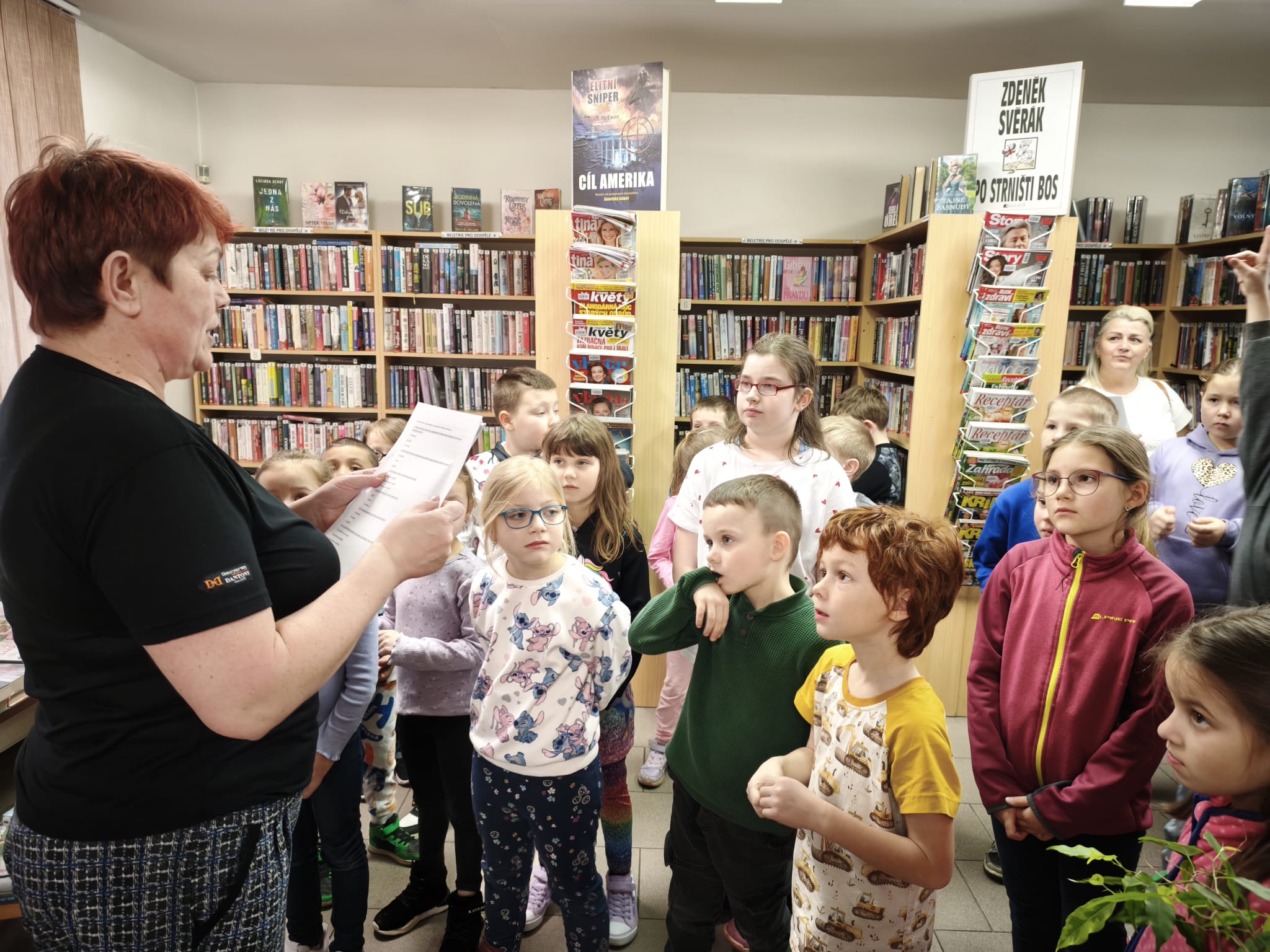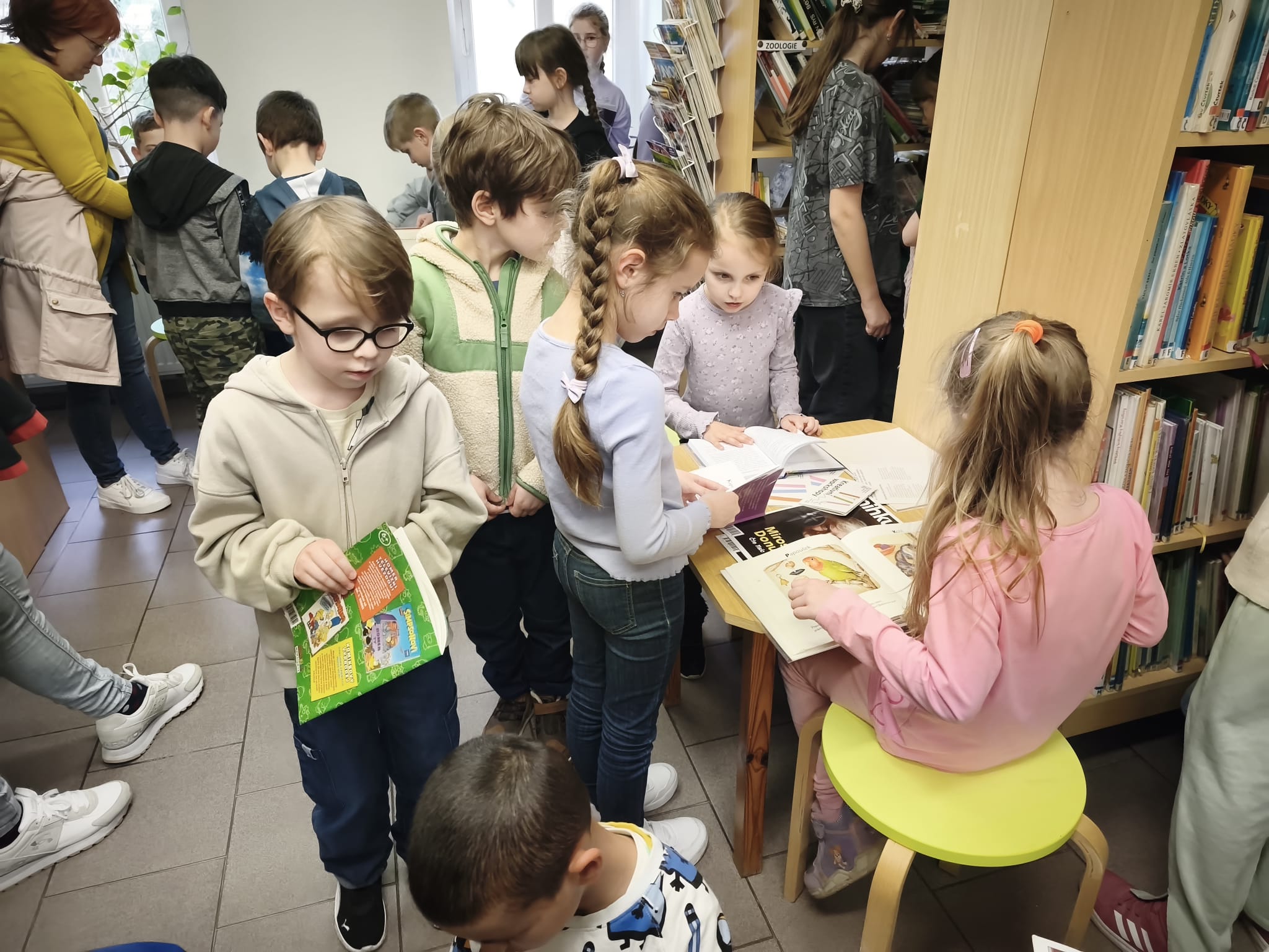 Ve středu 25. března jsme společně odnesli vypracované čtenářské karty a knížky do knihovny. Paní knihovnice děti seznámila s chodem knihovny a umožnila dětem, aby si prohlédly knihy a časopisy dle jejich zájmu. Také si pro děti připravila kvízové otázky k četbě zapůjčených knih.