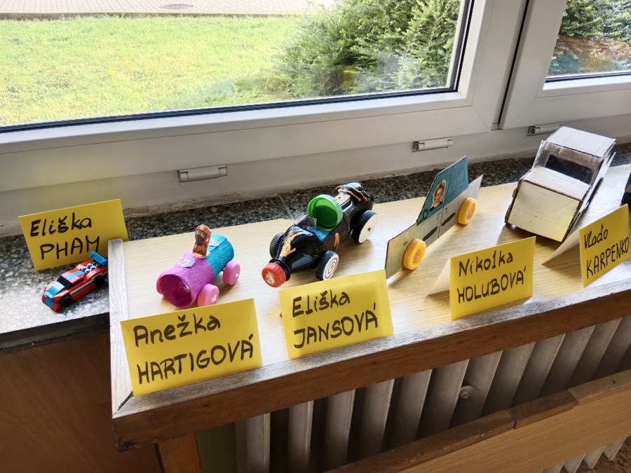 Na konci soutěže se nám sešla auta různých tvarů, za použití netradičních i recyklovatelných materiálů, ale i nápaditě kreslené či malované obrázky.