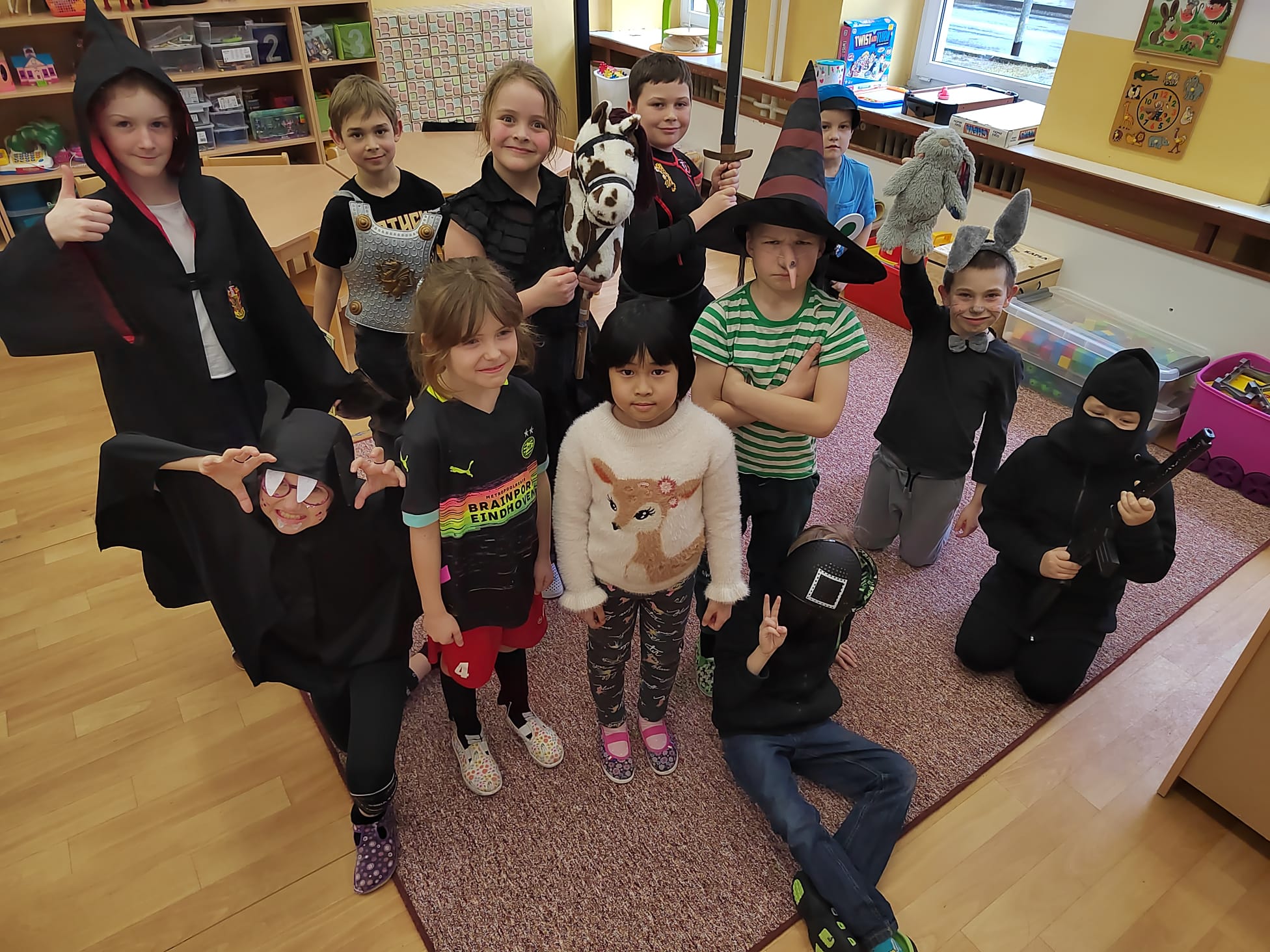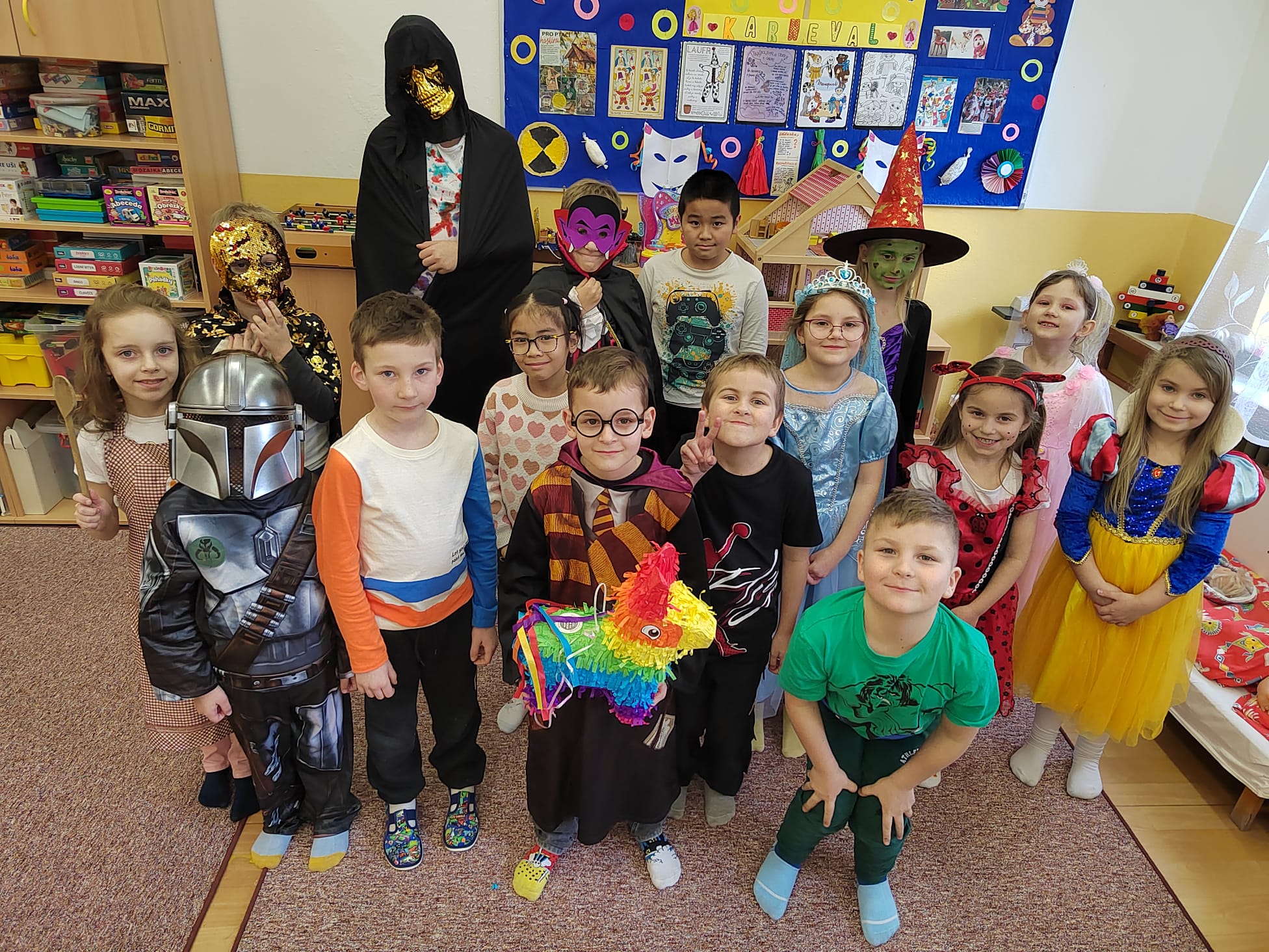 V pátek 28. února vše vyvrcholilo uspořádáním KARNEVALU v tělocvičně školy. Naše družina se proměnila v pohádkovou říši plnou nadpřirozených bytostí, oblíbených filmových a reálných hrdinů. Mohli jsme potkat zvířátka, Sněhurku, čarodějnice, princezny, upíra, piráty, sportovce, Makovou panenku, rytíře a spoustu dalších krásných a nápaditých kostýmů.